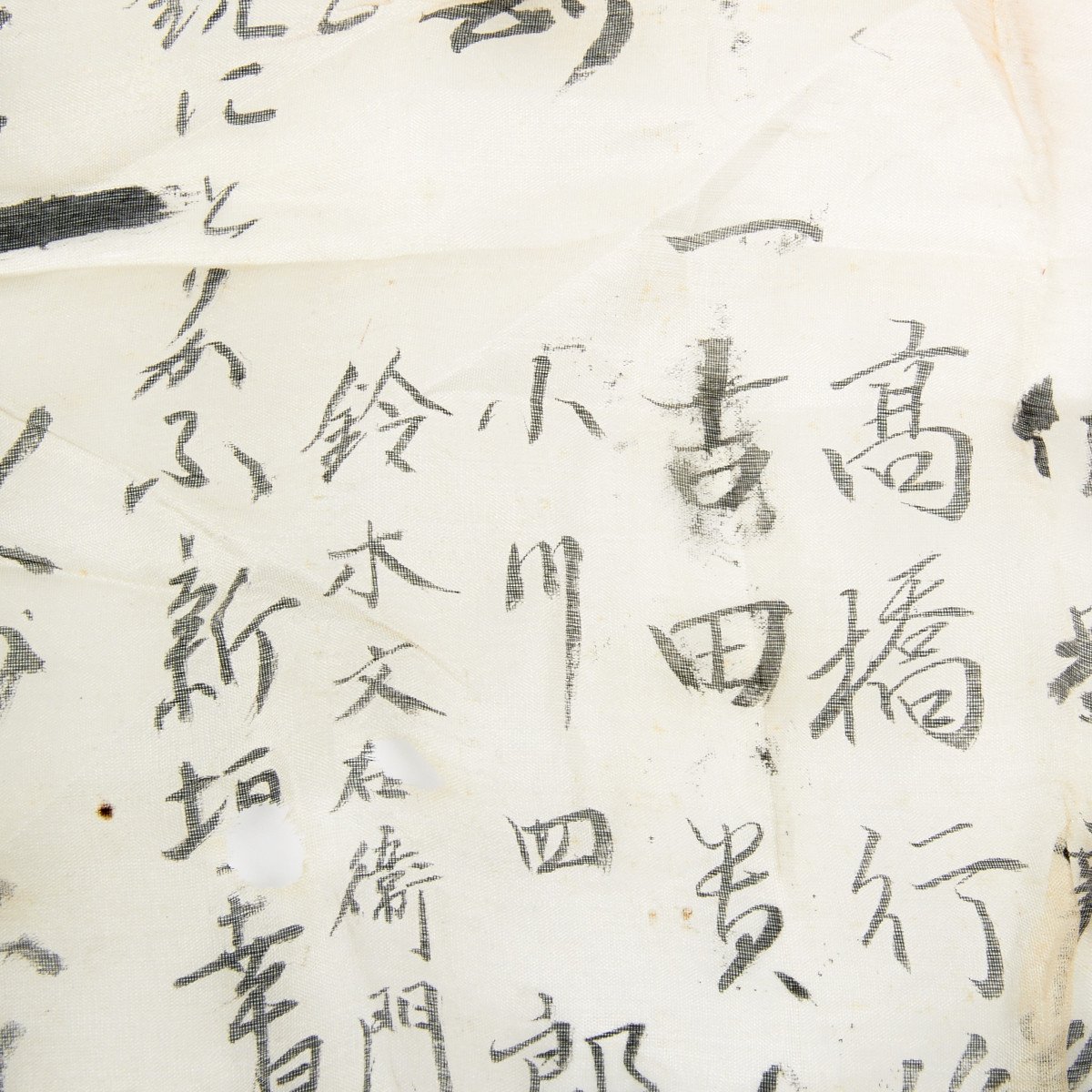 Original Item: One-of-a-kind. This is a hand painted raw silk flag and probably belonged to a soldier who didn’t have a lot of money as it is so very crude. Named to a "Mr. Suzuki the phrases translate to Devastate, kill, eliminate the enemy". "Serve your country", plus a Japanese battle poem. The flag measures approximately 27 x 20