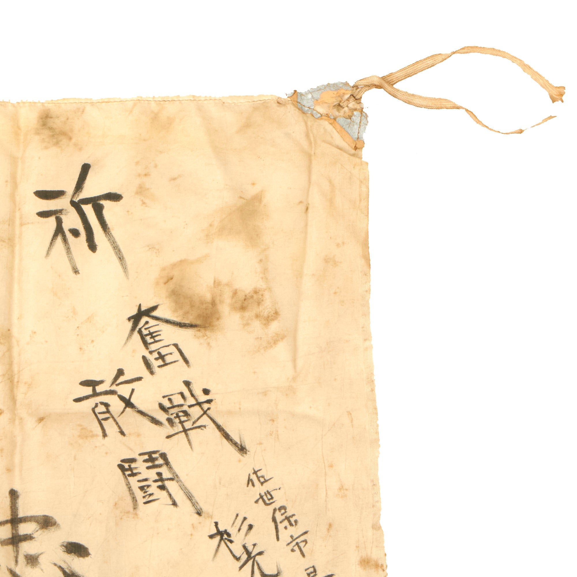 Original Item: One-of-a-kind. Just purchased from a large military auction. This hand painted cloth flag is marked with quotes such as Long Lasting Luck, Fortunate Military Service, Prayer for good luck, etc. These stamps are only seen on a minority of these flags, and definitely add to the appeal.