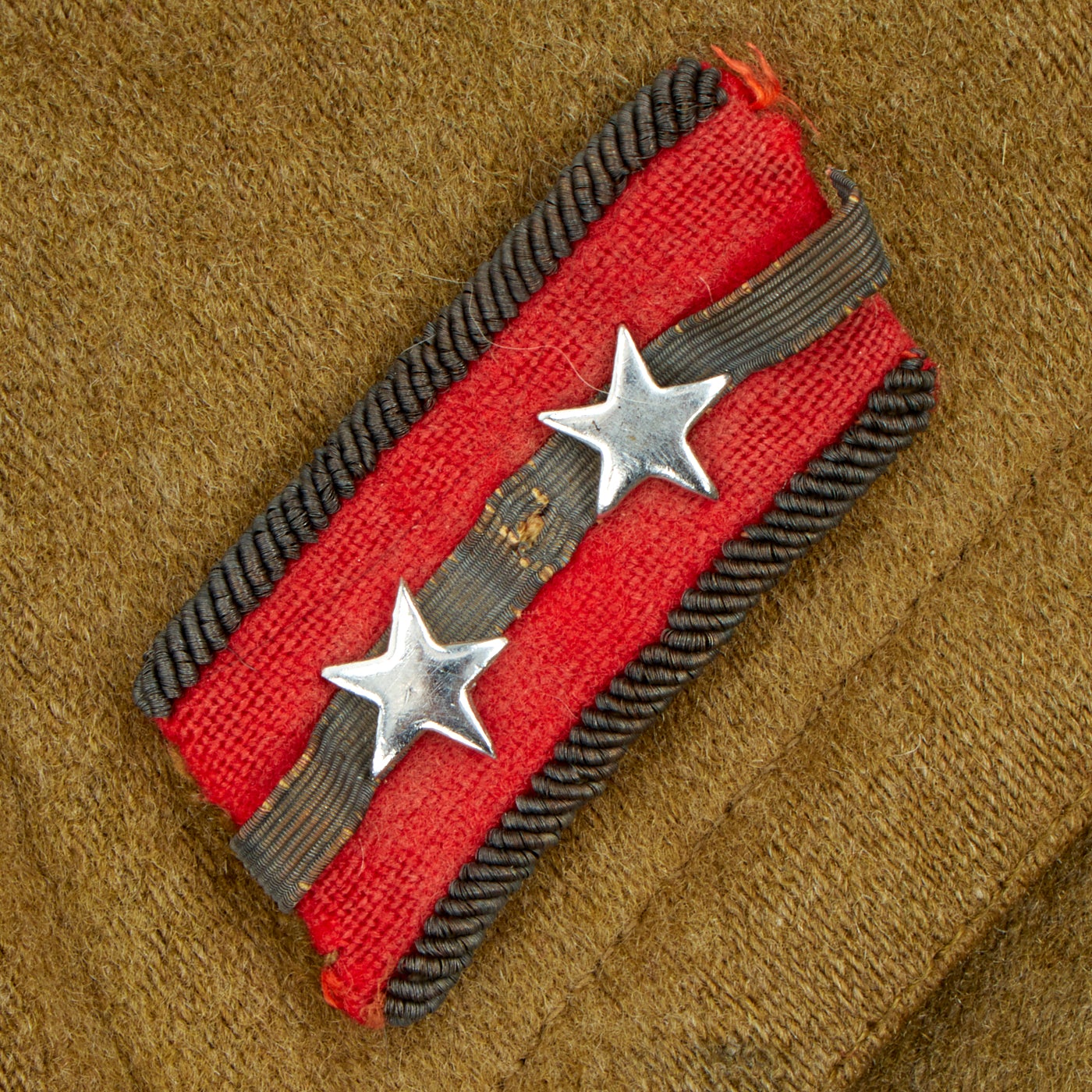 This Imperial Japanese wool overcoat was worn by a 陸軍中尉 (Rikugun-Chūi) which is a First Lieutenant and was more than likely a Platoon Commander or a Company Commander.