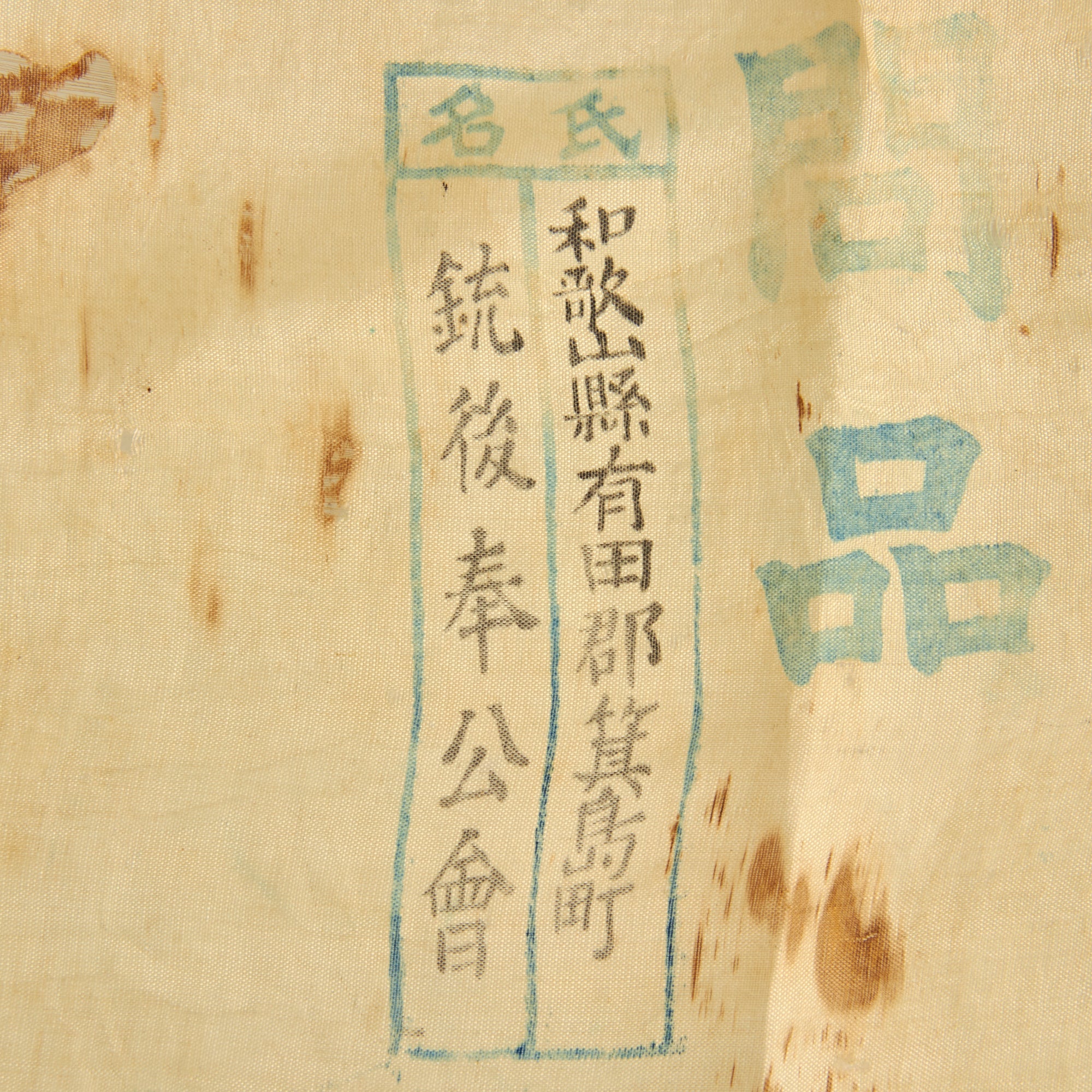 • Original Items: Only One Lot Available. When Japanese men left for their military service, community organizations such as the local branch of the Imperial Reservists Association (teikoku zaigo gunjinkai) and the Greater Japan National Defense Women’s Association (dai nippon kokubo fujinkai) organized various celebrations, culminating in send-off parades to wish the troops well as they marched off to the local railway stations or ports. These send-off ceremonies were called sokokai and the participants in parades carried banners with the names of the recruits on them. The Japanese term for banner is nobori, and the exact Japanese name for them depends on the slogan. Here we refer to them as “shussei nobori” or “Off To War Banners”.