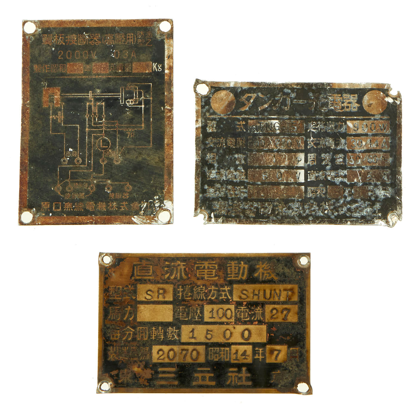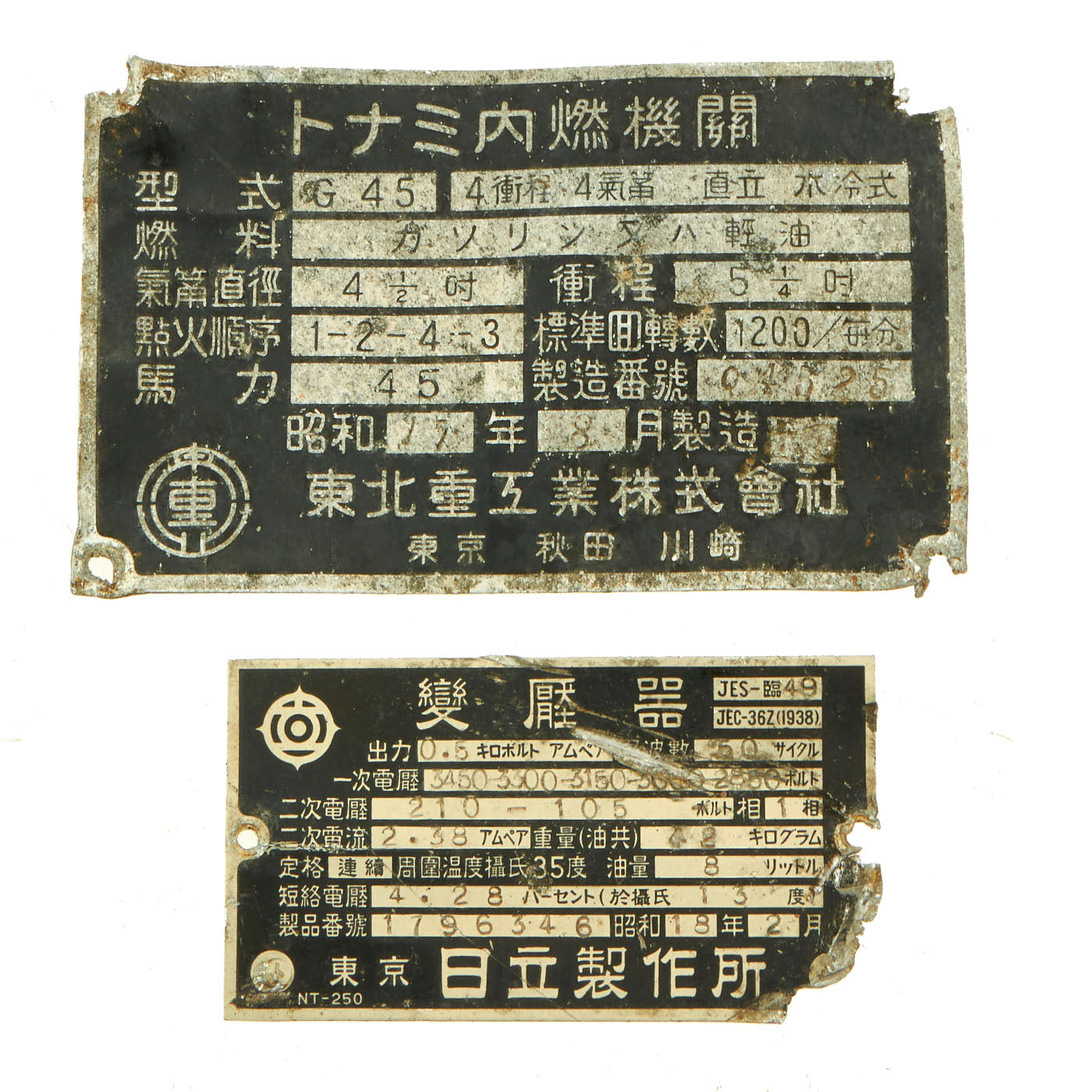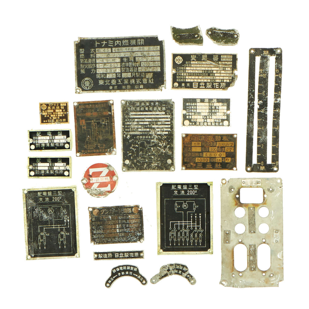 Original Items: Only One Lot of 20 Available. Now this is a fantastic assortment of data plates removed from Imperial Japanese Army and Navy Aircraft, Ships, Vehicles, Generators and more! During the demilitarization and demobilization of Japan, the US Navy and the allies started scrapping all military vehicles and aircraft. These were all brought home by a US GI at the end of the occupation.