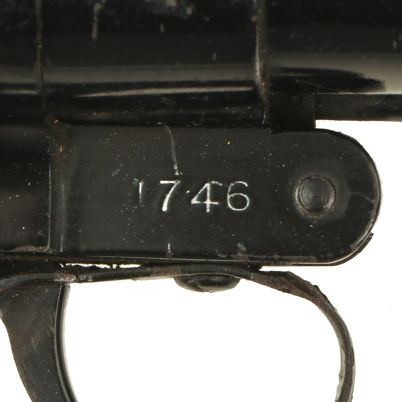 Original Item: One of a Kind. Now this is something we do not see every day. Made by the KAYABA SEISAKUSHO (Factory) between 1930 and 1945, only 5,100 of these very scarce three barreled flare pistols were made, most all for the Imperial Japanese Navy. Twice as many of the double barreled versions were made. This example is marked on the top of the top barrel with the Kayaba logo which is followed by a cherry blossom and the Imperial Japanese Navy's Anchor proof. PAT. 93006 is stamped on left side of the frame, and the right side is marked with serial number 1746. This number is also stamped on the ejector, grip frame, underside of the barrel assembly, and on the breech latch handle. This definitely looks to be an "all matching" example, never messed with.