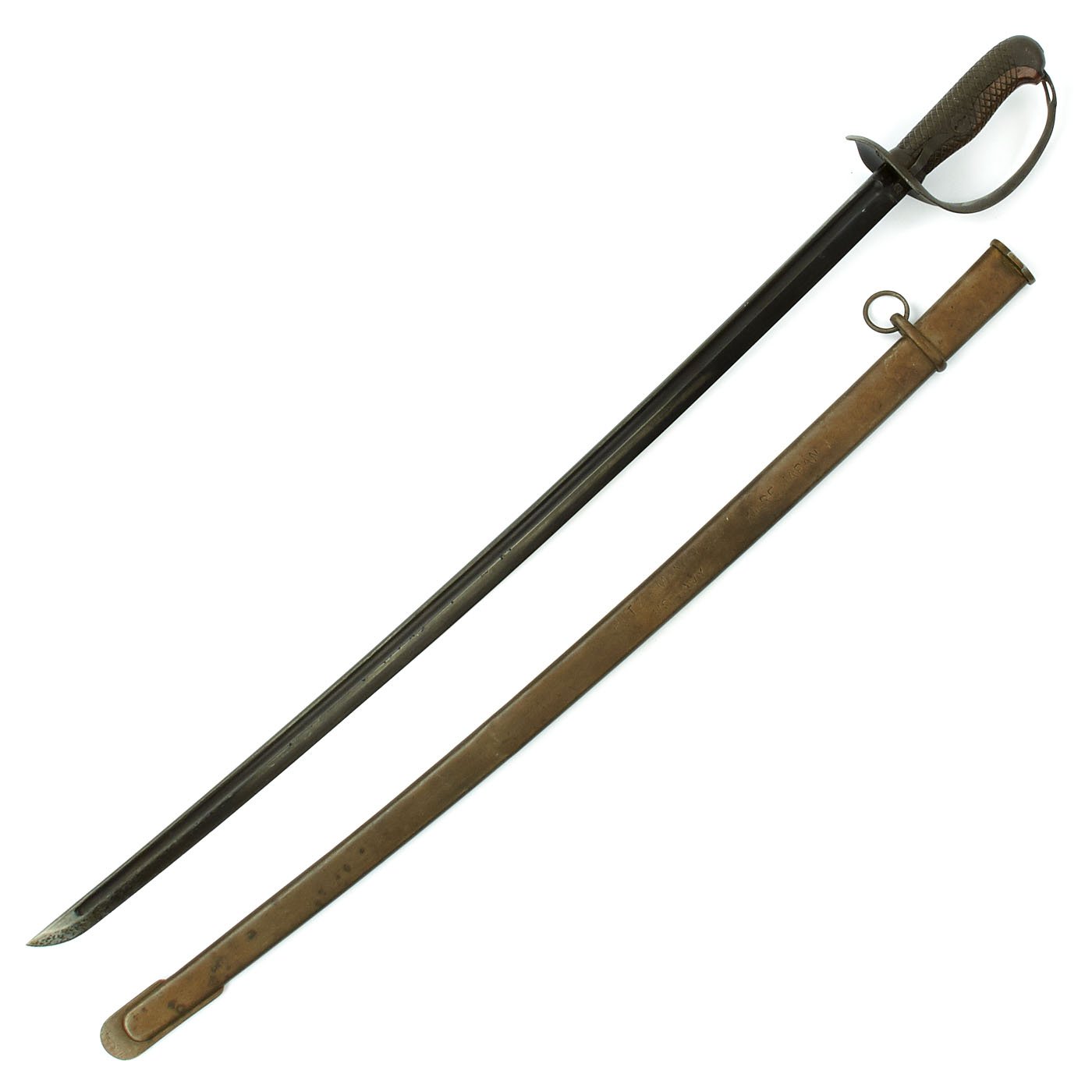 The Type 25, introduced in 1892, had brass hilts and plain wood grips. The Type 32, introduced in 1899, on the other hand has a checkered steel hilt with checkered wood grips. They were issued with a leather finger loop on the inside of the guard. The machine made blades are "katana" shaped, and have a full length wide fuller and flat spine, and are contained in steel scabbards with a single ring. The swords saw service during the Russo-Japanese War, World War One and on into World War Two.