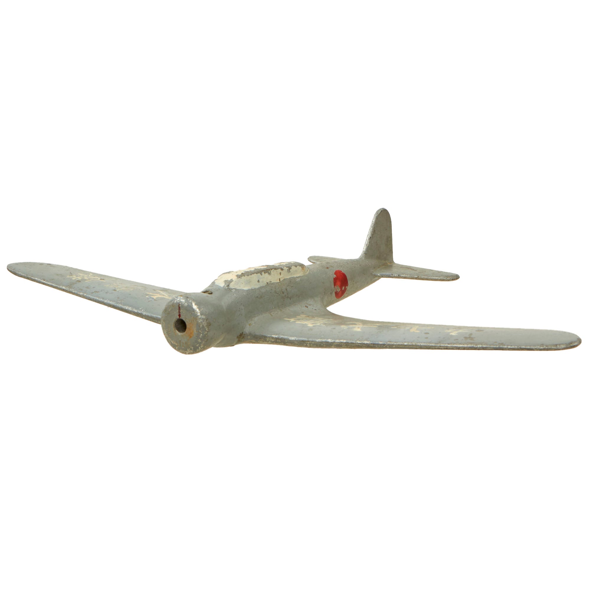The aircraft is constructed of solid metal and features all original period paint. The model is missing the propeller, and may have originally had a mount that stuck into the bottom, but otherwise appears complete.