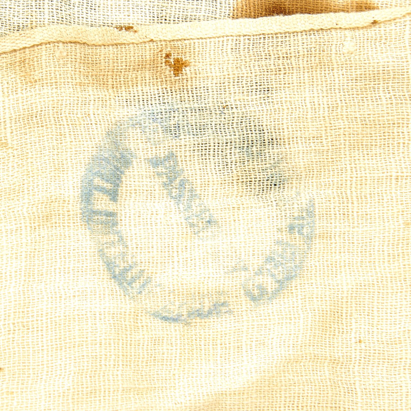 This marking is seen on a lot of USGI bring back material from the Pacific theater of WWII. The hachimaki is in good condition, though it does have some staining in areas, and some small holes.