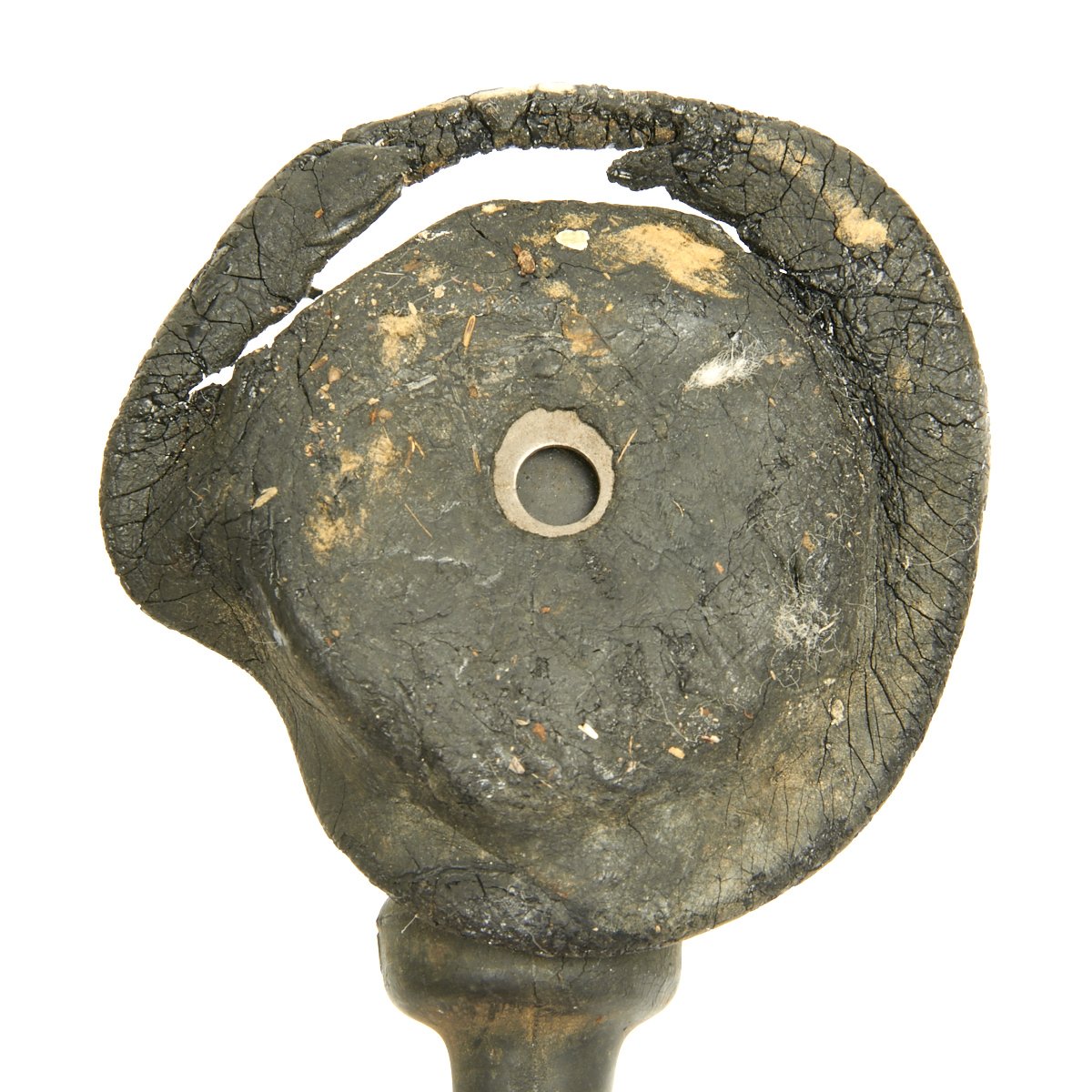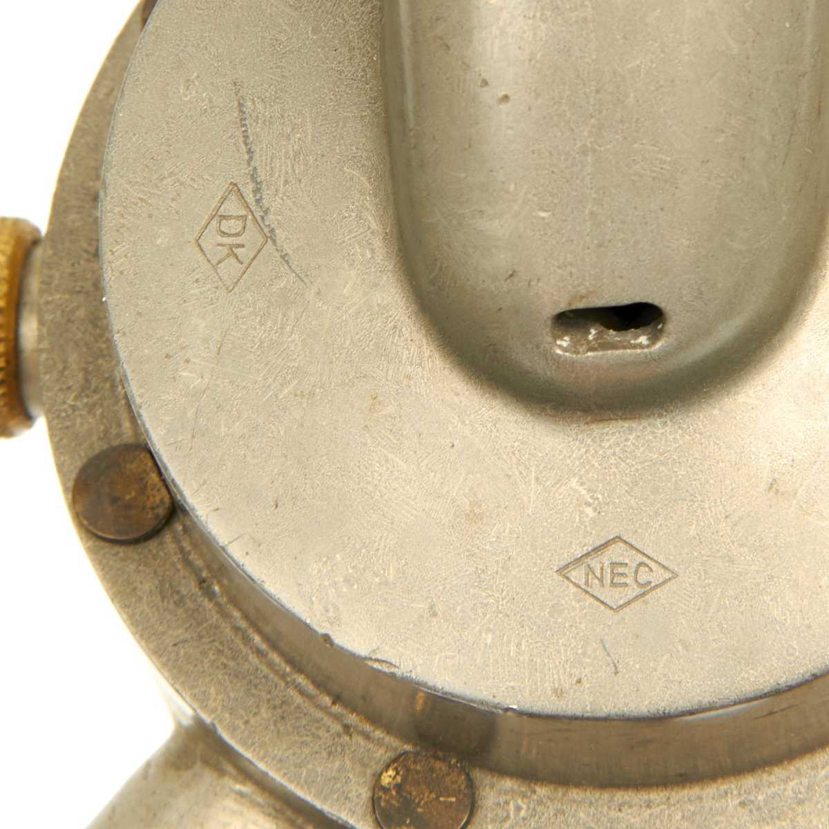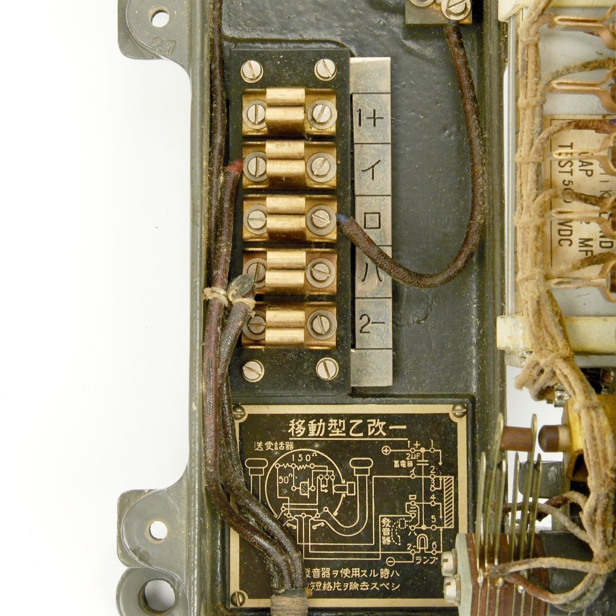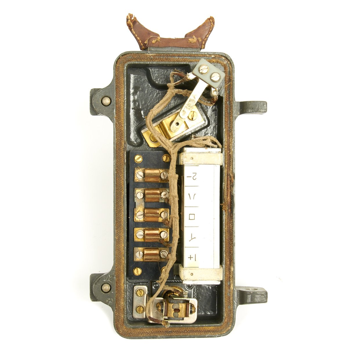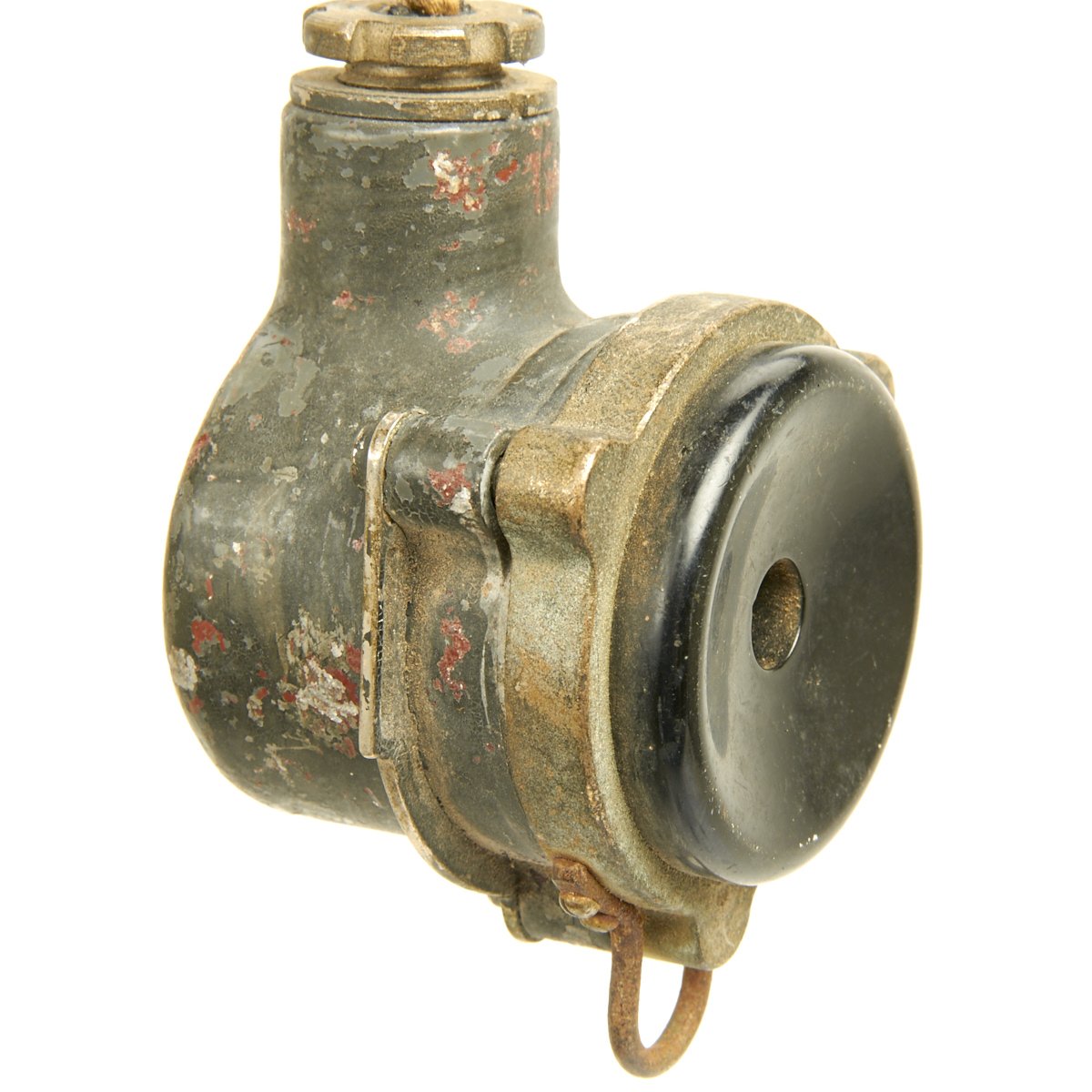 There is a nomenclature data plate mounted to the body of the casing and triple hub the connects a speaking horn and two receivers. Portions of the black rubber cord are fragmented and chipping, but only one connecting wire of four is actually broken. Internals all seem to be present. A great display piece and very well made. Japanese Imperial Navy items are very difficult to find.