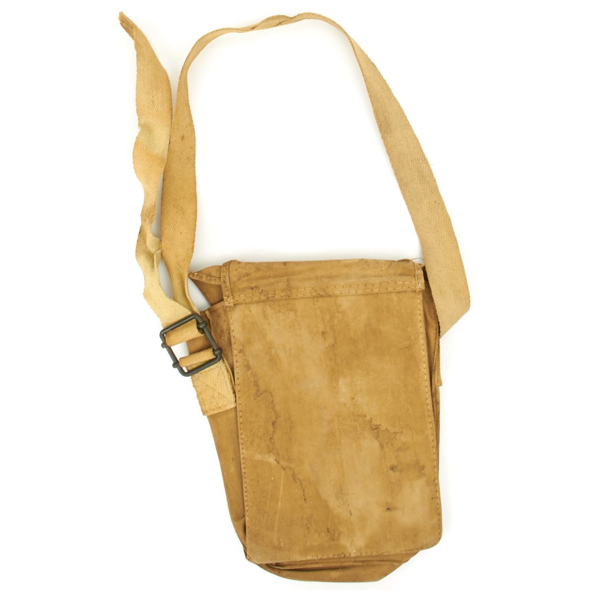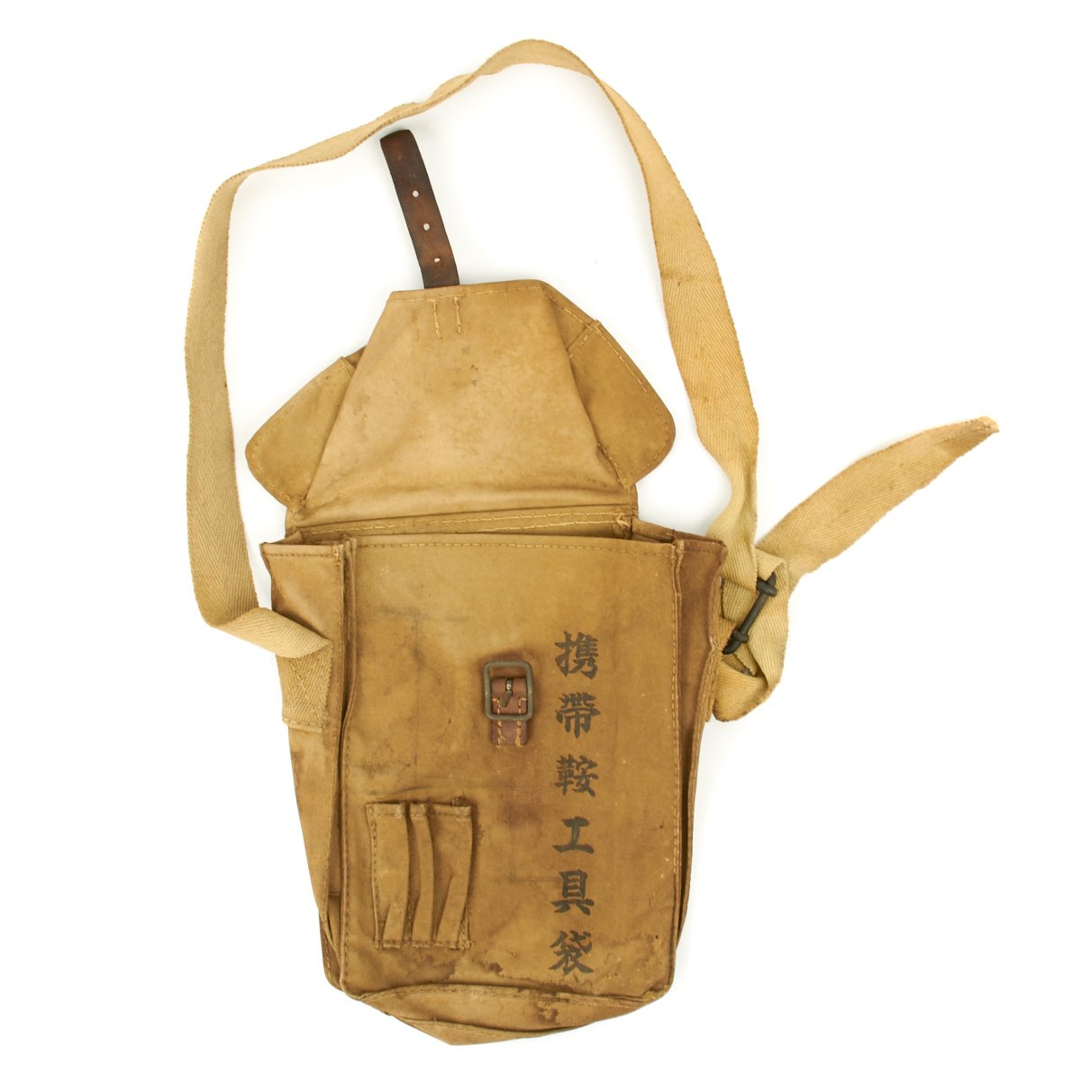 Original Item: This is an very nice condition Imperial Japanese WW2 Officer's canvas map case well marked with Kanji characters in ink on the exterior. Features a leather with steel buckle closure, shoulder strap, and writing instrument pockets. This is the rare late war style as early and mid war were comprised of thick leather.