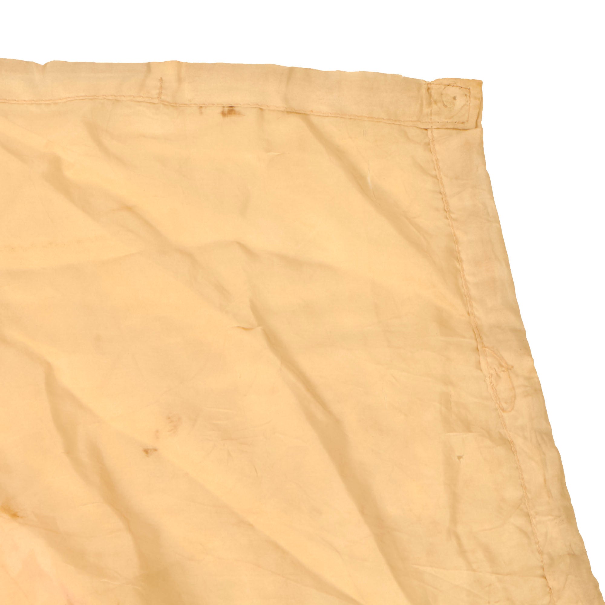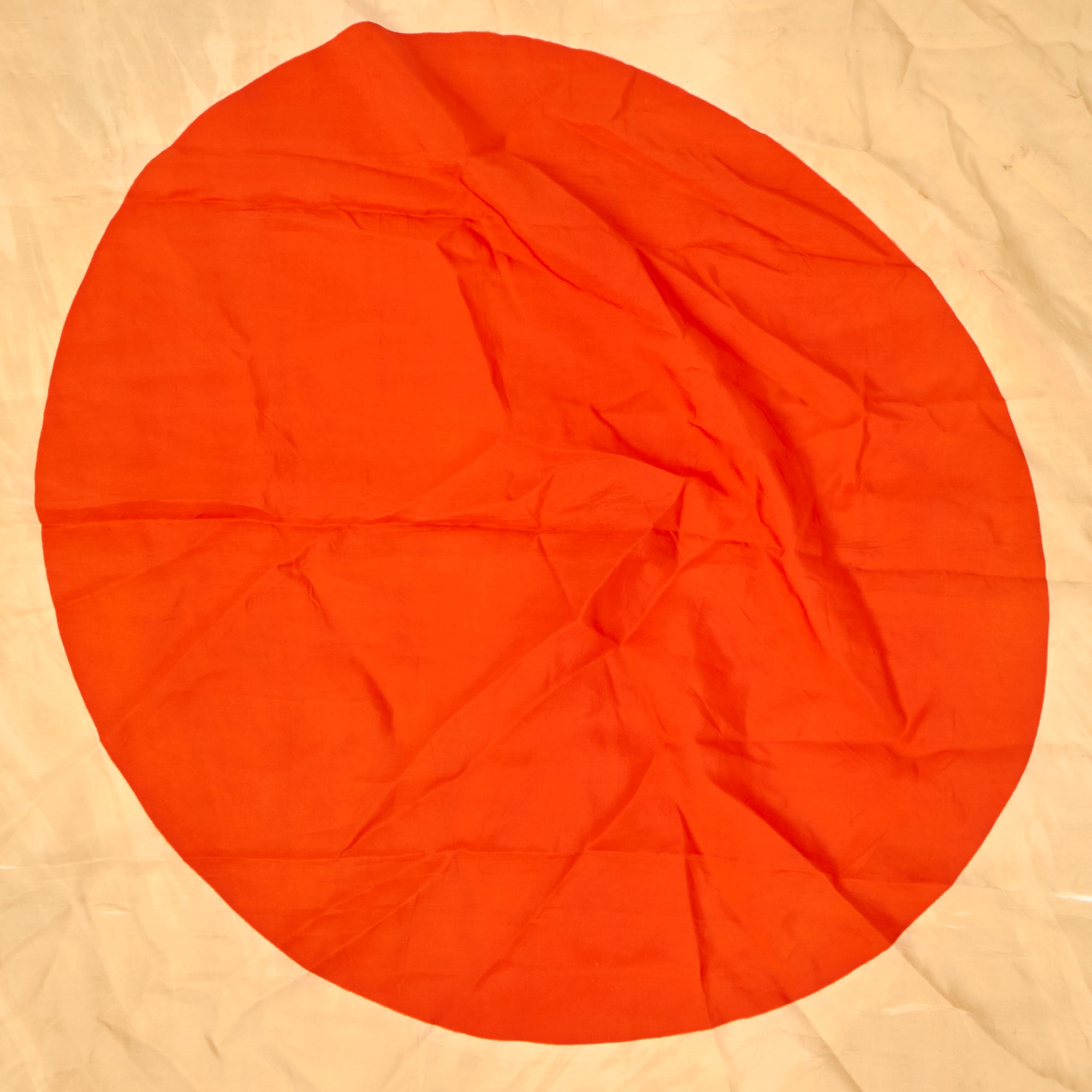 Original Item: Only one available. This is a rare World War II Japanese pilot’s bail-out survival “meatball” float flag. The flag is constructed of silk with a stitched and stuffed buoyant border to assist in the flotation of the flag on the water for a Japanese pilot who crashed in the sea.