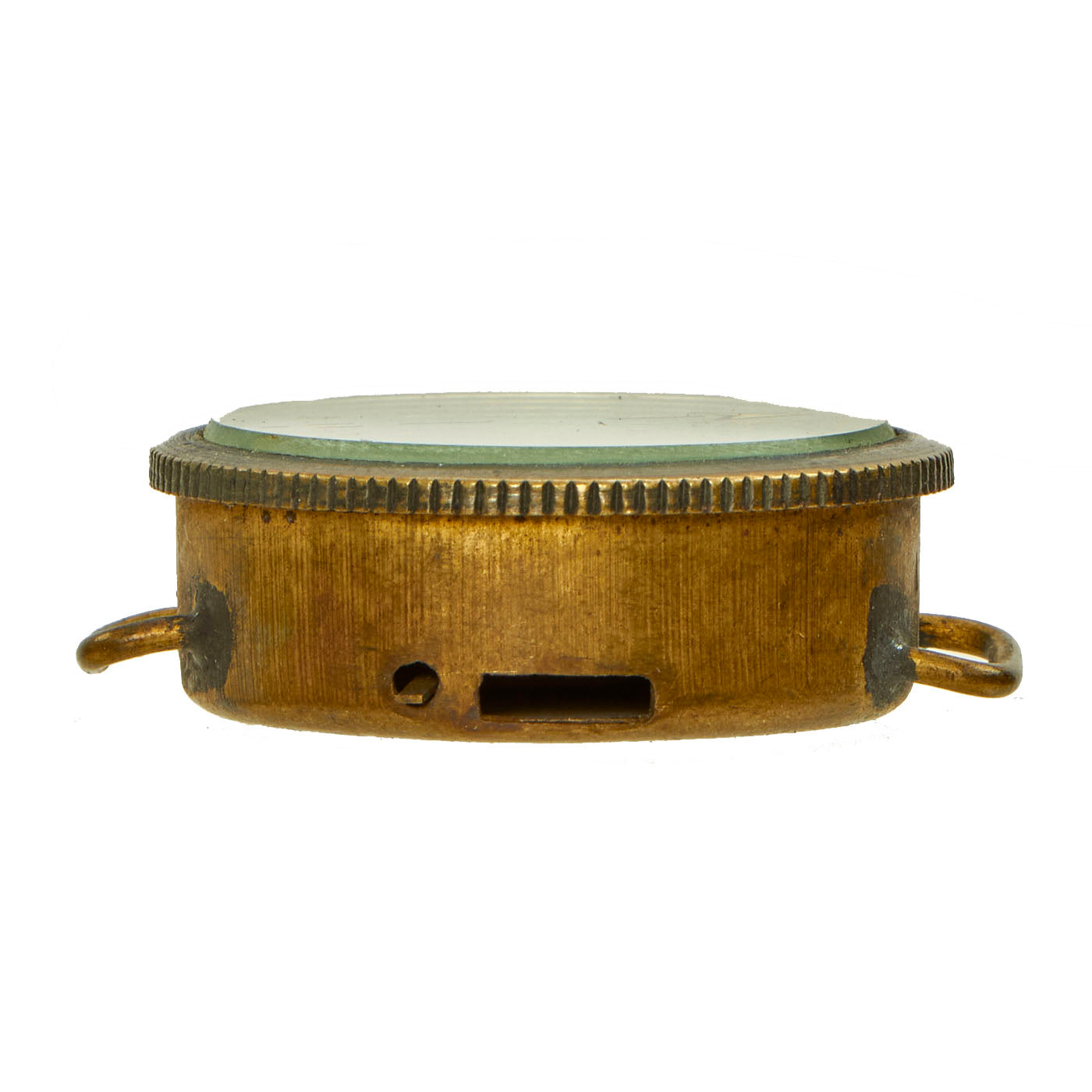 Original Item: Only One Available. This is an example of a WWII Imperial Japanese Wrist Compass, as issued to Pilots of the Imperial Japanese Army and Imperial Japanese Navy. The compass has a face diameter of approximately 1 inch. The compass pointer moves easily within the case, and the compass has a locking mechanism on the side of the case which is unfortunately missing. The compass case also has a turning bezel to provide an adjustable directional arrow. The leather wristband shows wear and there are cracks to the crystal face.
