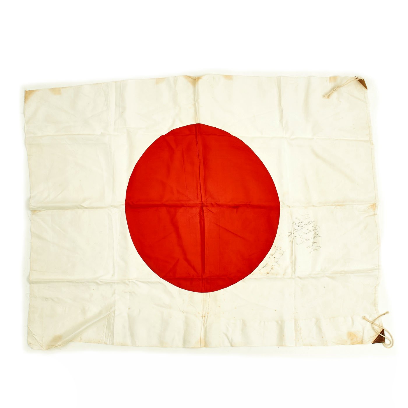 This is the typical type and size of flag that would be used as a "Good Luck Flag", but was probably captured before it could be properly decorated, which is why it is in such good condition. The flag is signed in two places to the left of the "Sun":