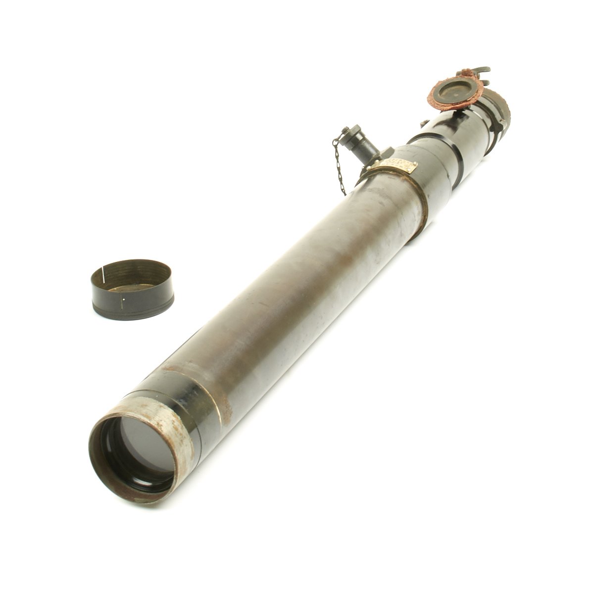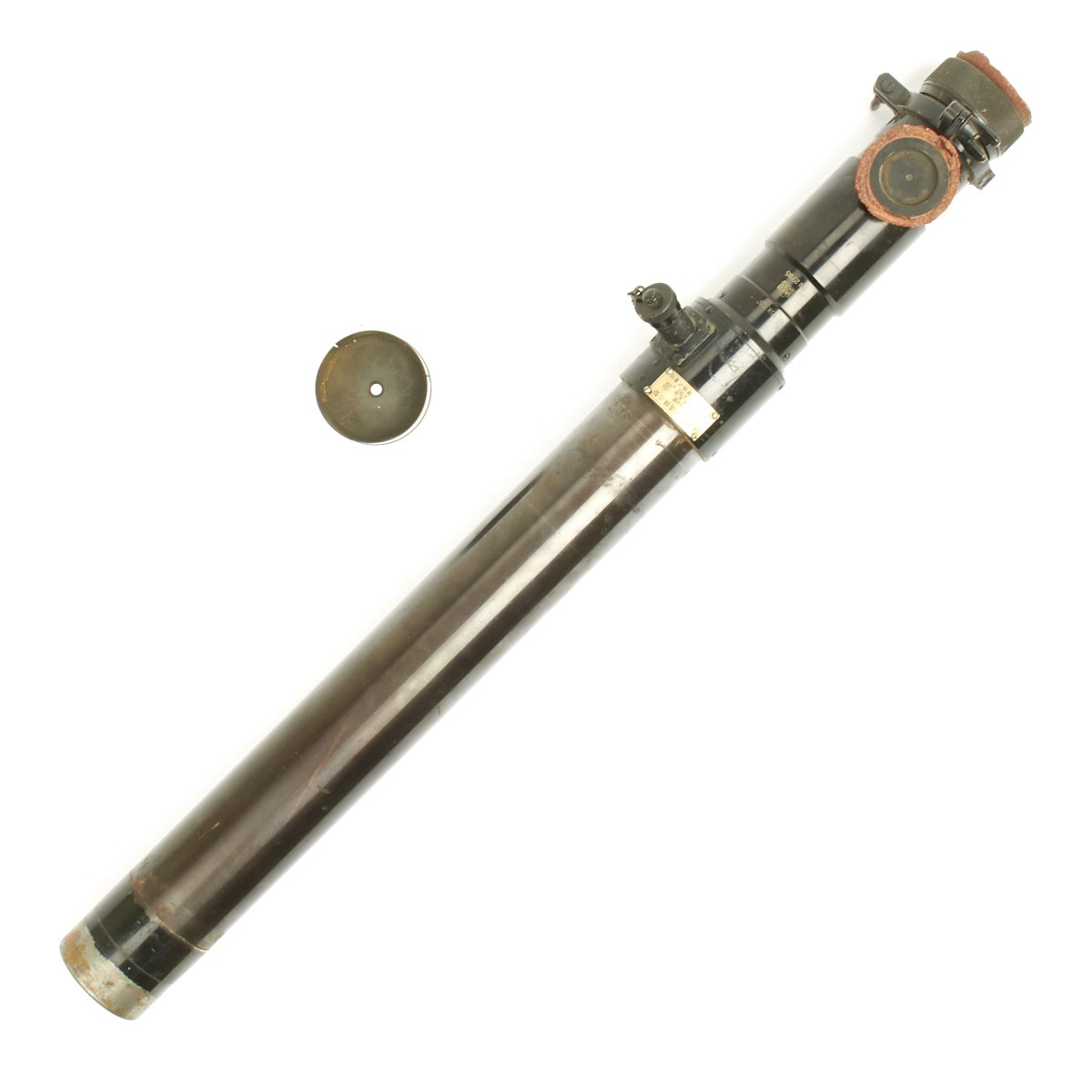Original Item: Only One Available. Made of solid brass, aluminum, and steel by Nikko (Nikon), this scope is in excellent condition. It retains 98% of its original black paint and finish, and the optics are clear and function perfectly. Measuring approx 30″ long, it weighs approximately 20 lbs. It was designed for use with the 140mm gun on a Japanese Submarine during WWII. An identical sight was used aboard Submarine I-401 and can be found in the Yokohama WWII Japanese Military Radio Museum and seen at this link.