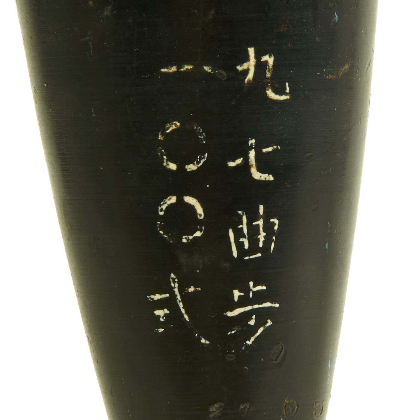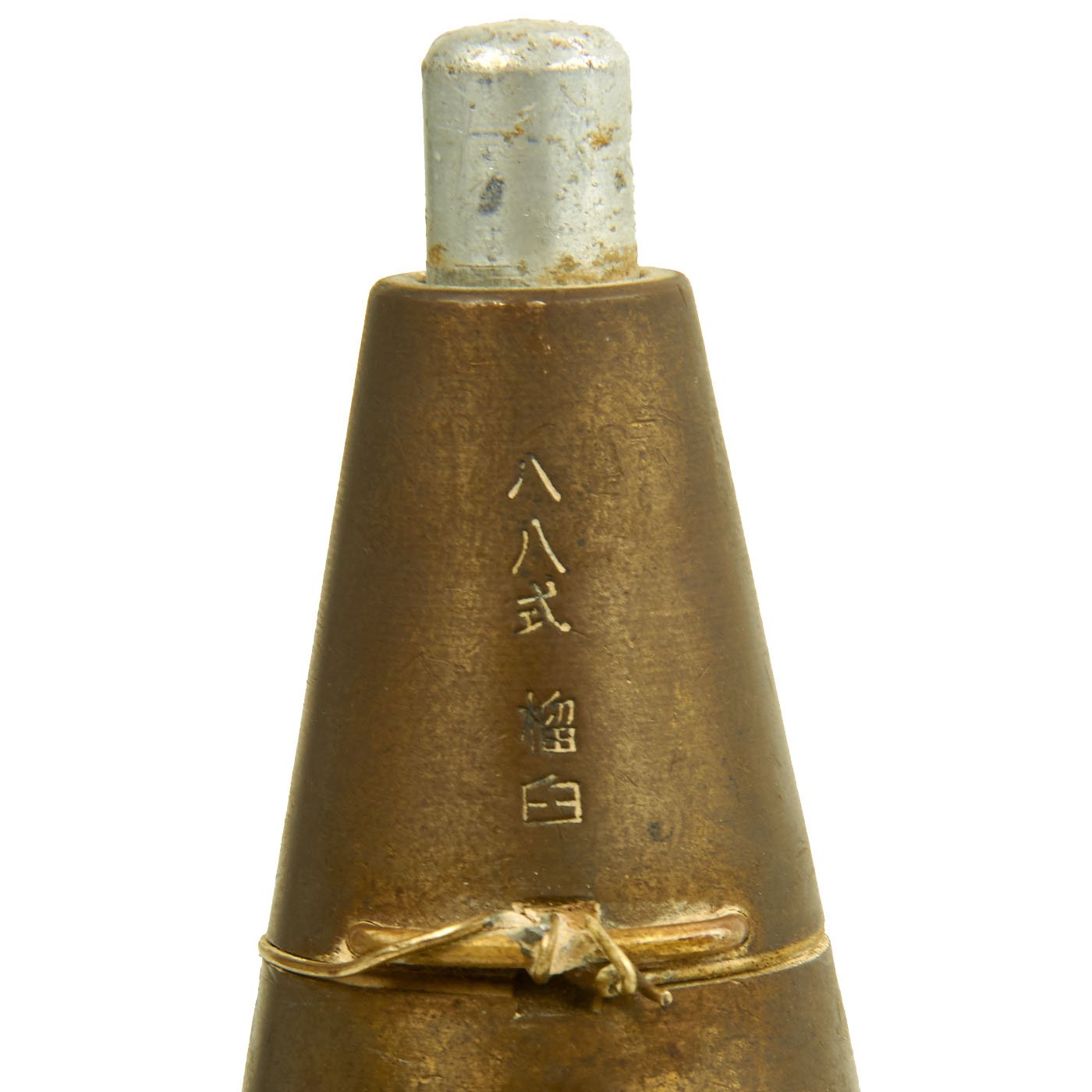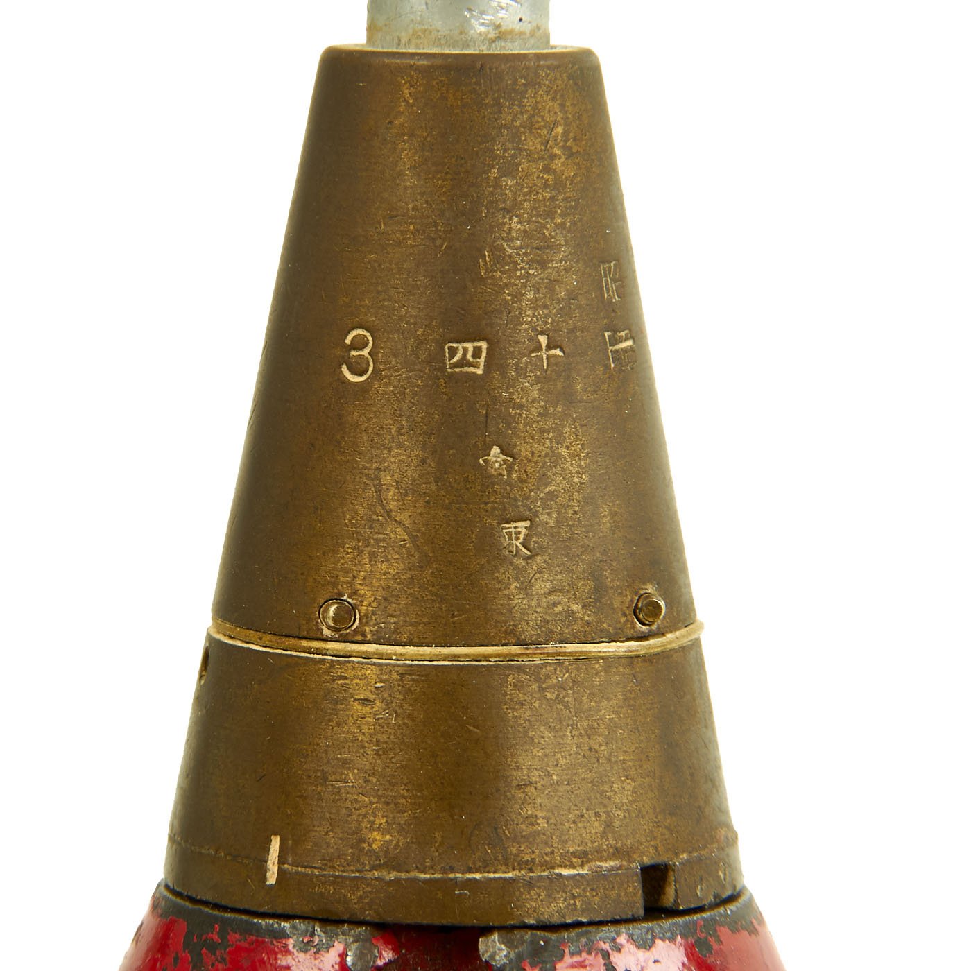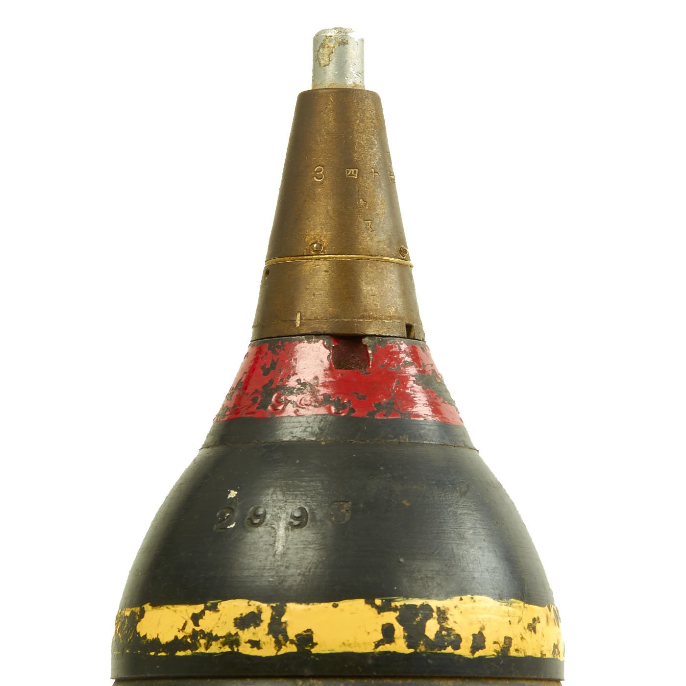 This is a very good condition rare example of the Japanese Type 100 HE Mortar Round used with the Type 97 (1937) and later the Type 99 small trench mortar. This is based on the Stokes-Brandt design, as was the U.S. 81mm, and this round was actually interchangeable with the U.S. M43A1 shell.