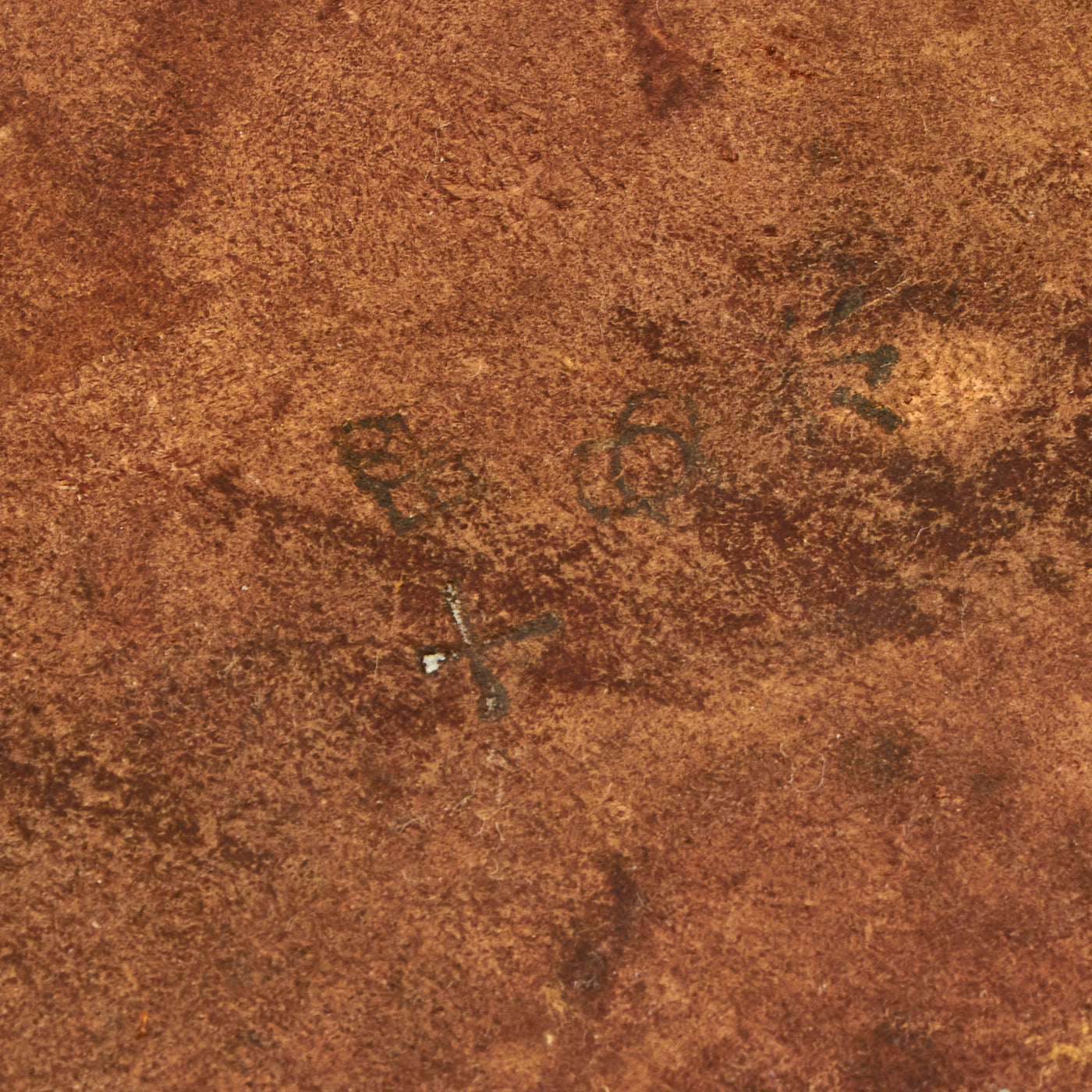 These holsters were originally marked inside the lid, and this example has the "stacked cannonball" logo used by Tokyo Arsenal until 1935, and then used by Kokura Arsenal. There is a date marking of 昭 十, or Showa 10, which is 1935, the year the change was made, so there is unfortunately no way to know which arsenal the marking is from.