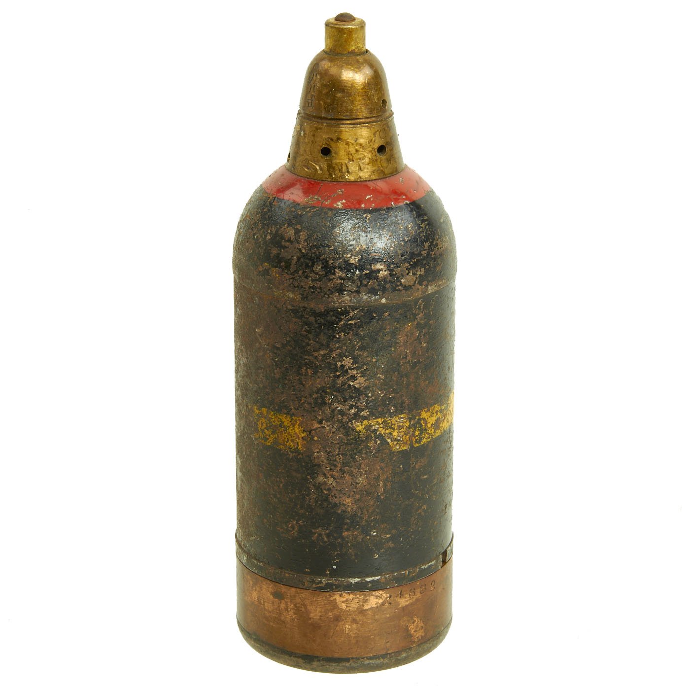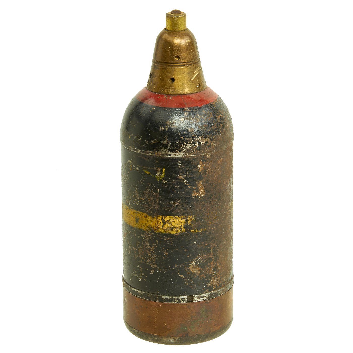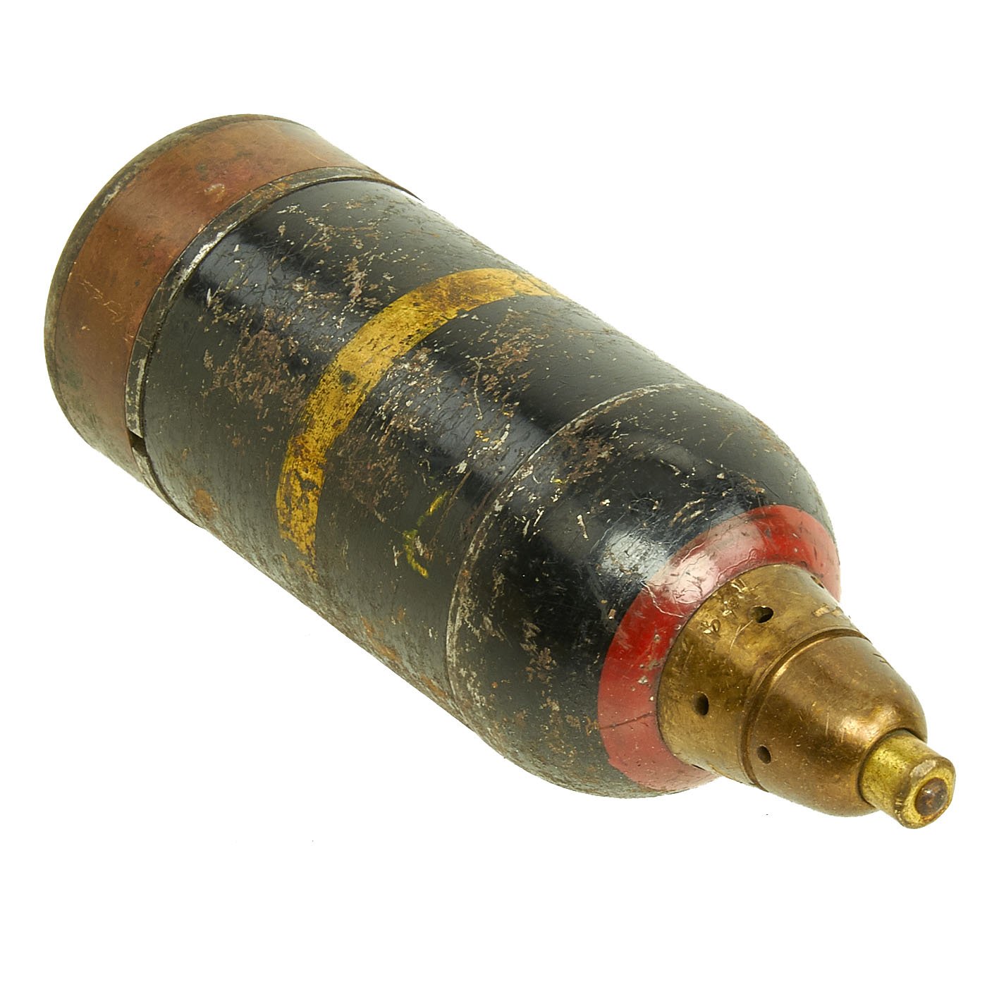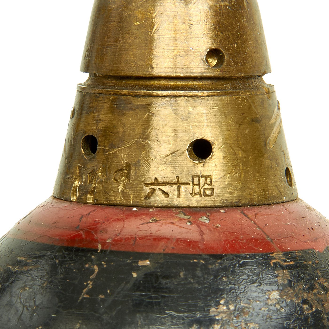 Original Items: Only One Available. This is a genuine Japanese World War II 50mm Mortar, Type 89 grenade with a Type 88 instantaneous fuze. Features original paint with a yellow band on body and a red band at the top. The Mortar round is inert and can never be used as a weapon or for its original intended purpose, therefore complies with BATF guidelines governing ordnance.