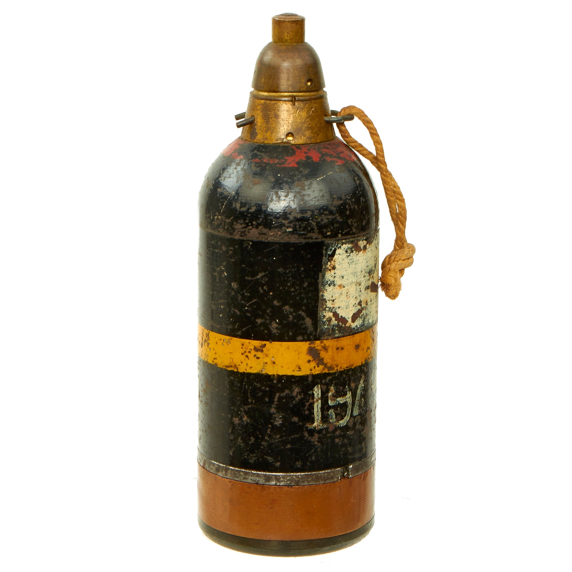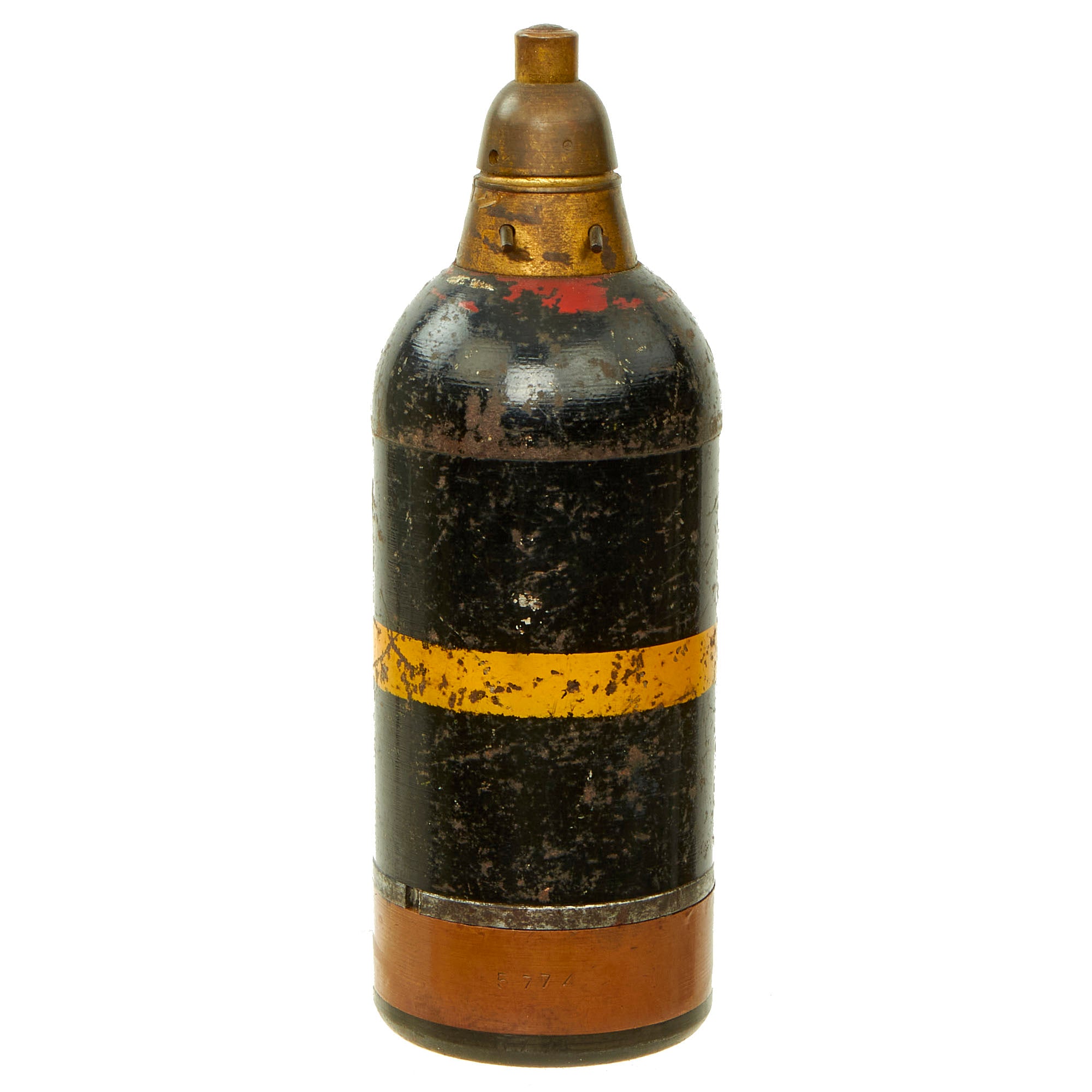 Original Items: Only One Available. This is a genuine Japanese World War II 50mm Mortar, Type 89 grenade with a Type 88 instantaneous fuze. Features original paint with a yellow band on the body and a red band at the top. The Mortar round is inert and can never be used as a weapon or for its original intended purpose, therefore complies with BATF guidelines regarding inert ordnance. Not Available For Export.