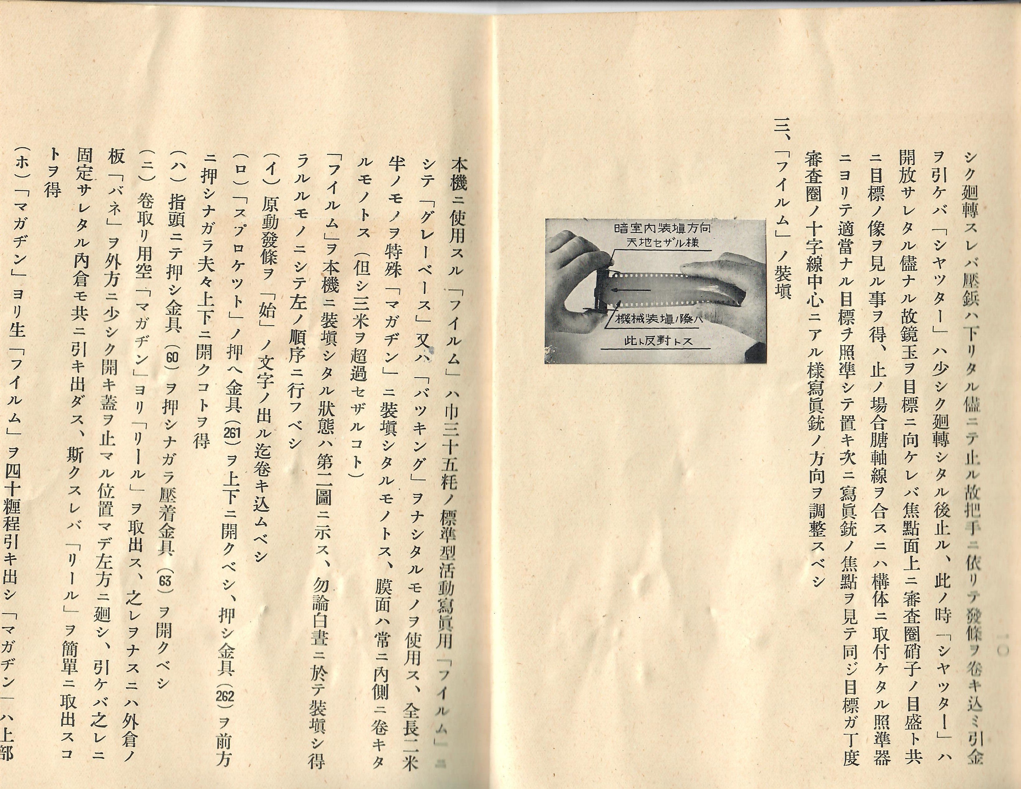The camera is a Model 2, with a 75 mm Hexar lens, that was used for fighters and land-based bombers. This camera has a fascinating history in that it was used to train Japanese machine gunners during WWII. The camera would be mounted inside or outside the plane. When inside it is manned by the gunner, and outside it would be controlled remotely by cables. The camera takes 18x24mm pictures on 35mm cine film loaded in 2.5m strips.