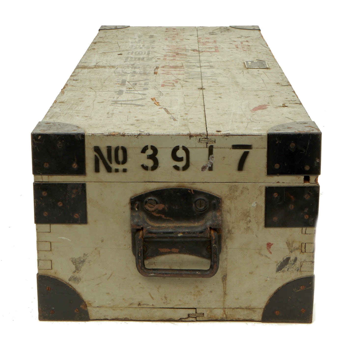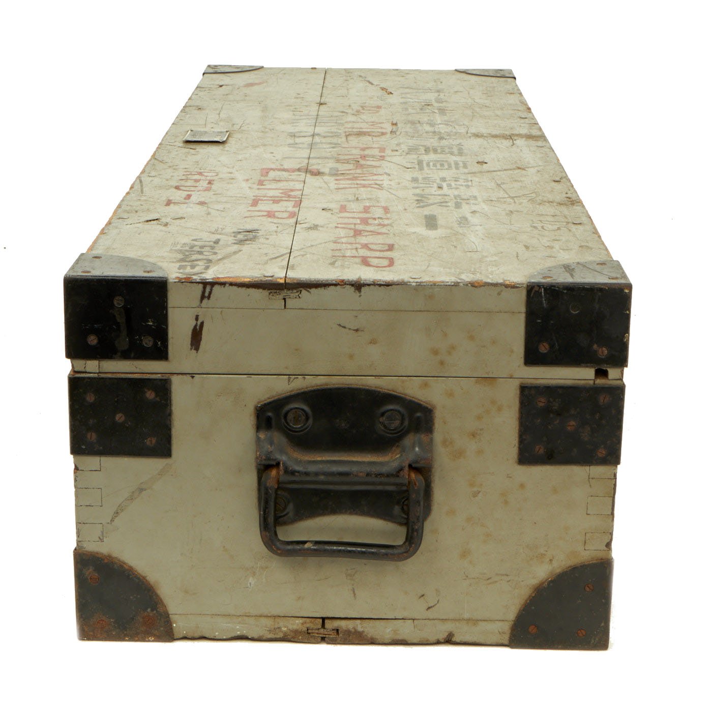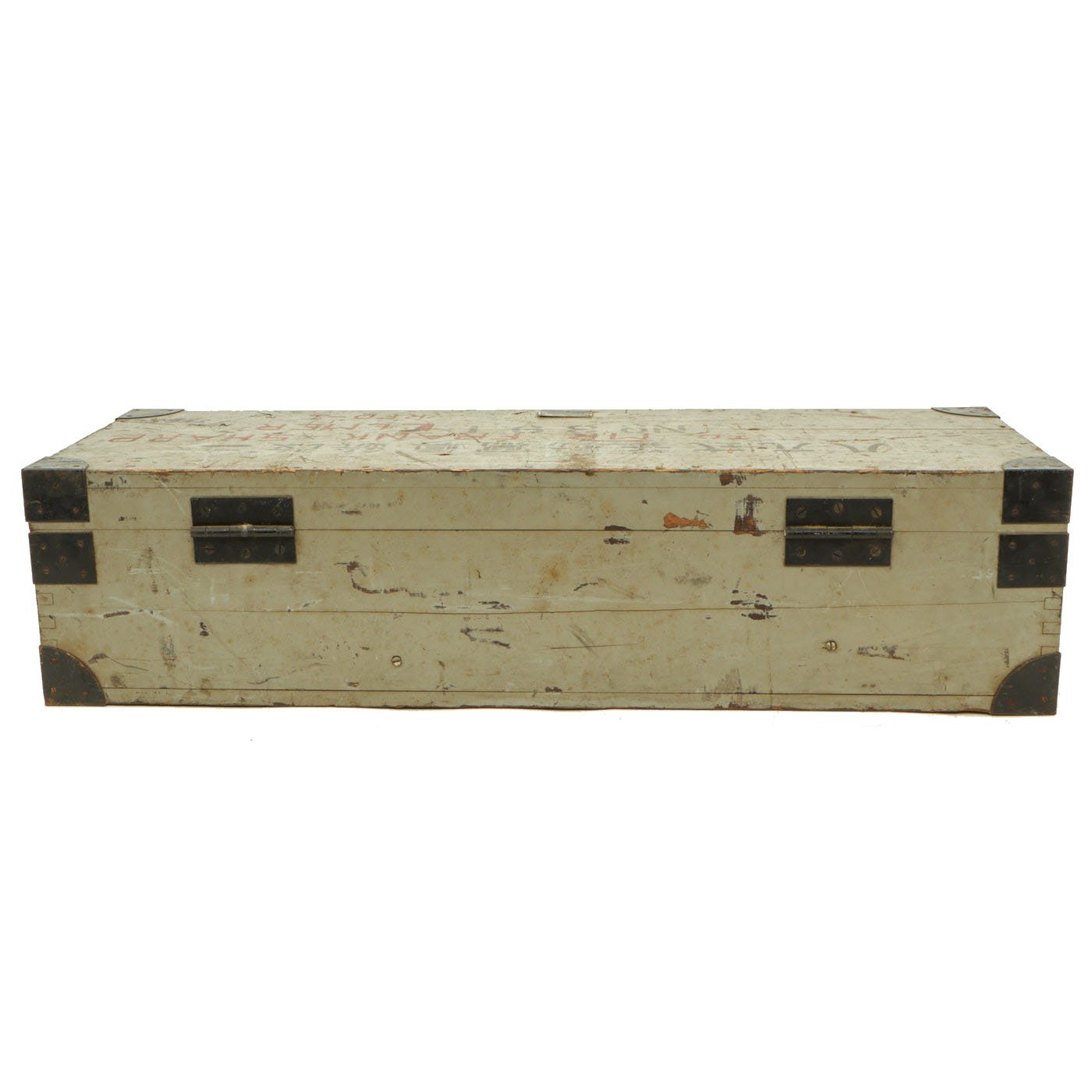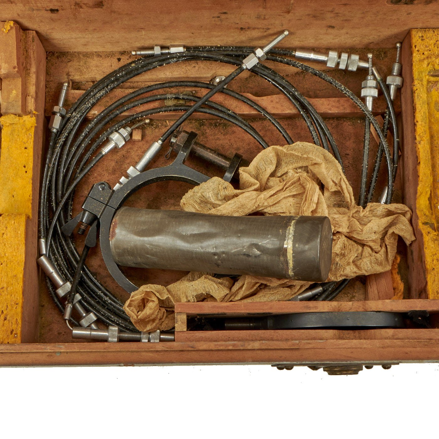 This example of the Japanese WWII Type 89 Rokuohsha Machine Gun Camera is serial number 3917 which is marked on both the gun and transit chest. It has an original manual, multiple parts and accessories. This is the most complete example we have ever encountered or even heard of. Additionally the chest was marked by MR. FRANK SHARP of Elmer, New Jersey as he sent it back from Japan after World War Two as a souvenir of war.