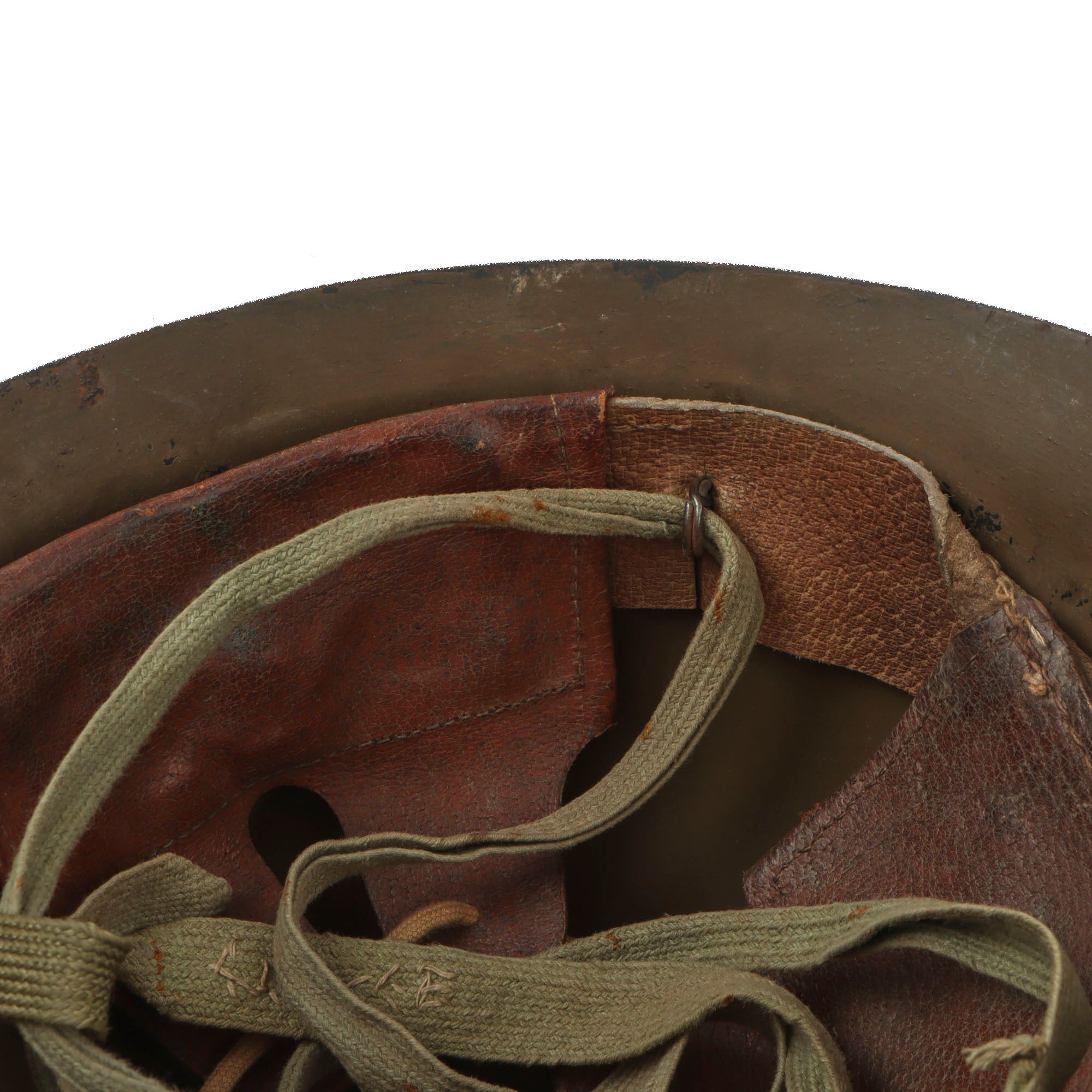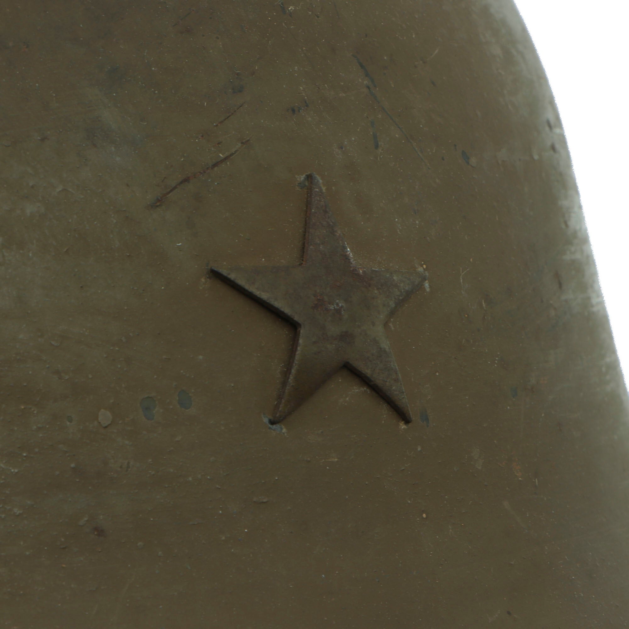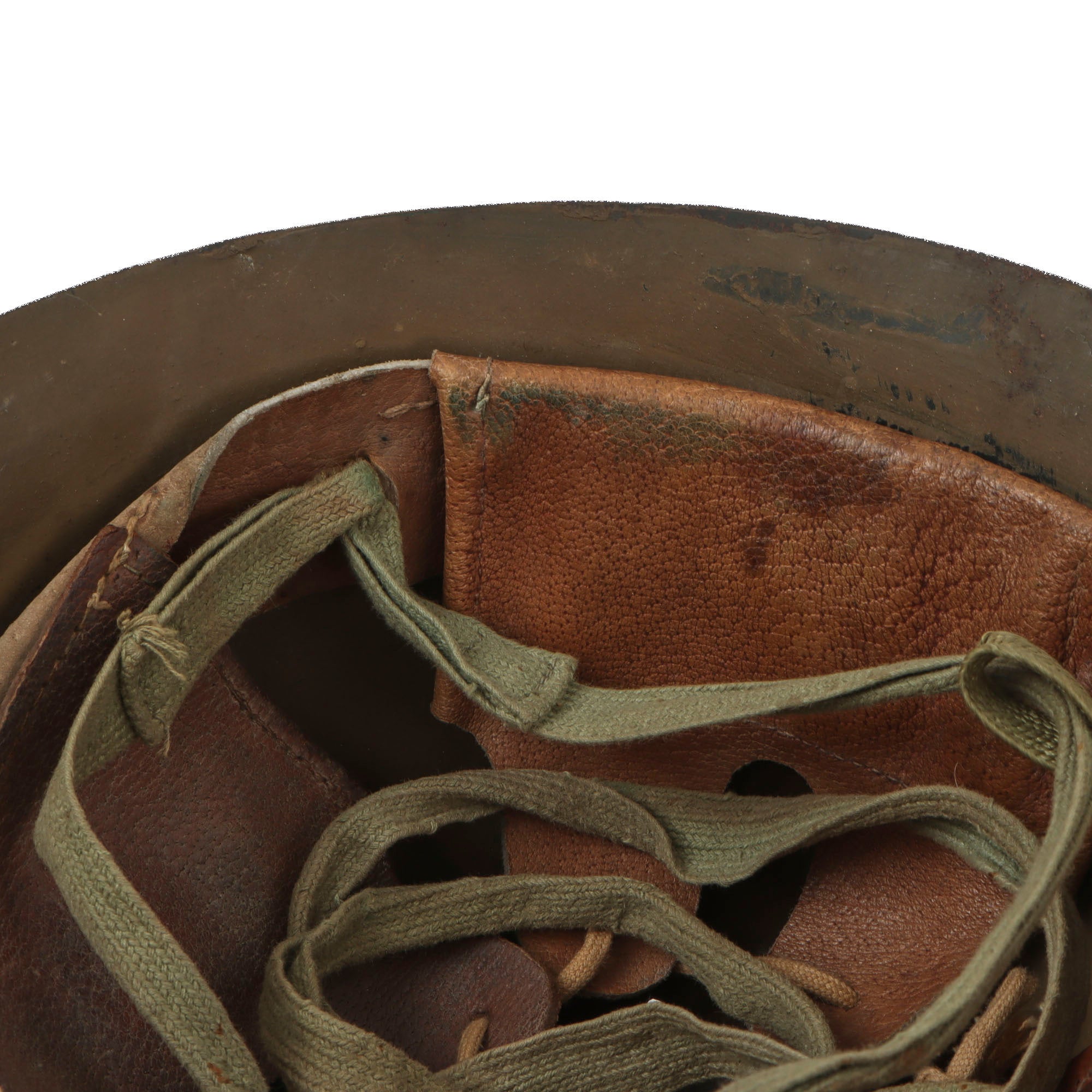 A very nice condition helmet, with most of the original paint, with the expected wear and chips from service. These helmets are continuing to become harder and harder to find on the market, especially once with complete liner and chin strap systems. This example is worthy of any WWII collection.