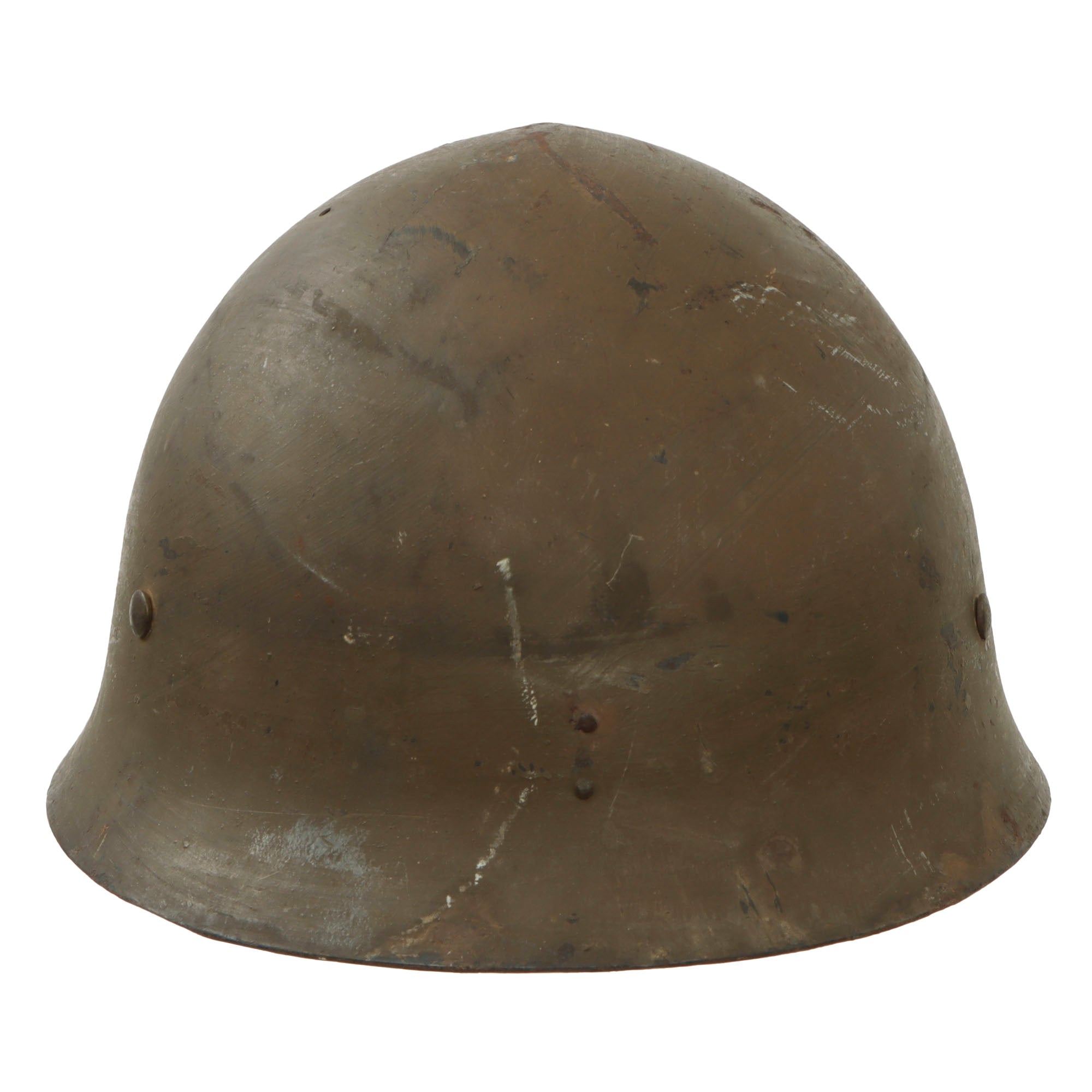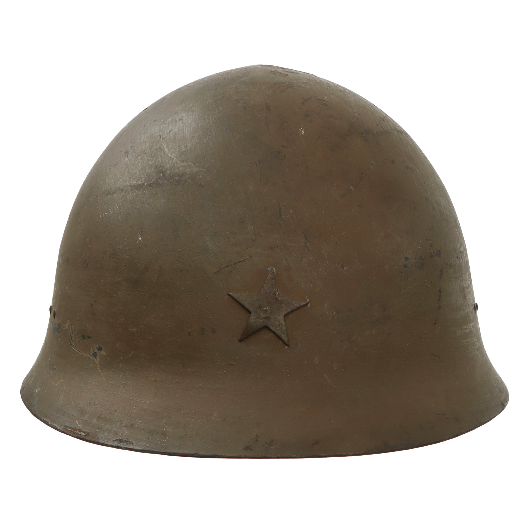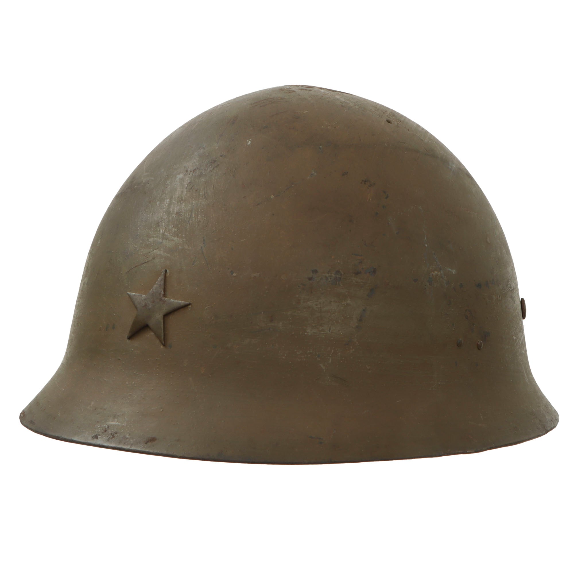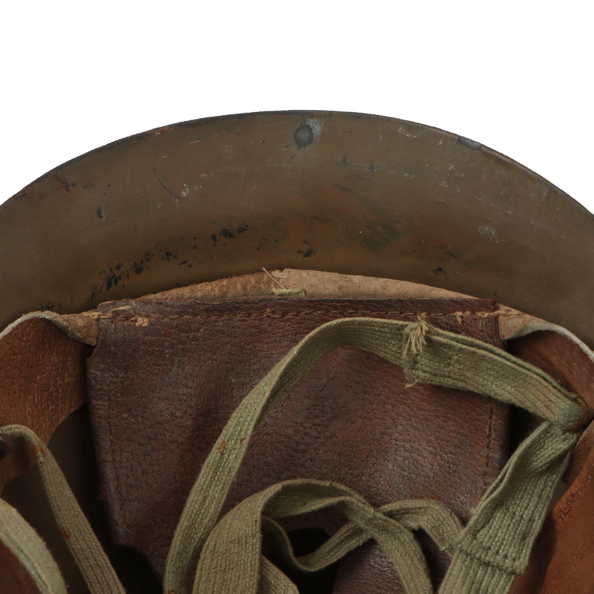 A very nice condition helmet, with most of the original paint, with the expected wear and chips from service. These helmets are continuing to become harder and harder to find on the market, especially once with complete liner and chin strap systems. This example is worthy of any WWII collection.
