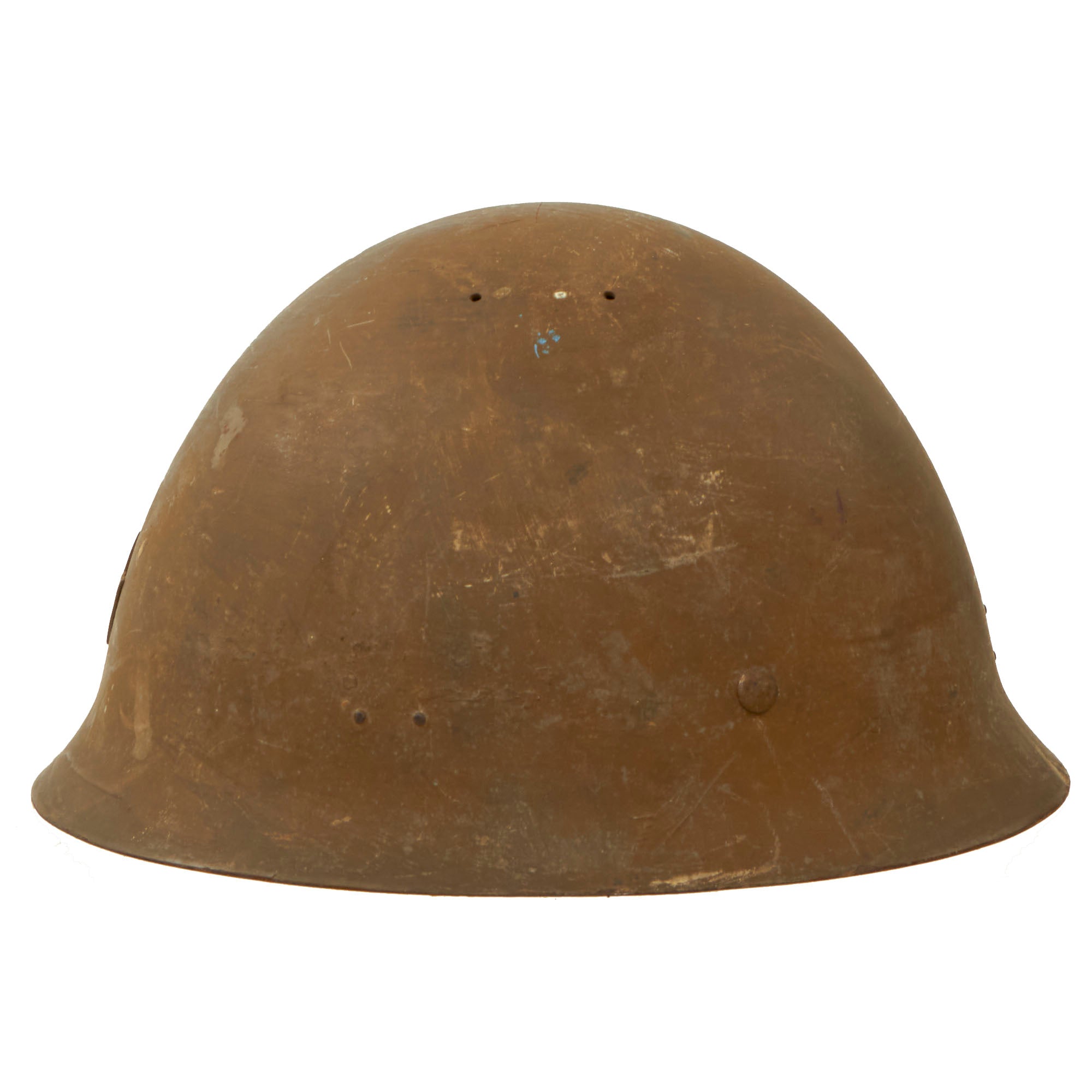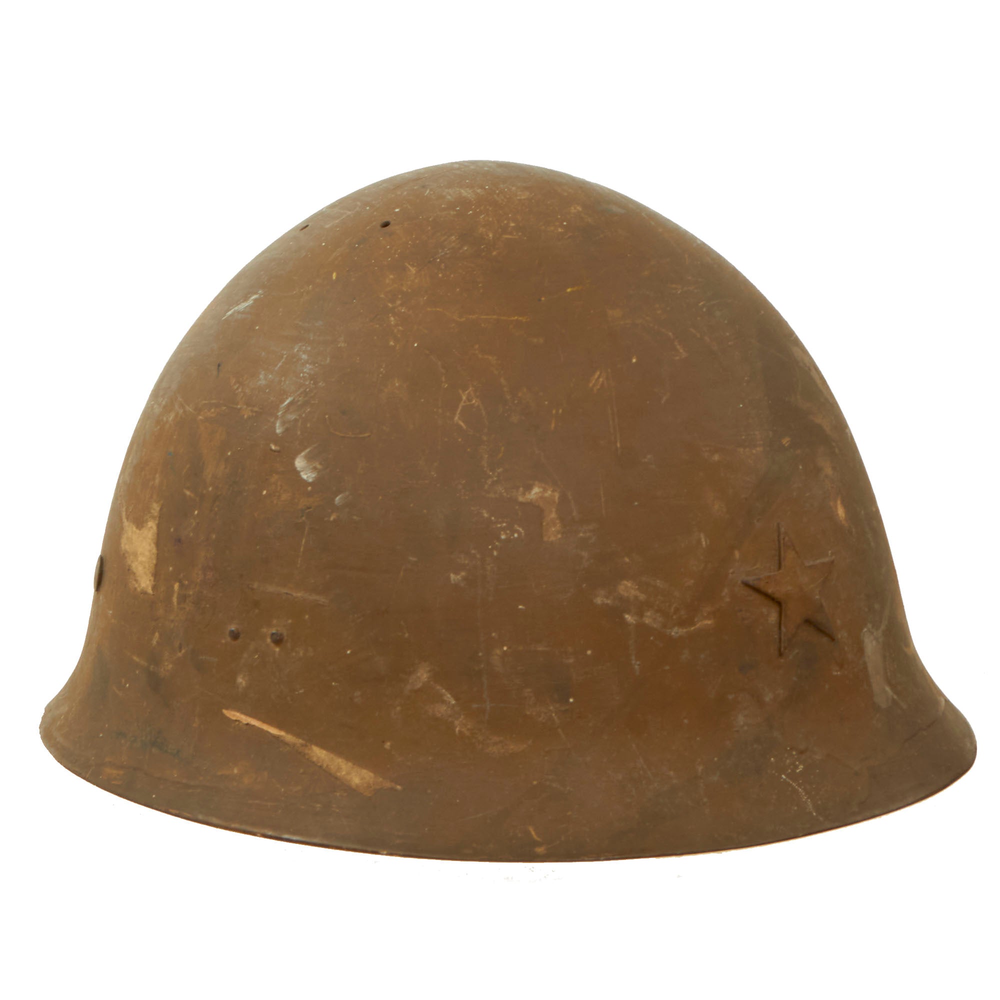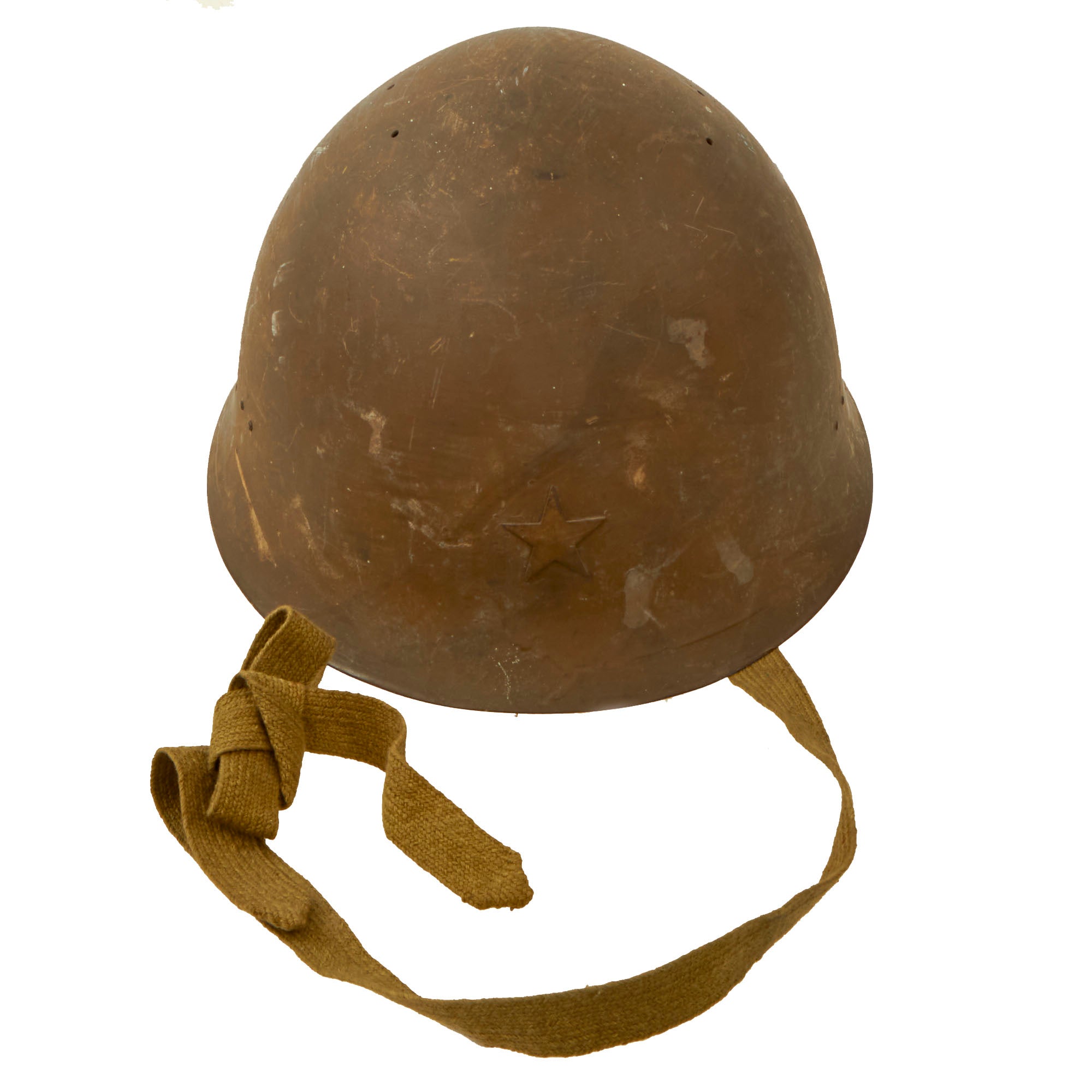 Original Item: Only One Available. This is a wonderful example of the classic Japanese Type 90 Tetsubo (鉄帽 - "steel cap") army helmet, also colloquially called the tetsukabuto ( 鉄 冑 "steel helmet") by Japanese troops.Features include:- Original metal star applied to front.- Complete three pad leather liner, with all 3 pads still intact without any serious dry-rotting, and not much loss of material. The liner is still connected at the three pins. The pillows all appear present inside. The Kanji character 大 for Large is perforated into the liner band.- Original, worn tie down chinstrap.- Original paint with the expected wear, showing the "blue" manganese steel underneath the helmet. The liner fittings have oxidation as well.- Approximate size is 7 1/4 (58cm).- Kanji character 大 for Large is stamped into the rear metal rim and the white painting of the character is also visible.A very nice condition helmet, with most of the original paint, with the expected wear and chips from service. These helmets are continuing to become harder and harder to find on the market, especially once with complete liner and chin strap systems. This example is worthy of any WWII collection.The Japanese Type 90 HelmetThe Imperial Japanese Army was the official ground based armed force of Imperial Japan from 1871 to 1945. It was controlled by the Imperial Army General Staff Office and the Ministry of War, both of which were nominally subordinate to the Emperor of Japan as supreme commander of the army and the navy. Later an Inspectorate General of Military (Army) Aviation, became the third agency with oversight over the army.During wartime or national emergencies, the nominal command functions of the emperor would be centralized in an Imperial General Headquarters (IGHQ), an ad-hoc body consisting of the chief and vice chief of the Army General Staff, the minister of war, the chief and vice chief of the Naval General Staff, the inspector general of military aviation, and the inspector general of military training.The Japanese Tetsubo, also colloquially called the tetsukabuto ("steel helmet") by troops, was a mainstay of the Imperial Japanese Army from its creation in 1932. Its construction from inferior chrome-molybdenum steel limited its ability to protect the wearer from gunfire or shrapnel.