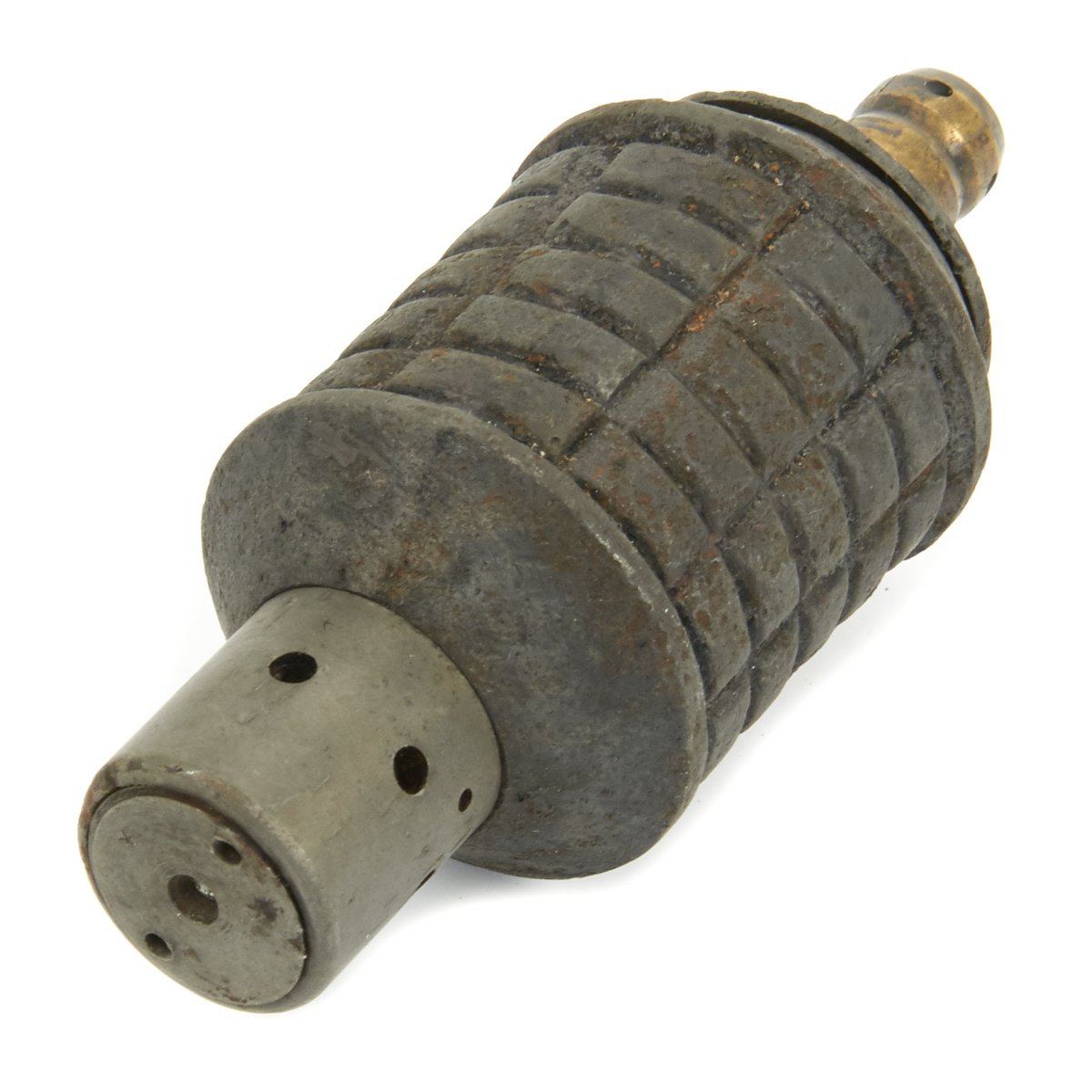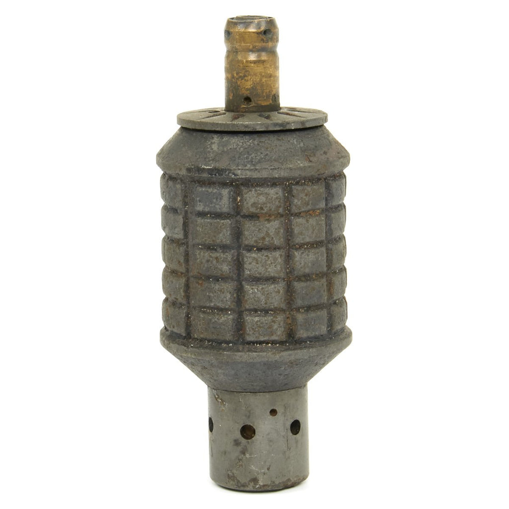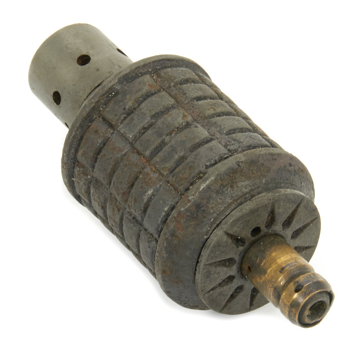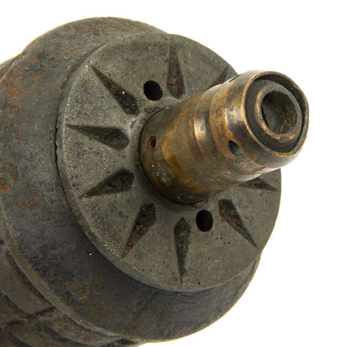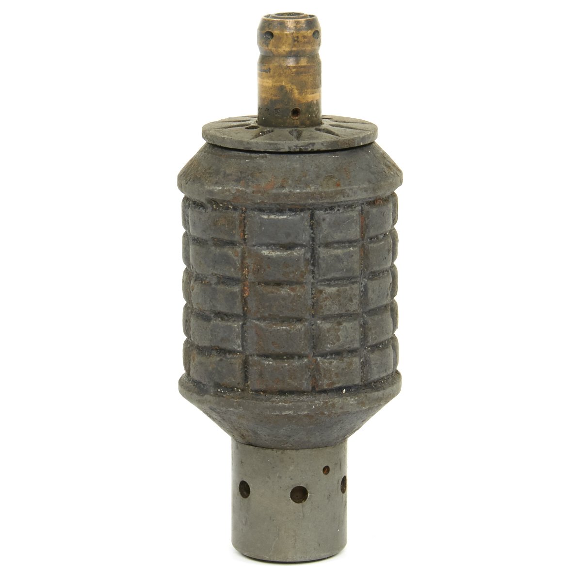 Original Item: Only One Available. This is an exceptionally rare excellent condition inert demilitarized genuine Japanese Type 91 Hand Grenade. This example is offered in excellent condition complete with pin, fuse, original top cap and lower booster (the booster is almost always missing!).