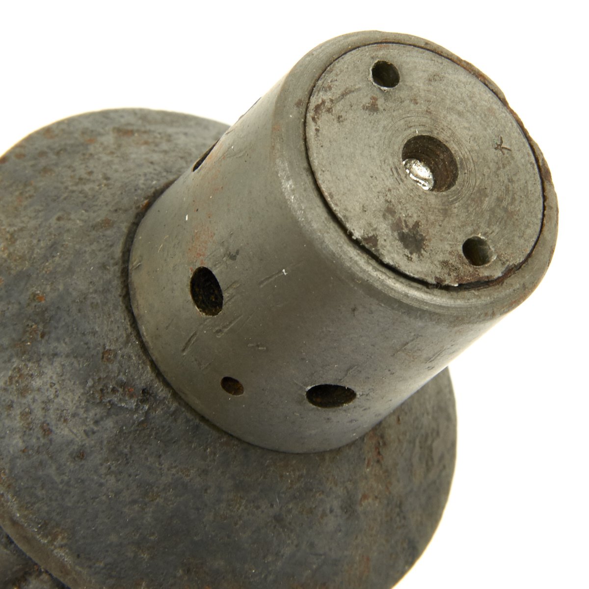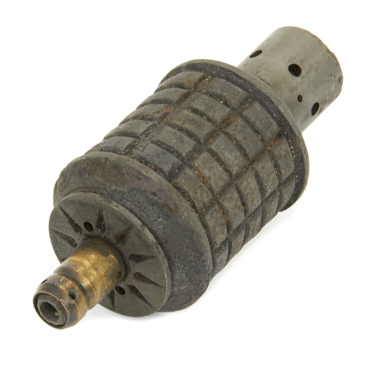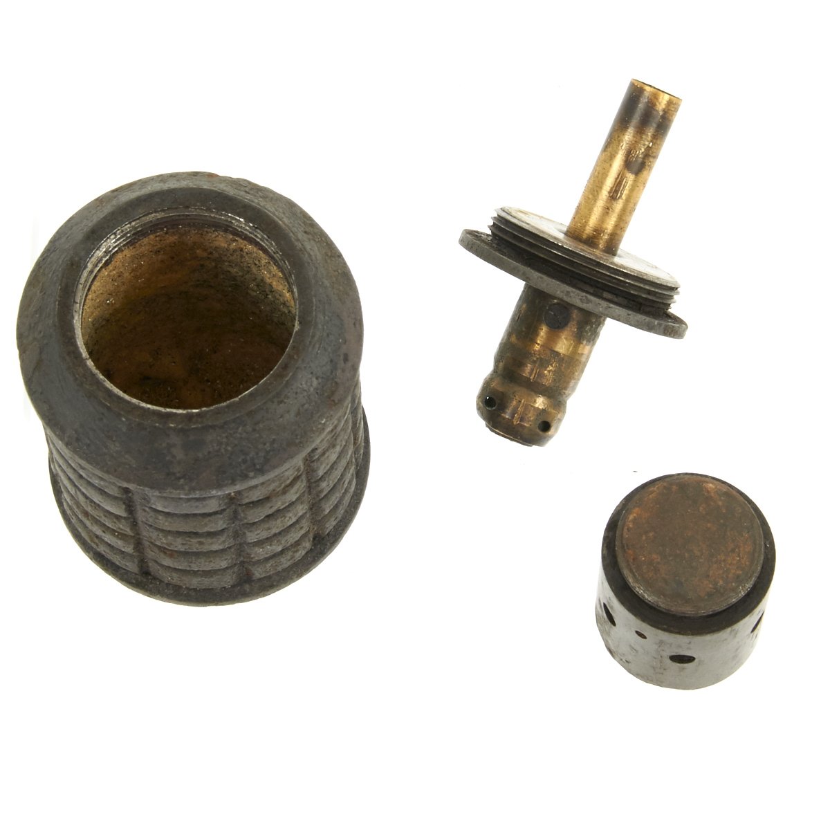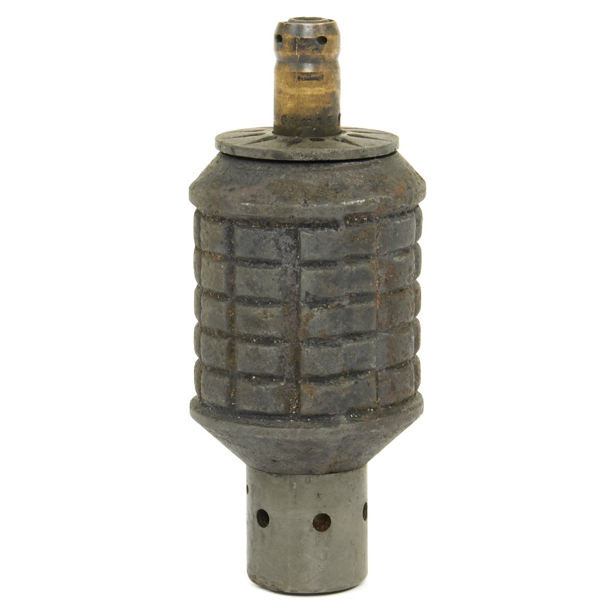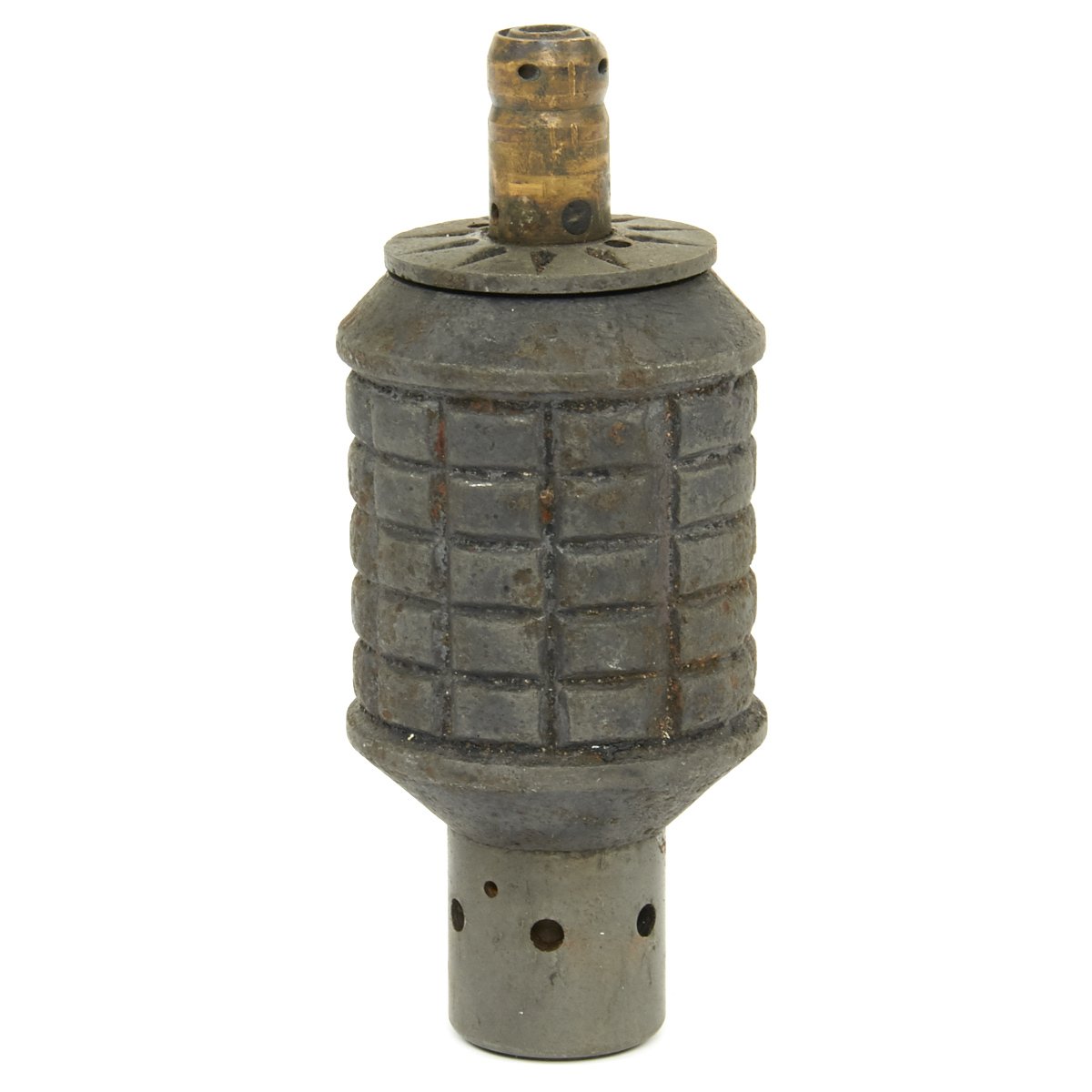 Original Item: Only One Available. This is an exceptionally rare excellent condition inert demilitarized genuine Japanese Type 91 Hand Grenade. This example is offered in excellent condition complete with pin, fuse, original top cap and lower booster (the booster is almost always missing!).