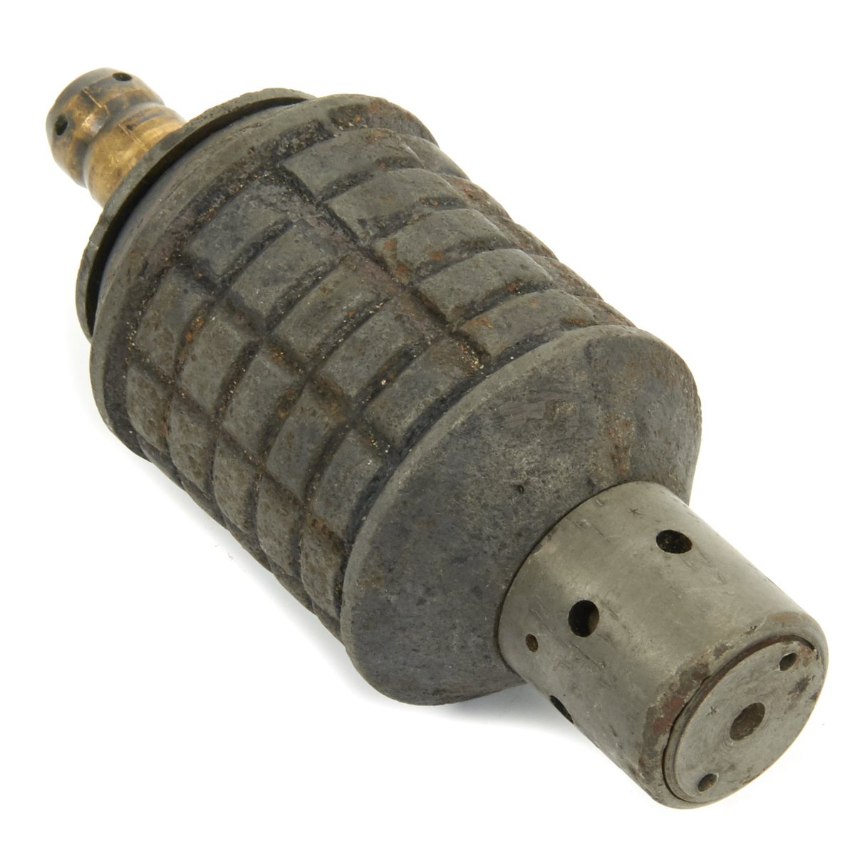 The Type 91 Hand Grenade was an improved version of the Type 10 fragmentation hand grenade/rifle grenade of the Imperial Japanese Army. Although superseded as a hand-thrown weapon by the Type 97 by the start of World War II it was still used by units in the Second Sino-Japanese War and by reserve forces, as well as the Japanese Navy's Special Naval Landing Forces.