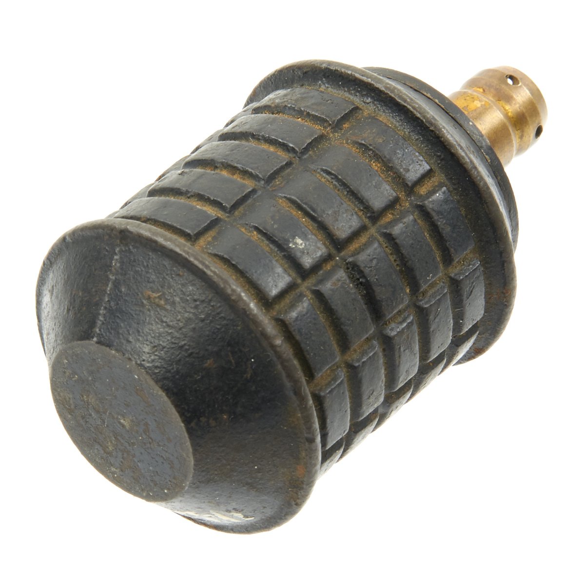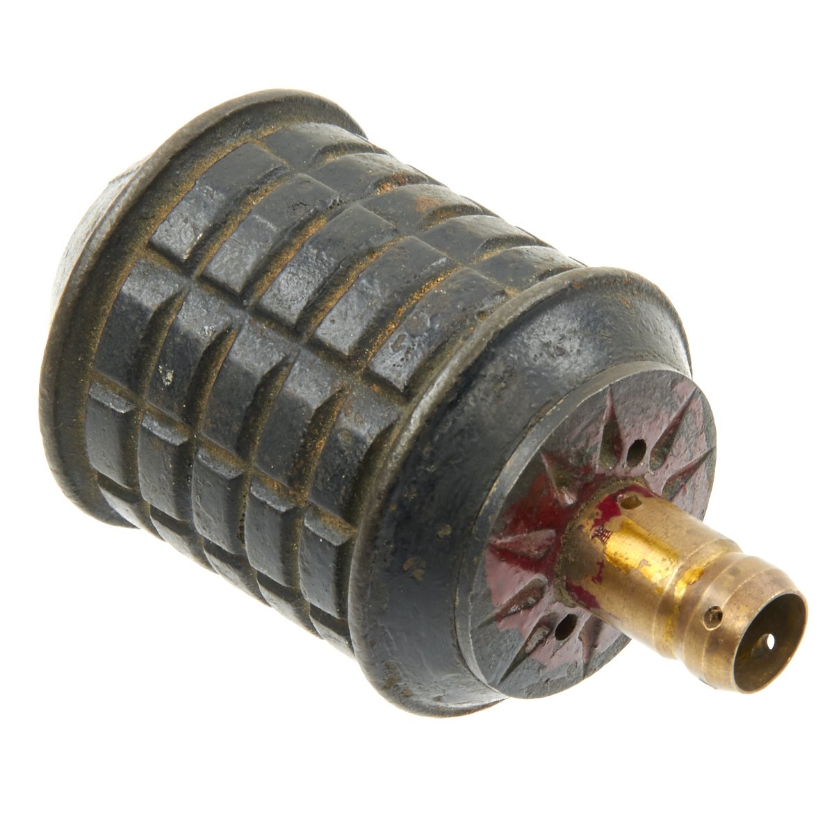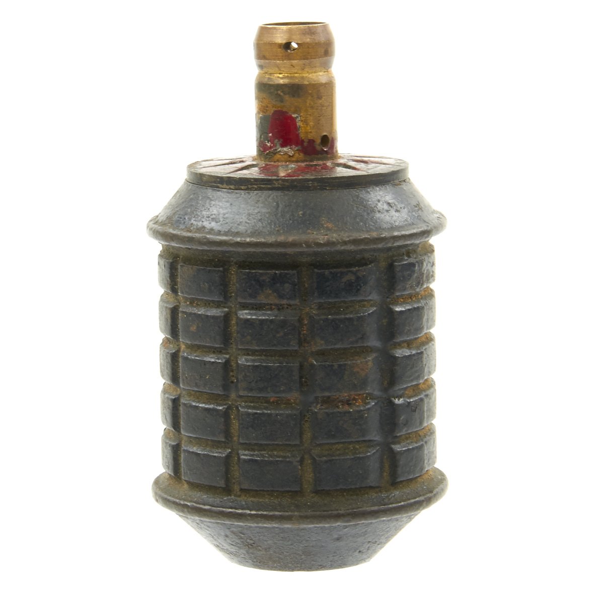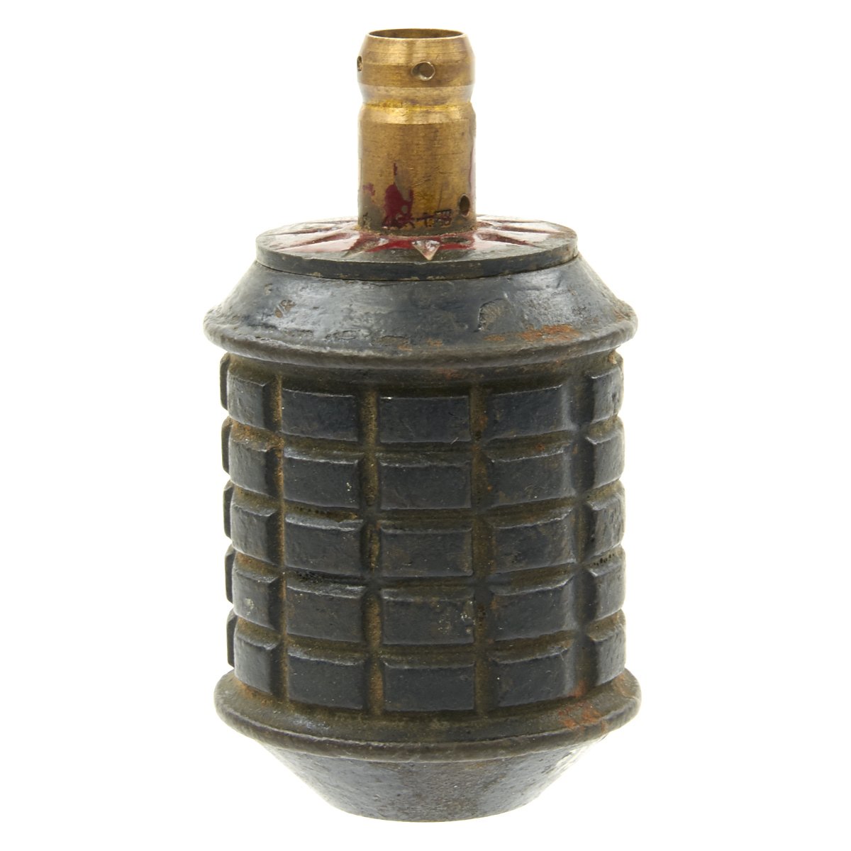 Original Item: Only One Available. This is an excellent inert demilitarized genuine Japanese Type 97 Hand Grenade. This example is offered in excellent condition complete with the fuse still attached to the screw off top. The cap, pin, and string are unfortunately missing. It still retains a lot of the original black paint. The Type 97 Hand Grenade was the standard fragmentation hand grenade of the Imperial Japanese Army and Imperial Japanese Navy SNLF during the Second Sino-Japanese War and World War II.