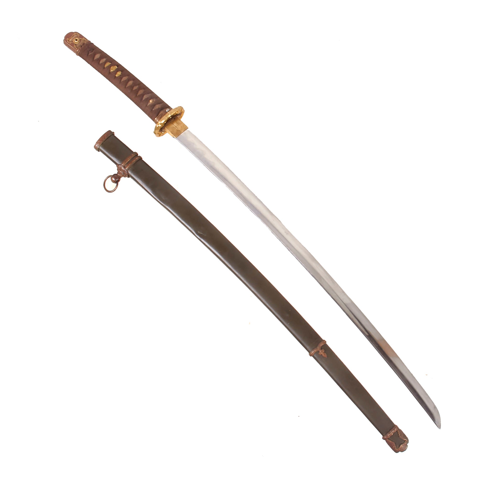 Original Item: One of a Kind. Recently purchased at a recent military auction, this is lovely condition USGI Bring-Back wartime production Japanese officer Katana in the Type 98 Shin-Gunto (九八式軍刀 kyūhachi-shiki guntō) setting. The Type 98 fittings (koshirae) are slightly simplified compared to the earlier Type 94. The blade tang is signed by the maker, and appears to have been hand forged at arsenal. A Shin-Guntō (新軍刀, new military sword) is a weapon and symbol of rank used by the Imperial Japanese Army between the years of 1935 and 1945.