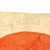 The flag measures approximately 27” x 22”, and looks to be made from rayon, an early form of synthetic fabric made from wood, which has a lovely sheer look. The body of the flag is white, with a red "sun round" dyed into the middle. It has paper corner reinforcements, though they are now worn, with the hanging ties still intact, though they appear to be added. This flag definitely has seen some wear from service, but is still in very good condition. It has the expected age toning, and areas where the fabric has torn due to wear. This is a size that could have been used as a good luck flag, but may also have been flown as a national flag. There are holes and “organic red” type staining which is now a nice rust color.