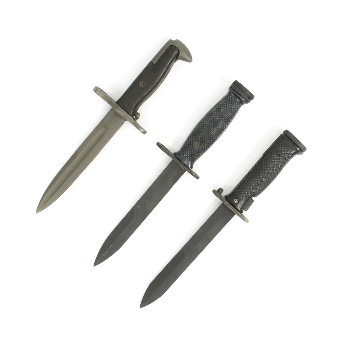 Along with these, the U.S. provided bayonets, which included the M4 for the M1 Carbine, the M5 for the M1 Garand, as well as modified M1905E1 and 1942 bayonets, which were cut down and re-shaped to have a blade more similar to the M4 and M5 bayonets. Later on, the U.S. did not supply further bayonets, so they manufactured their own.