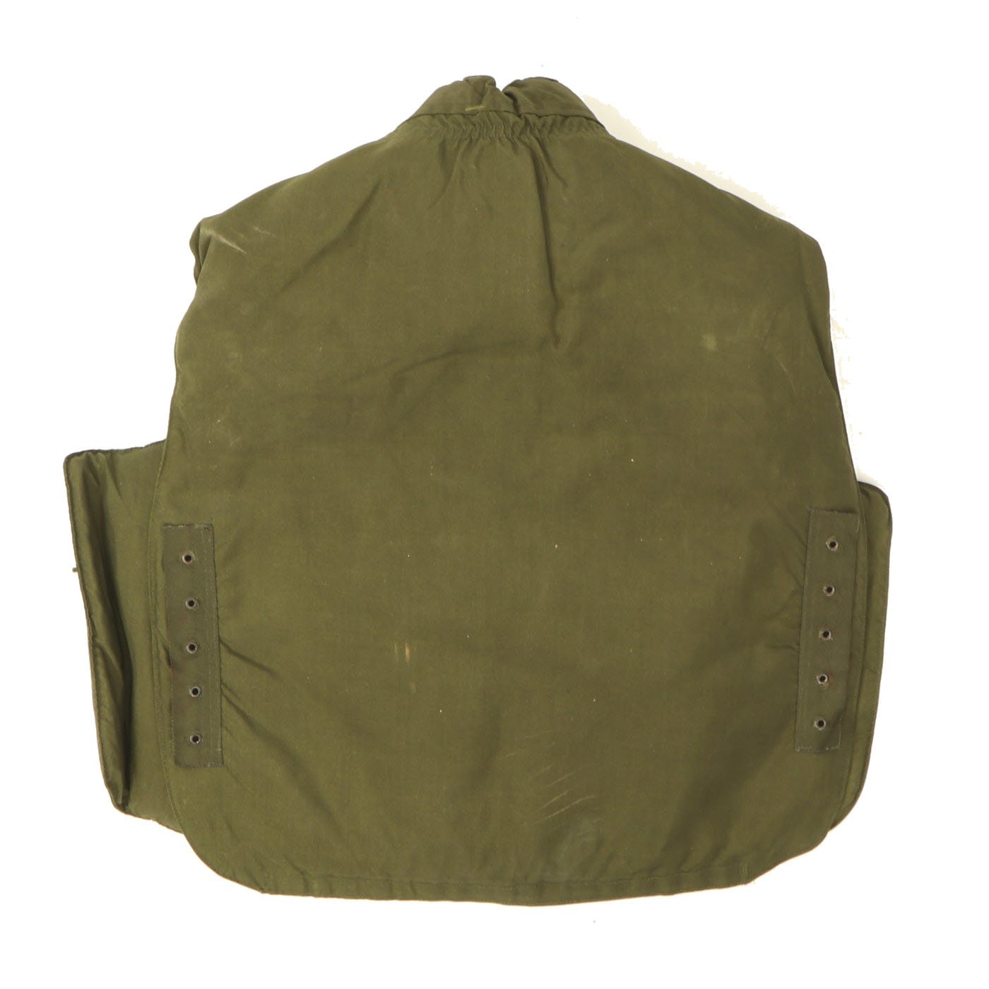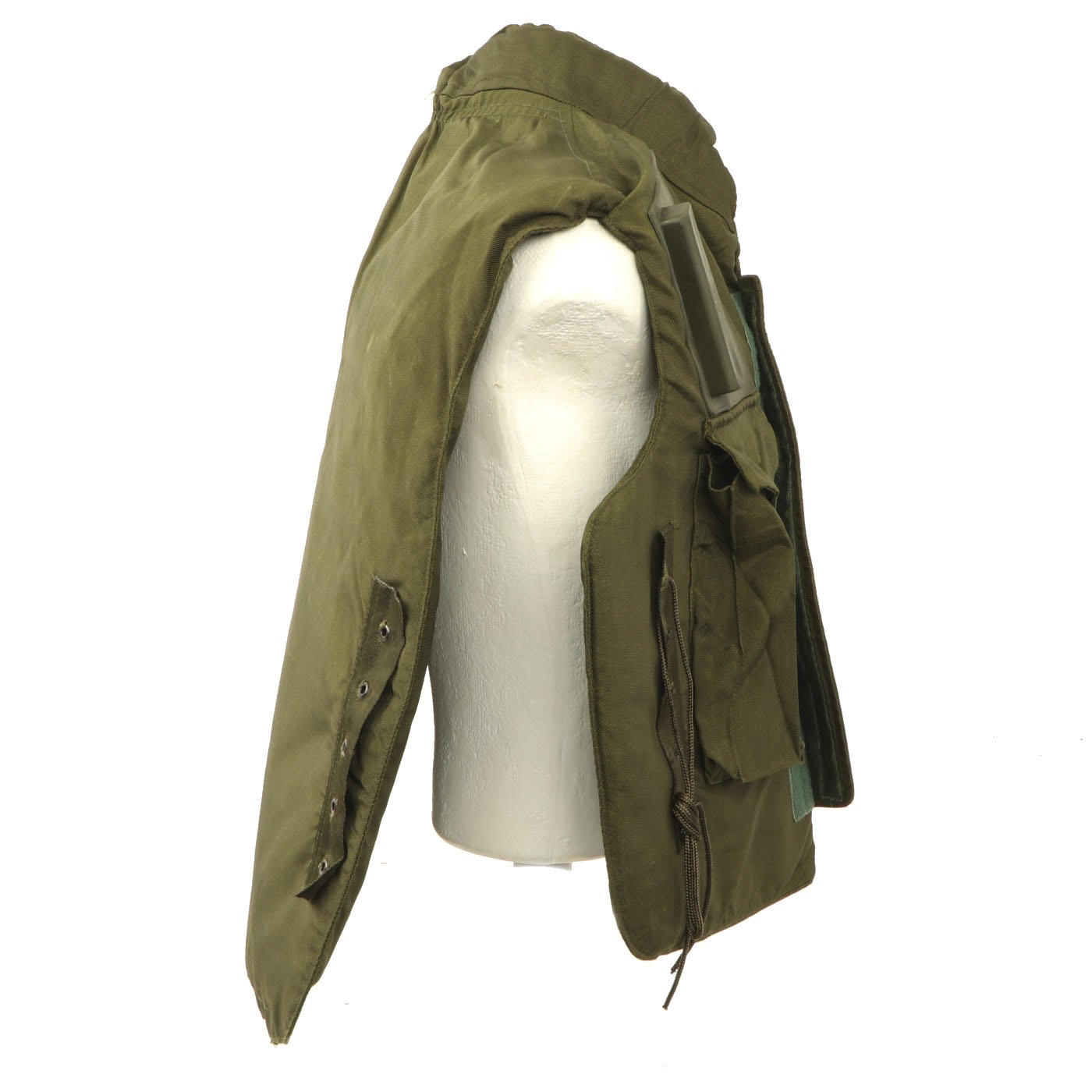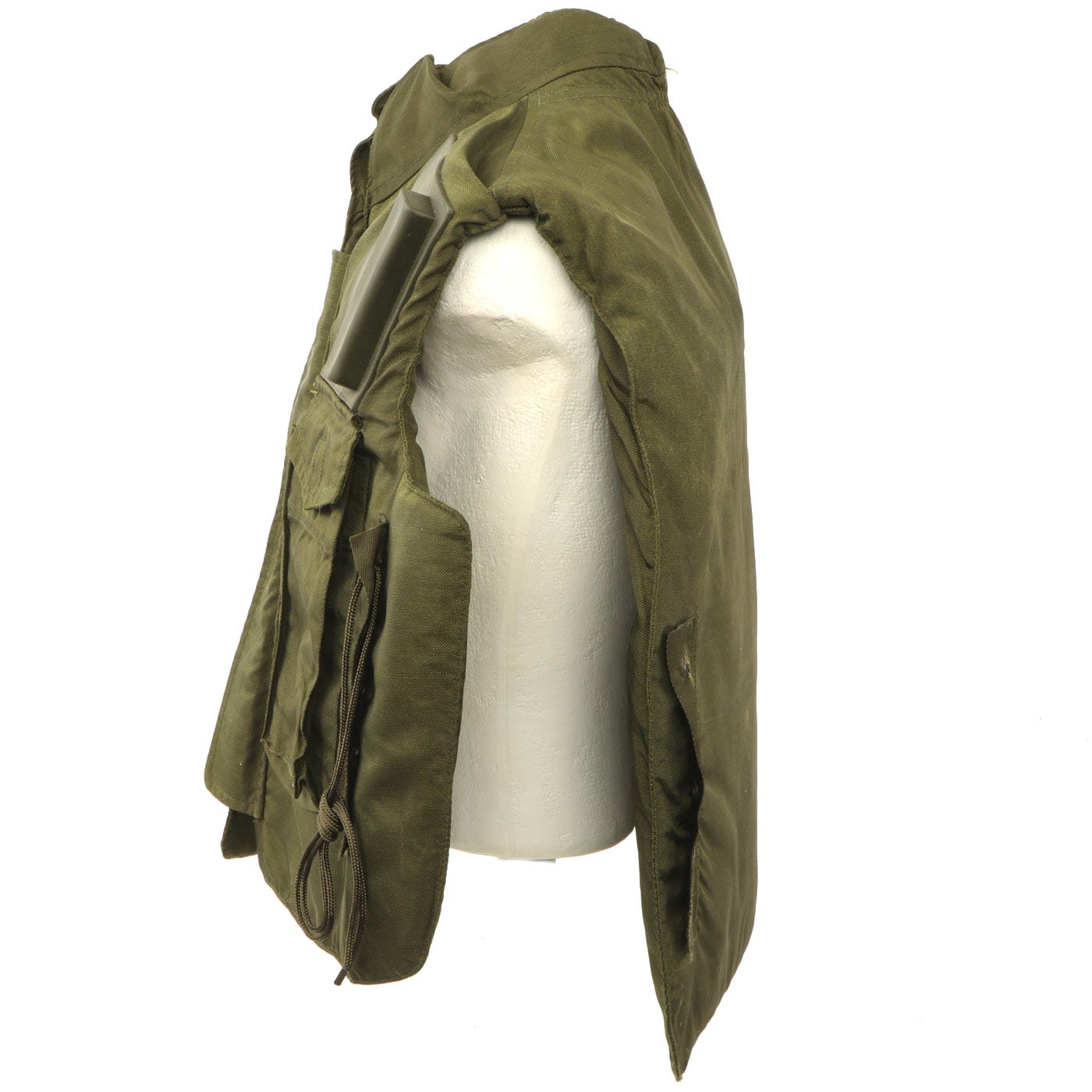 Original Item: Only One Available. This is an excellent condition ARMOUR, BODY, FRAGMENTATION, PROTECTIVE in a size MEDIUM. Manufactured by JAMES SMITH & Co (DERBY) LTD.. These are bulletproof with included hips drawstrings (untied), sturdy front hook and loop closure, with front two pockets. It also has two nice rubber pads with "bumpers" on the front, which we assume is to help keep straps in place.
