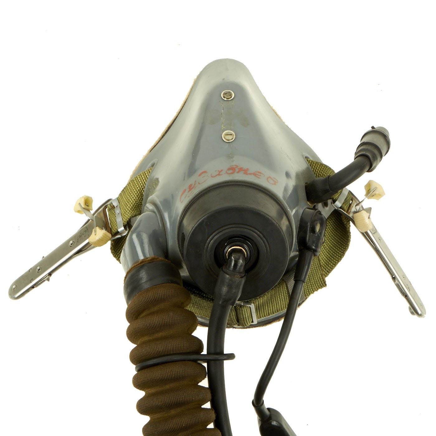 The oxygen mask is correctly marked KM 35 РАЗМЕР 4 (Size 4) on the rubber gasket, and the bottom may have a 1990 date, though we are not quite sure. Both the helmet and mask are in very good lightly used condition, perfect for any late Cold War or Soviet Collapse era collection.