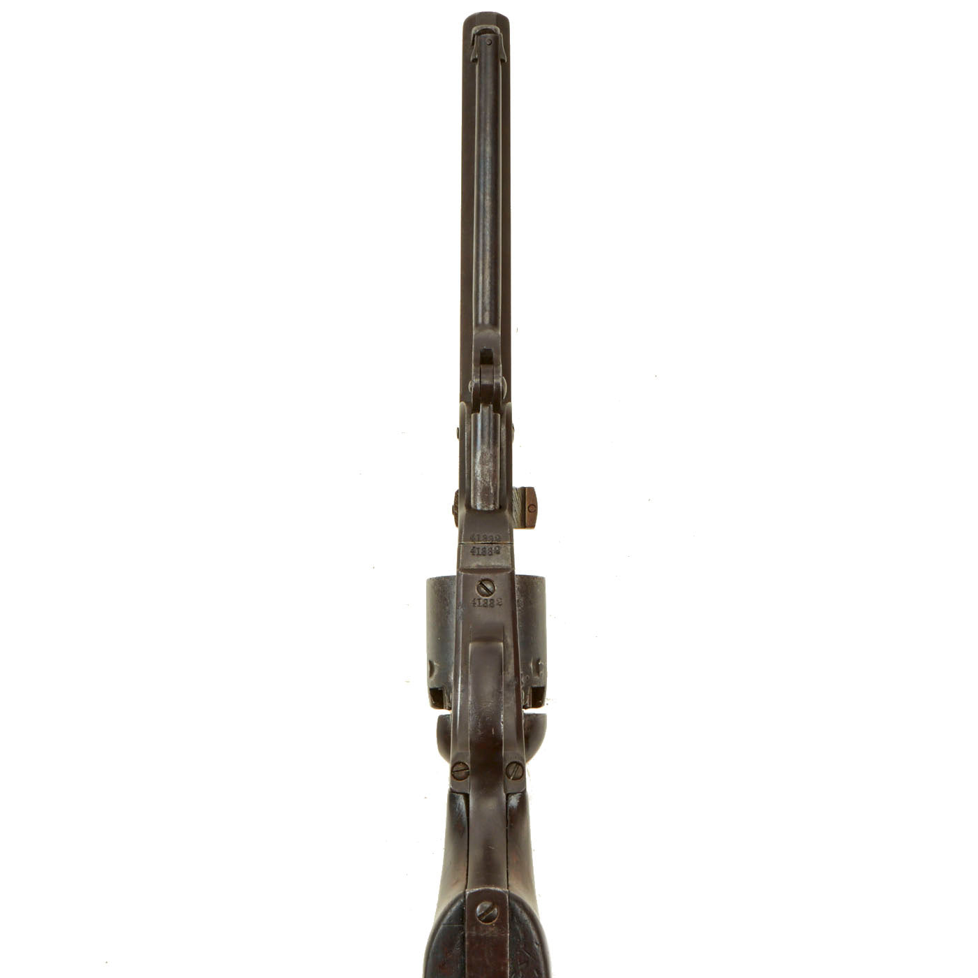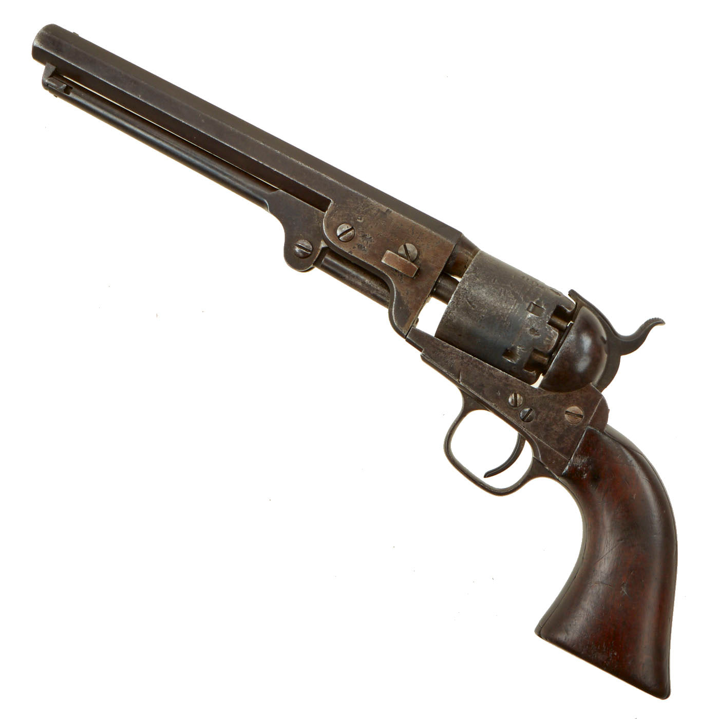 Rare and seldom encountered, the London Colt revolver was made in very limited production. Quantities total some 42,000 London pieces of all variations. Serial numbers are recorded in the following ranges: 17,000, 24,000 34,000, 37,000, and 39,000. Samuel Colt designated the term "Navy" to imply the caliber (.36) of the weapon, as he did with its later and heavier companion, the Colt Model 1860 Army (.44 caliber).