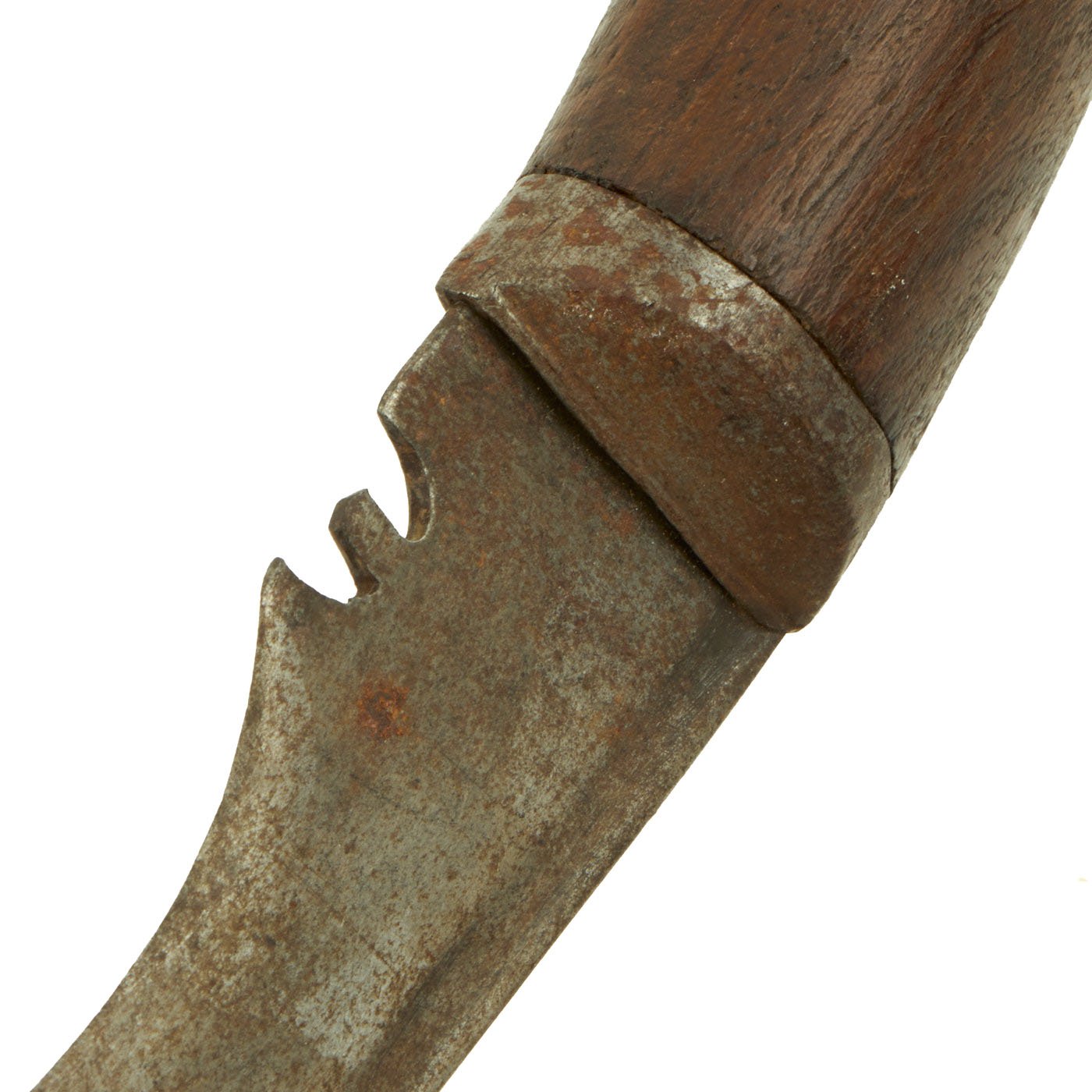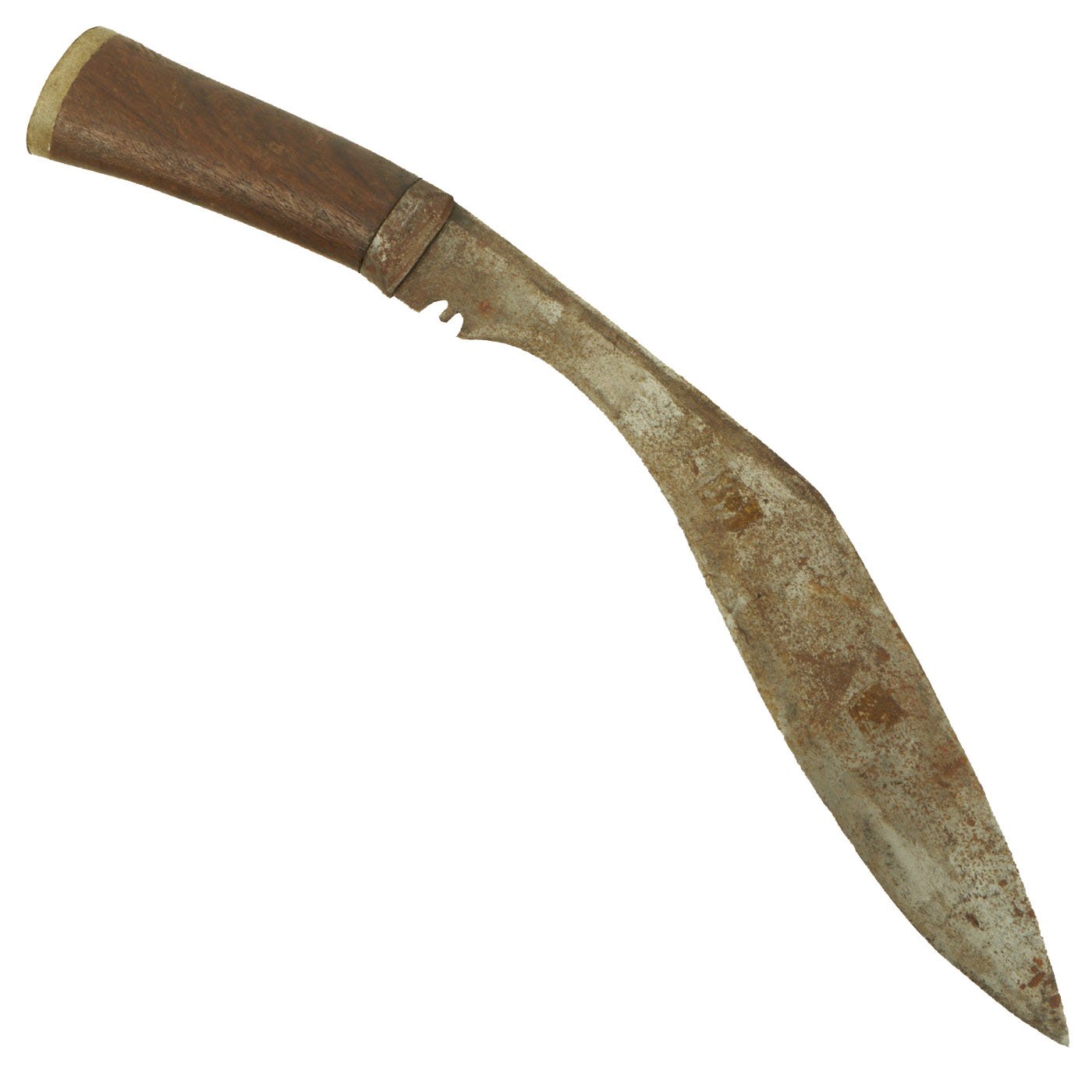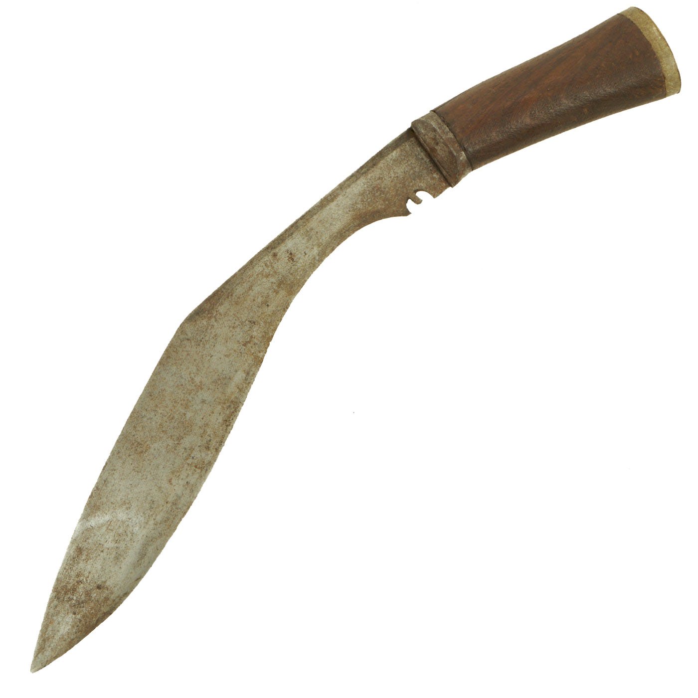 - One Small Original early 20th Century Nepalese Kukri Knife with a wooden handle. Measures 15 1/4" overall with an 11 1/4" blade.
