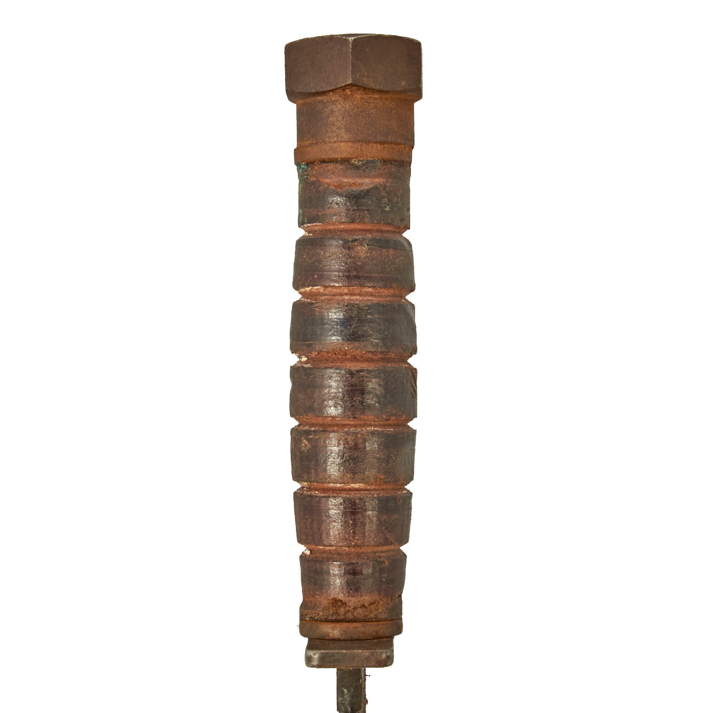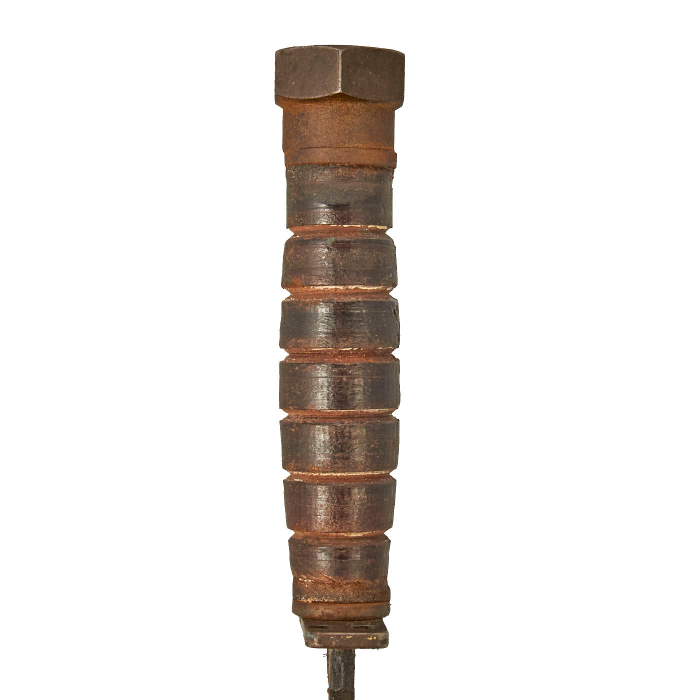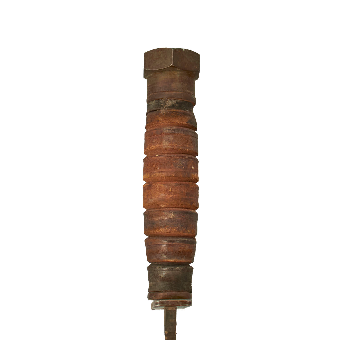 The blades are in very good condition, showing light wear from the scabbard, use, and sharpening. Both still have much of their original blued and parkerized finish , and the blades still have the original profile, though the tip does have a bit of rounding. The stacked leather grip is in very good shape, showing little sign of use. Both exhibit wear and light corrosion as pictured.