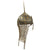 The front of the helmet has a sliding gold encrusted nose guard with two feather plume holders on the helmets front surface, one on each side of the nose guard. It also comes with a very pointy detachable 5 3/4" spike on the top, which is fully inlaid with gold as well. The rear of the helmet has the usual "aventail" chain mail rear neck defense, which is still well retained, though many of the loops have come undone from the bottom of the helmet.