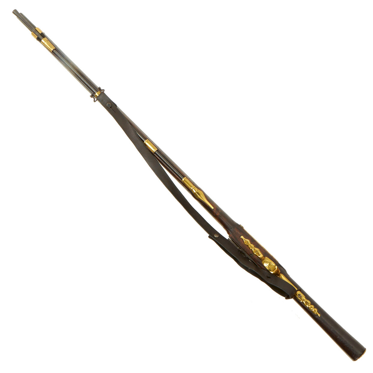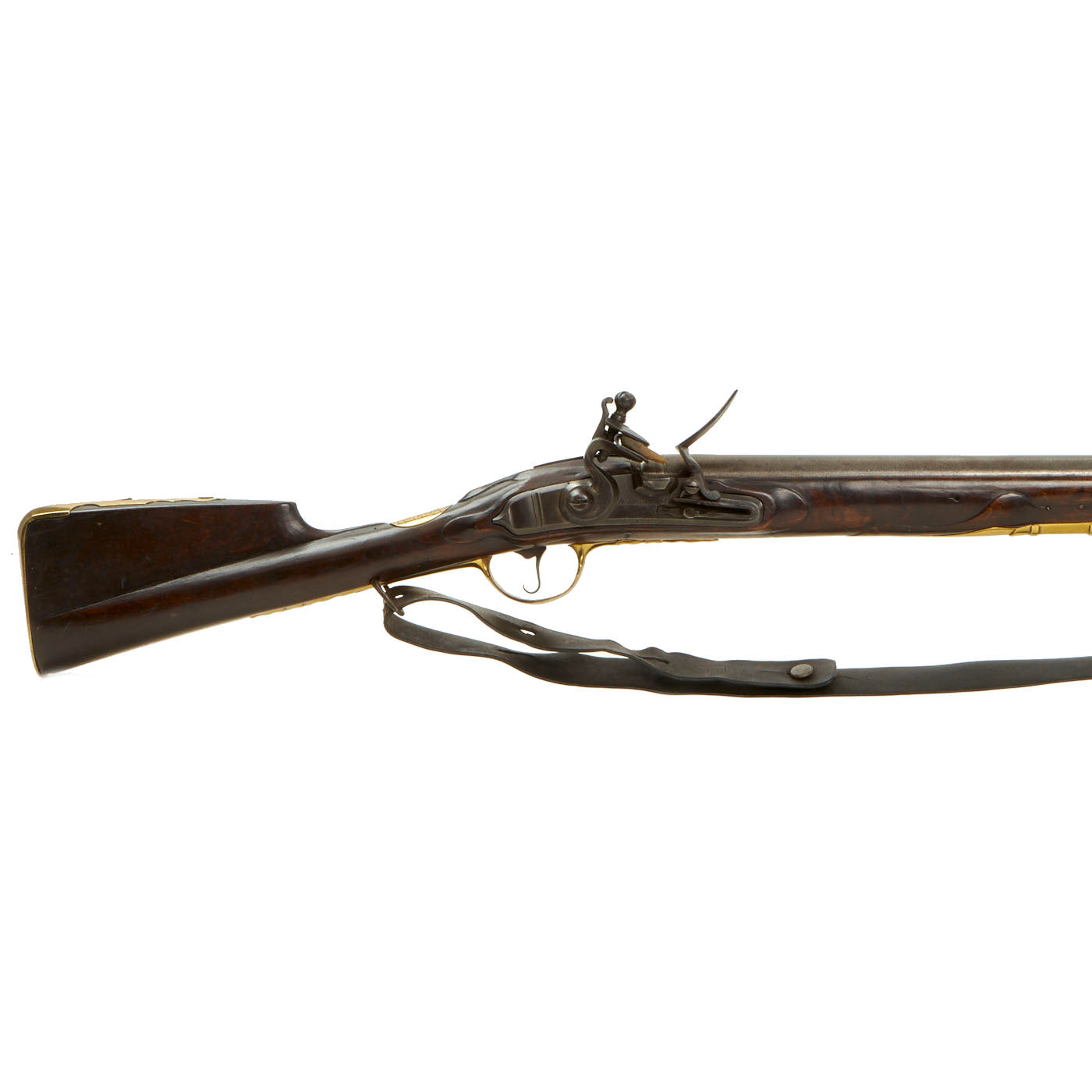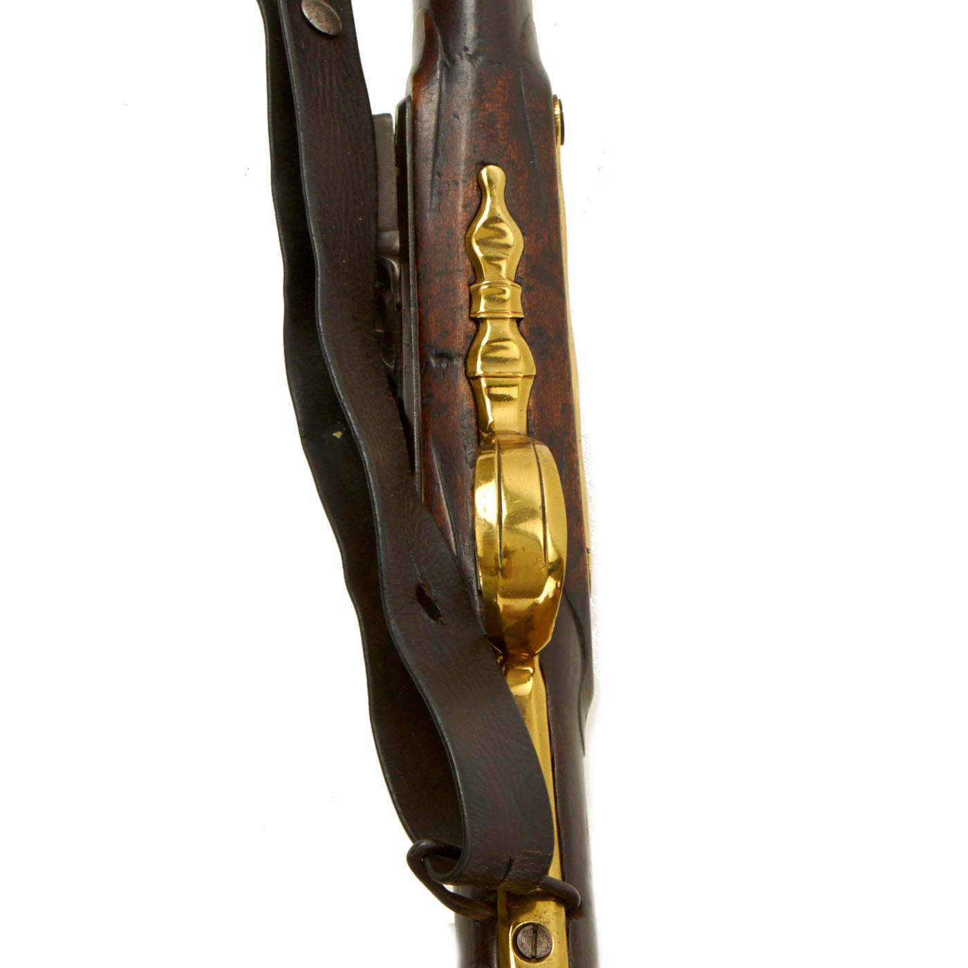 It was muskets such as these that the German "Hessian" Soldiers that fought in the U.S. Revolution were armed with. Some may have also been supplied to British forces during the French & Indian War, as the British Monarchs of the House of Hanover concurrently held titles in Germany as well. Musket comes complete with original Socket bayonet and old black leather sling from the 19th century, secured by two shirt stud type iron keepers.