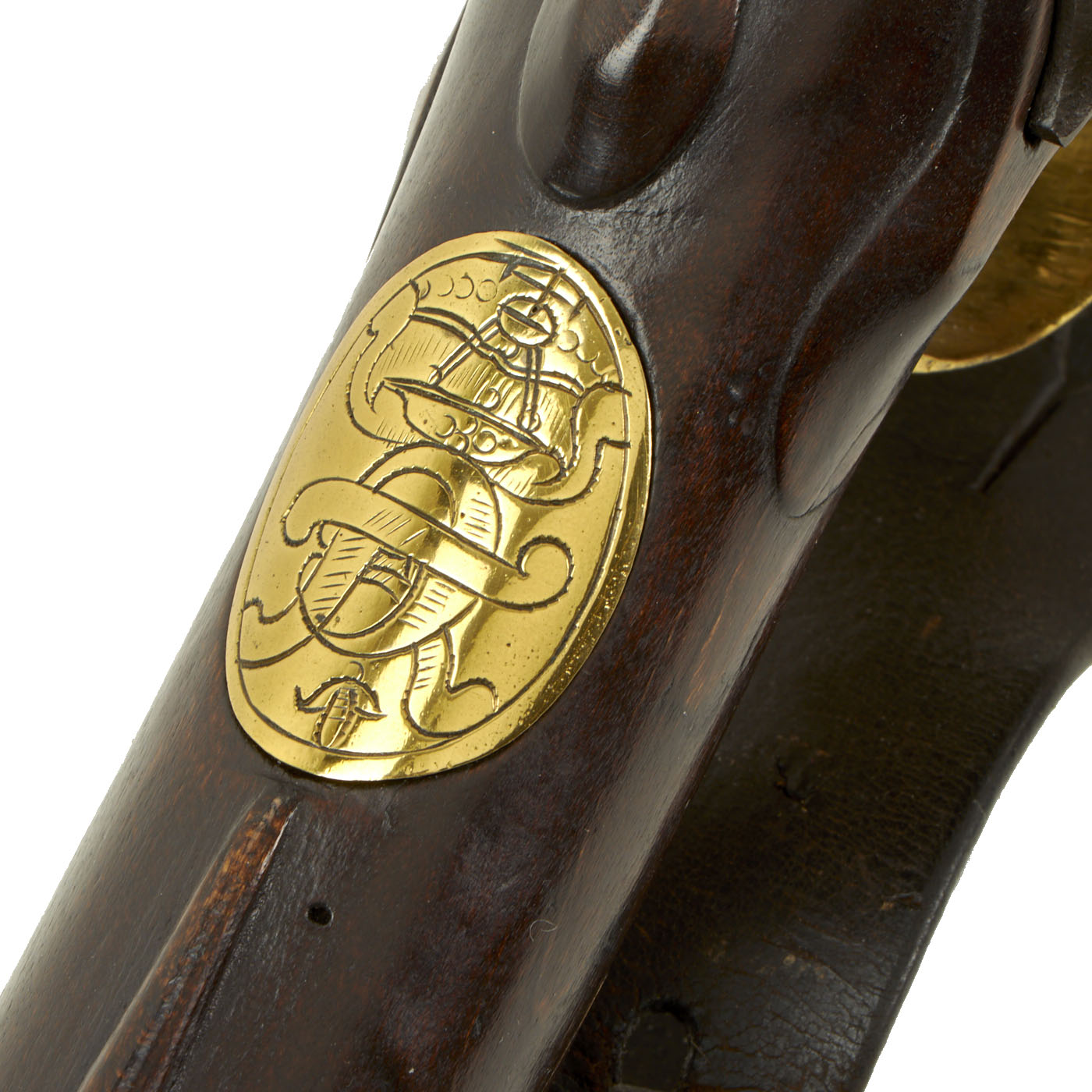 Original Item: Only One Available. This is magnificent and looks almost untouched, even though it has been completely cleaned. It features a classic "banana" shaped lock plate of totally classic German "angular" style, which is marked POTZDAM MAGAZ. It is also marked D S E on the edge of the lock plate. Many muskets produced is during the mid-late 18th century in Potsdam were marked as such during the reign of the Prussian King Frederick the Great, who reigned until 1786.