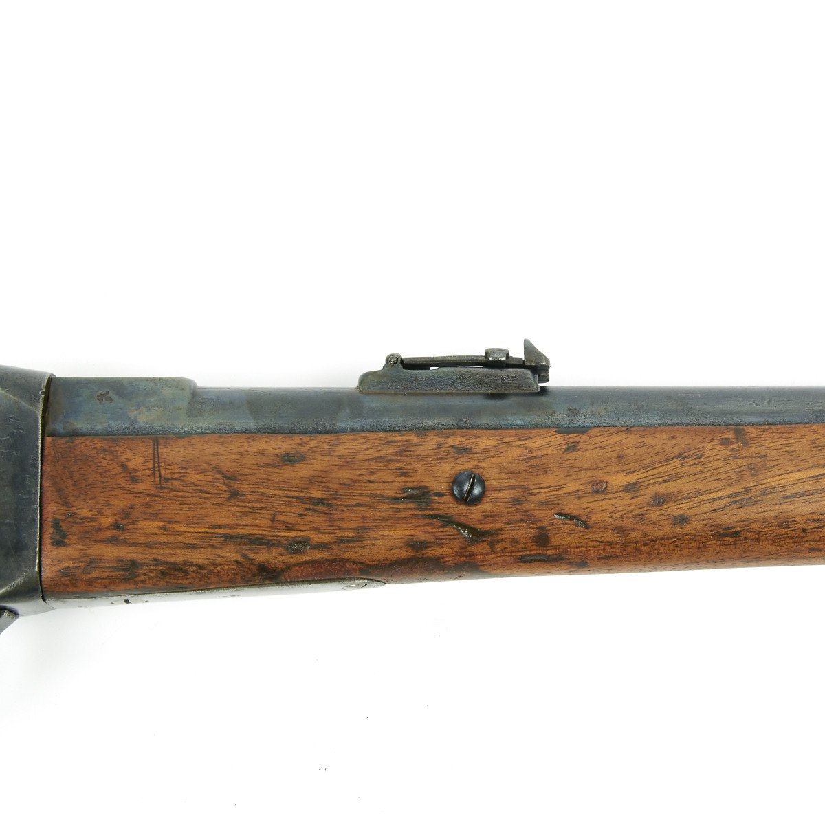 This is one of the best examples we’ve ever seen of a copied British cavalry carbine out of Afghanistan. For a Martini collector seeking the odd and unusual, this is the one. The fit, finish, and condition are excellent and unlike the soft metal Khyber Pass rifles of the past, the Kabul Arsenal carbine used to make it is considered by most Martini collectors as a "real" Martini and potentially safe shooter in its own right.