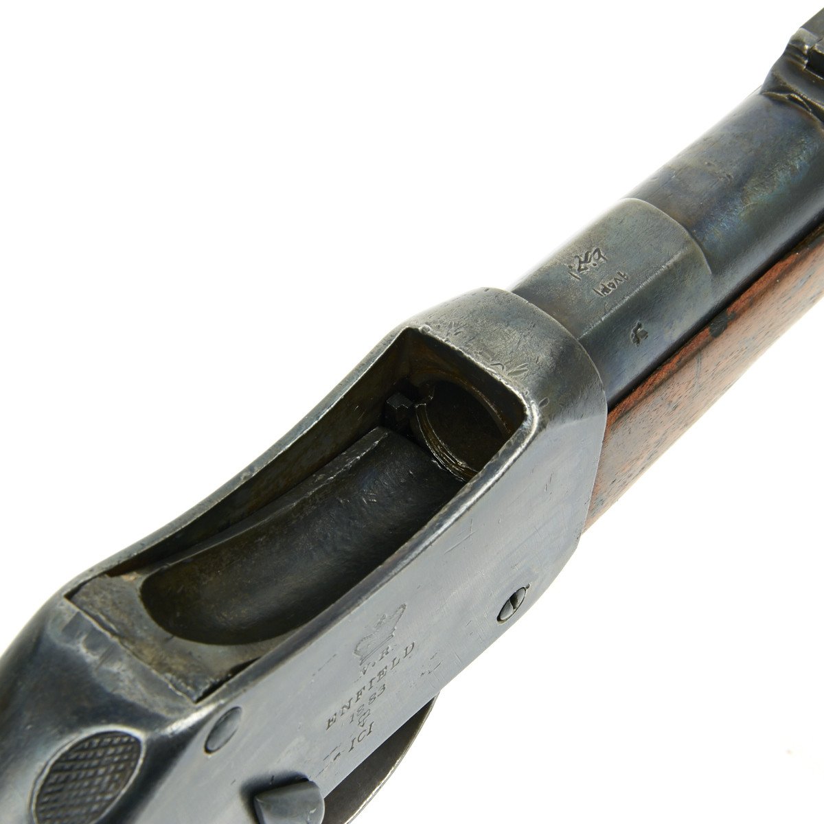 This fine example is fully functional and complete. While the markings on the receiver face are typical and representative of those being touted on other sites, the comparison stops there. The crown is full and balanced, the letters of Enfield are bold, readable, and aligned, the other features are equally as clear. The bluing is even in tone and application, and the overall condition of the metalwork and stock show a matching combination of even, but not excessive, wear expected of a century old workhorse.