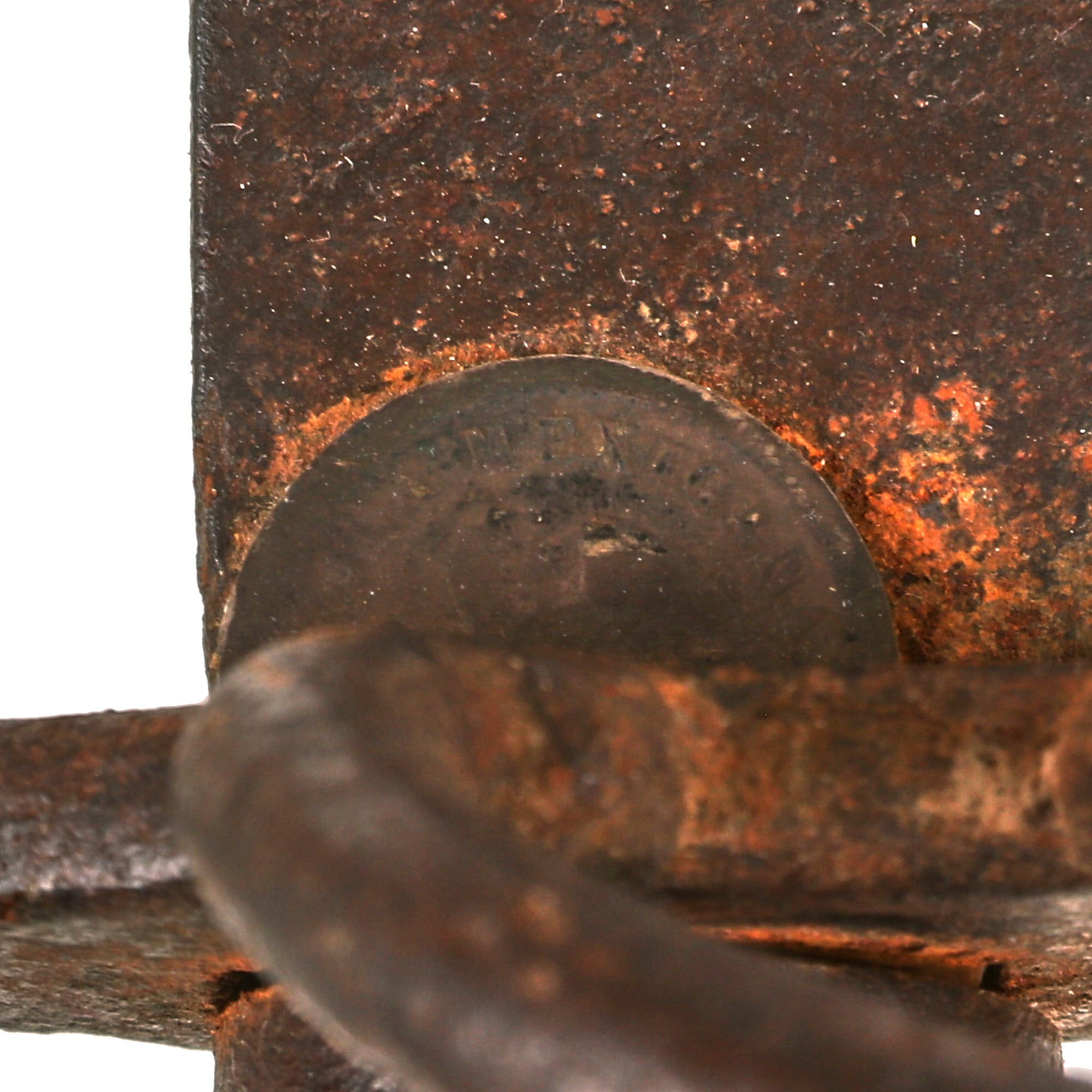 Original Item: Only One Available. This is a great example of a Mexican-American War era Mexican hand-forged sword. The sword itself has a unique addition added to it. On both sides of the ricasso, there is a small coin on each side, almost acting as a “buffer” to keep the blade tight to the guard. As this was a hand forged sword, most likely done by a local blacksmith, there are no markings that we could find.