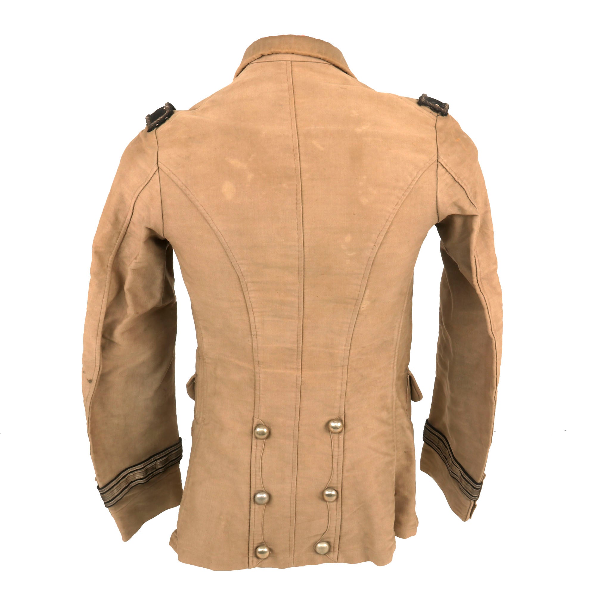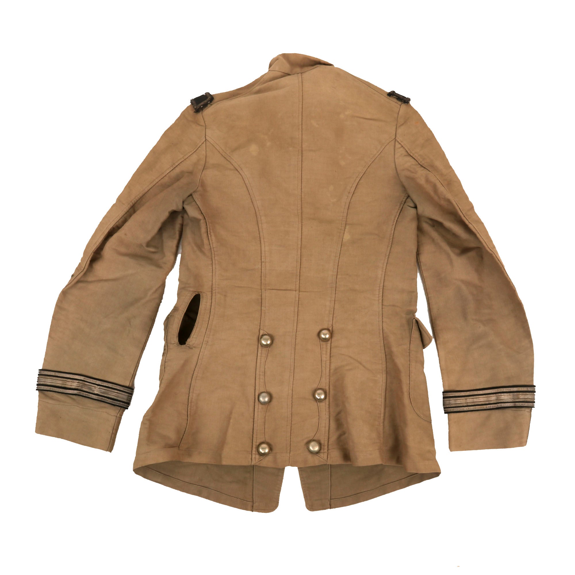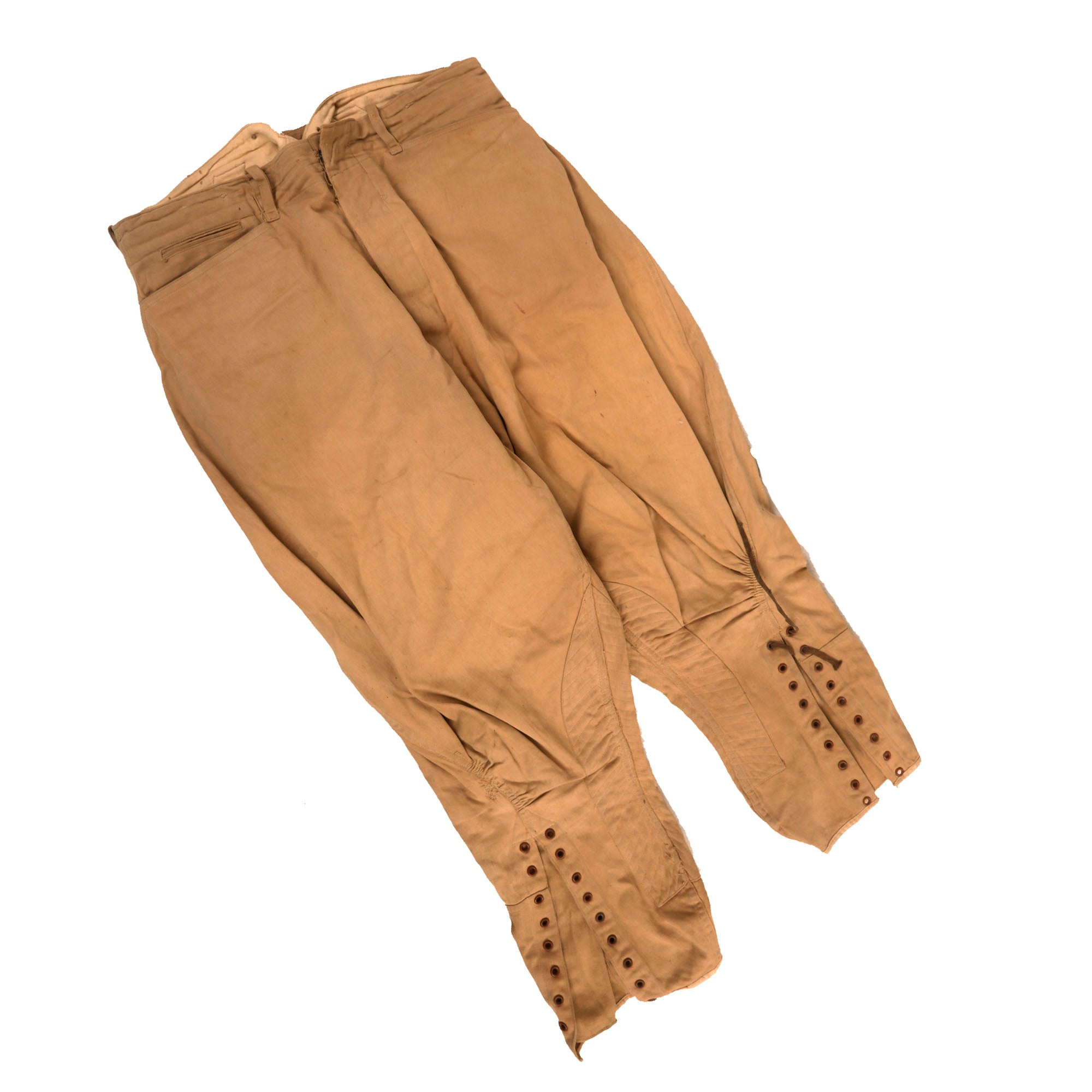 The included breeches are very interesting as there is a tag on the interior for American Trademark, and every button on the uniform is marked with this as well. They are of the Pre-WWI period with the small buckle at the back. As officers of Mexico would often have field gear & uniforms imported from other countries, this pair could be correct for this uniform set.