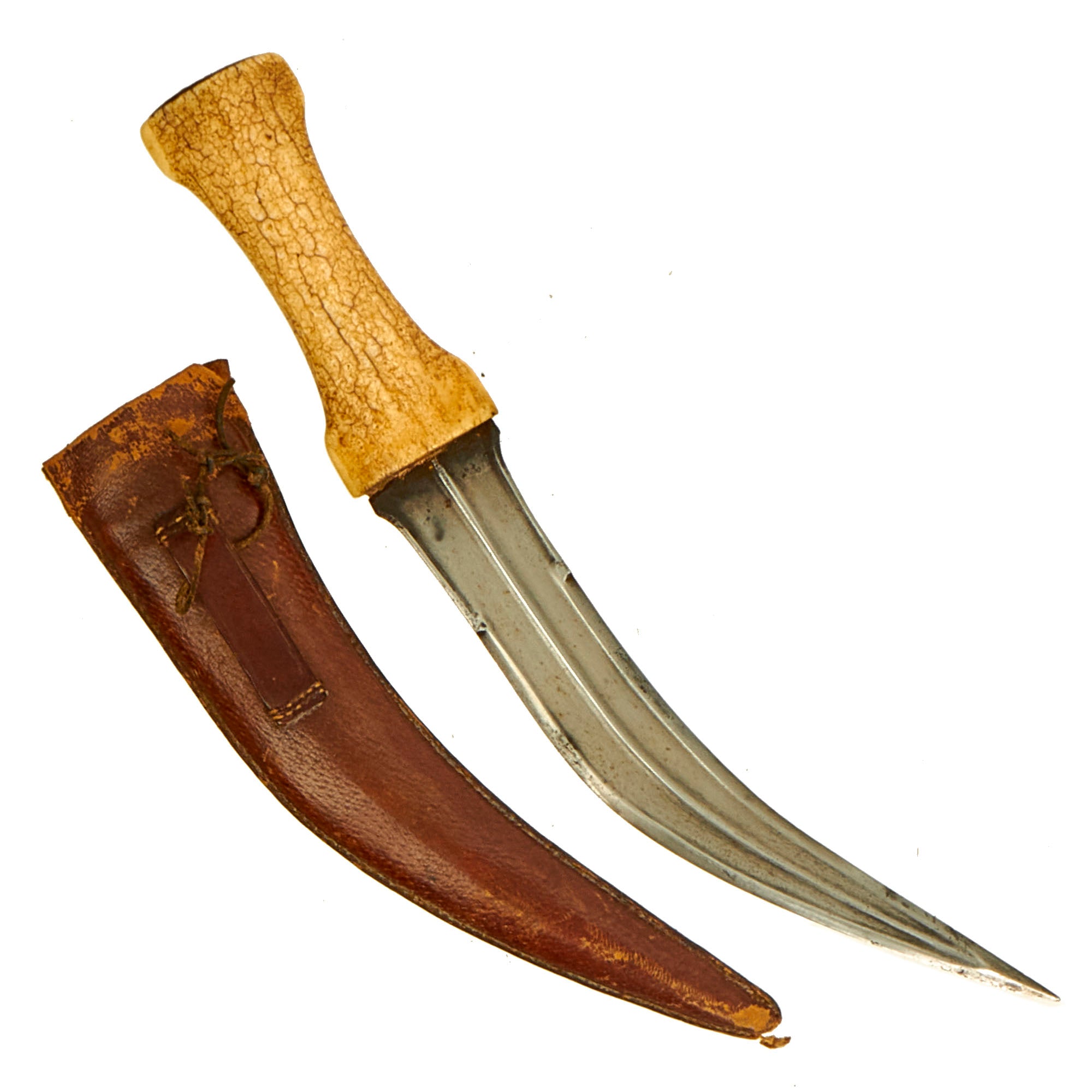 Original Item: Only One Available. This is a fantastic example of a Mid-19th Century Jambiya dagger originating from the Middle East. A jambiya in the Levant, is a specific type of dagger with a short curved blade with a medial ridge that originated from the Hadhramaut Governorate region of Yemen. They have spread to other countries in the Middle East, to other countries in the Arab world, and to parts of South Asia and Southeast Asia. Men typically above the age of 14 wear it as an accessory to their clothing.