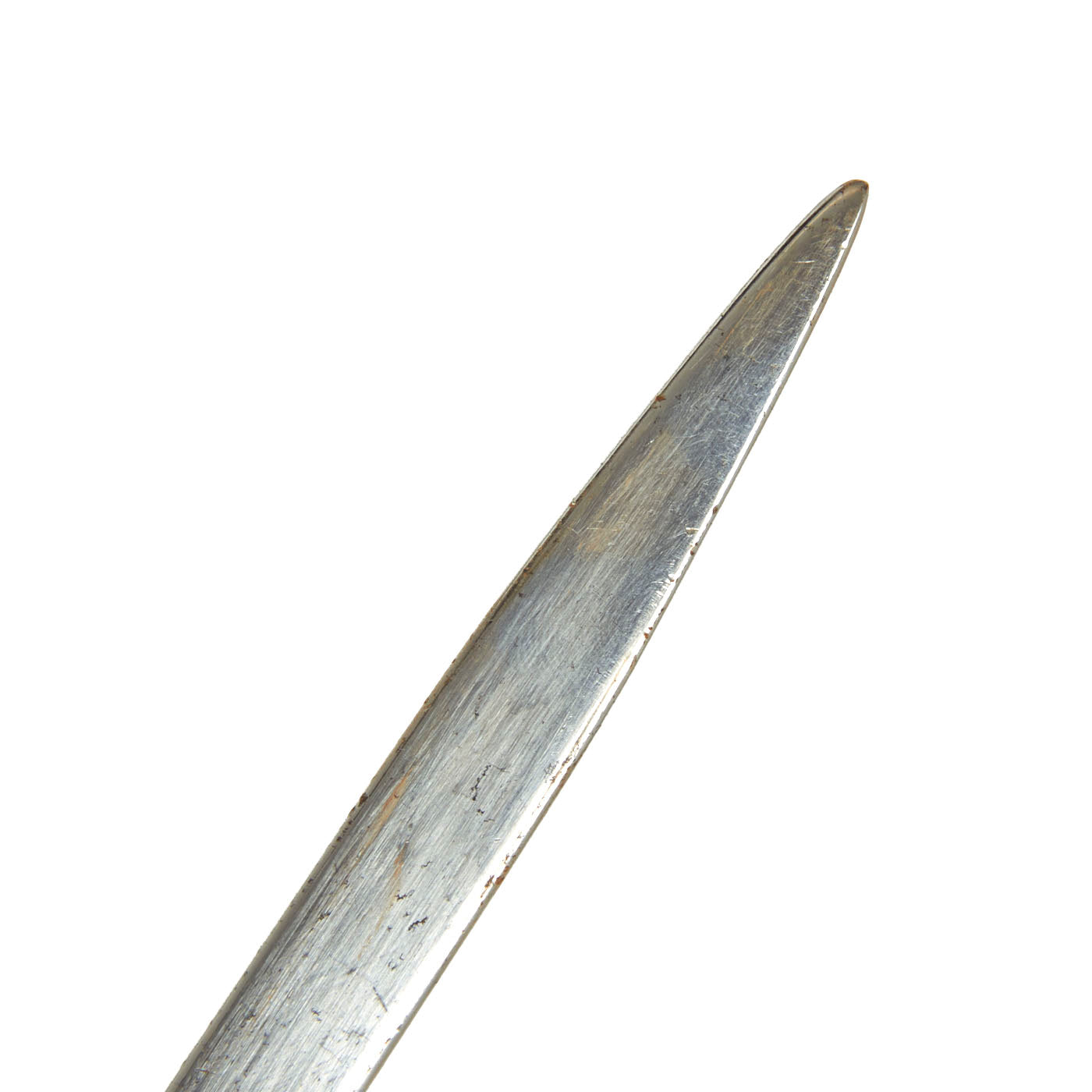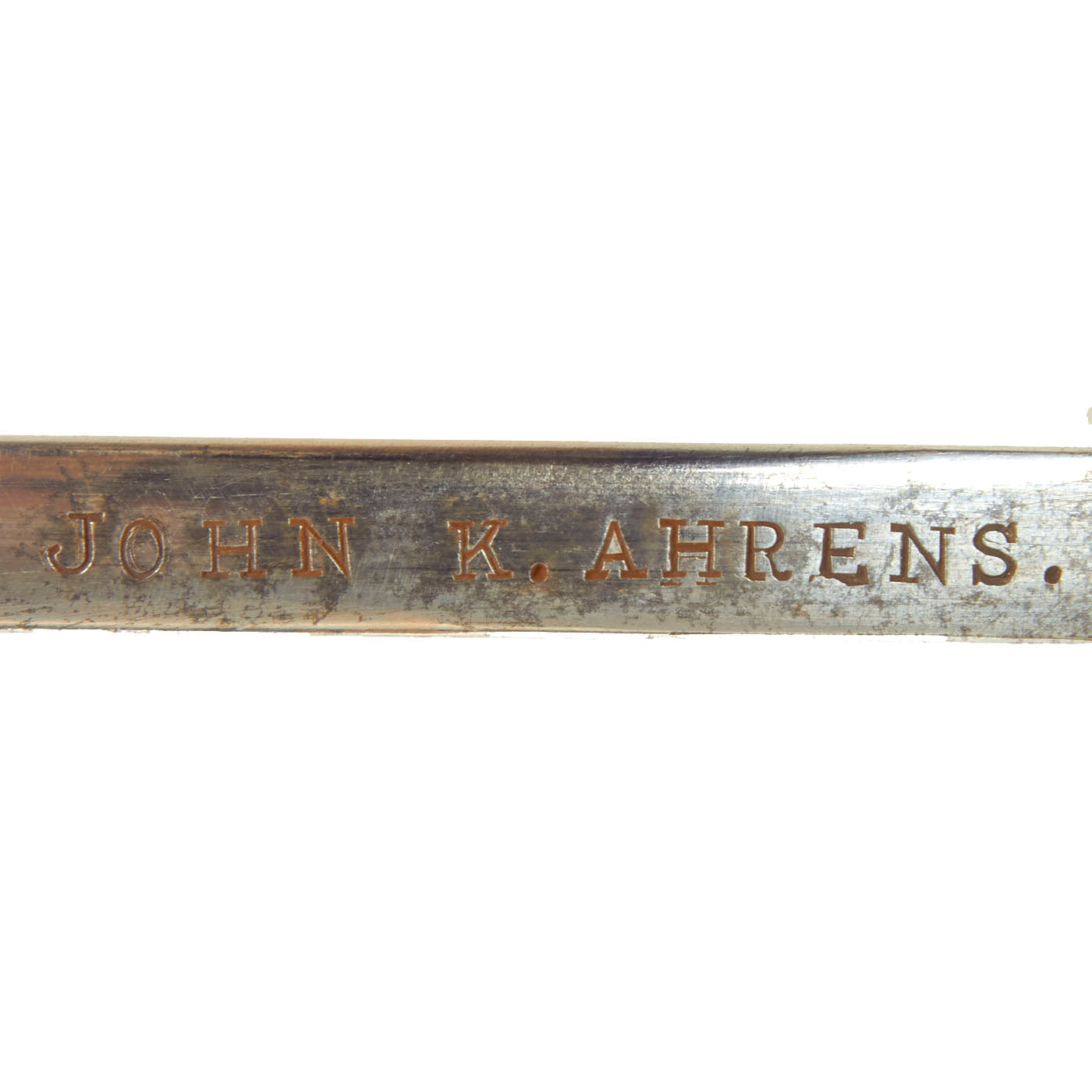 The blade is rather stout and pointed, making this almost look like a fire poker of some kind, which is entirely possible. The base of the blade is stamped with the name JOHN. K. AHRENS., so this may have been given as a gift for retirement or some other major life / service event.