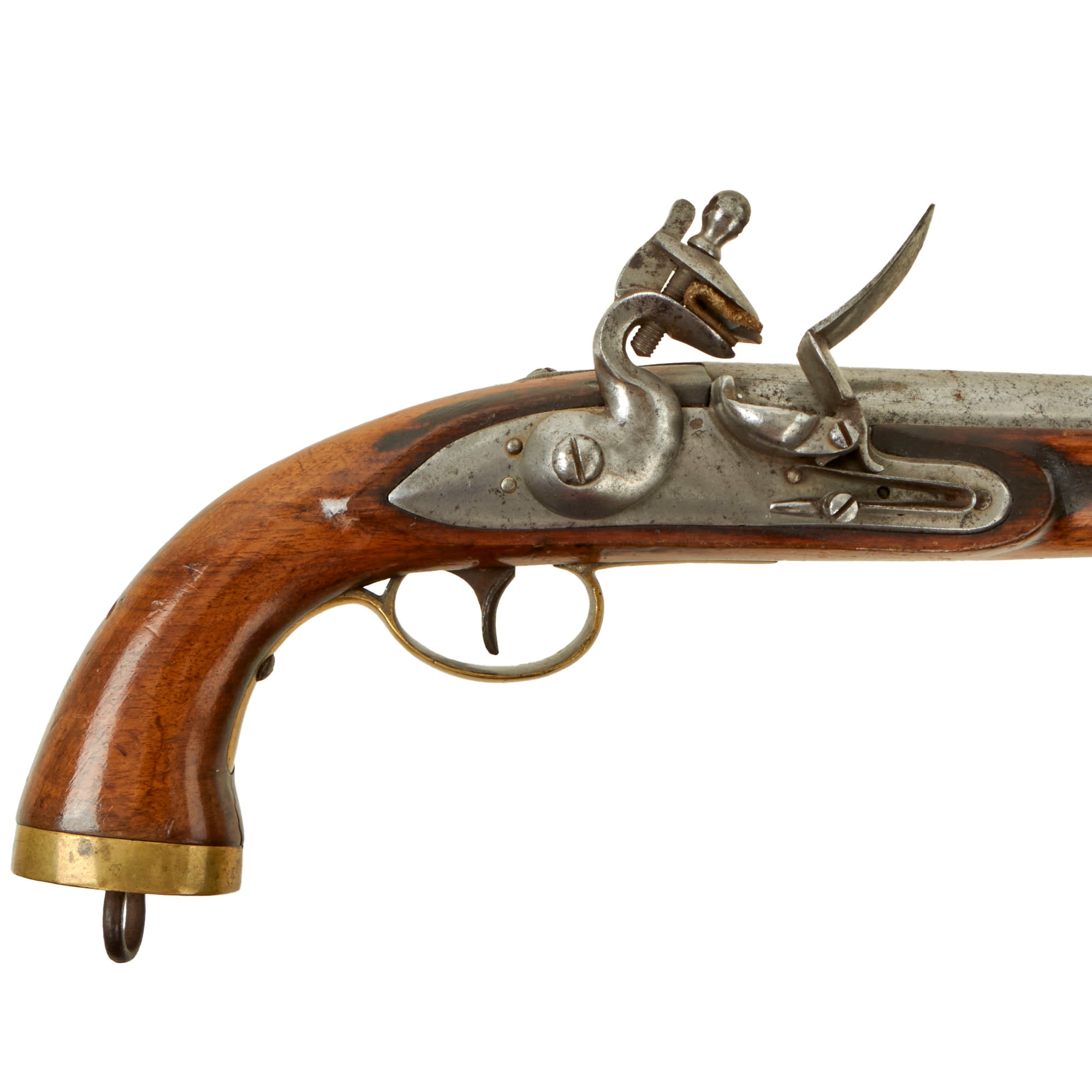This specific type of Naval or Sea Service Flintlock Pistol was manufactured in Belgium, which was under Napoleon Bonaparte's control until 1814. Most that we have seen were issued to the Dutch / Batavian Navy, which was part of Napoleon's forces, however production continued after the battle of Waterloo in 1815 and into the 1830's.