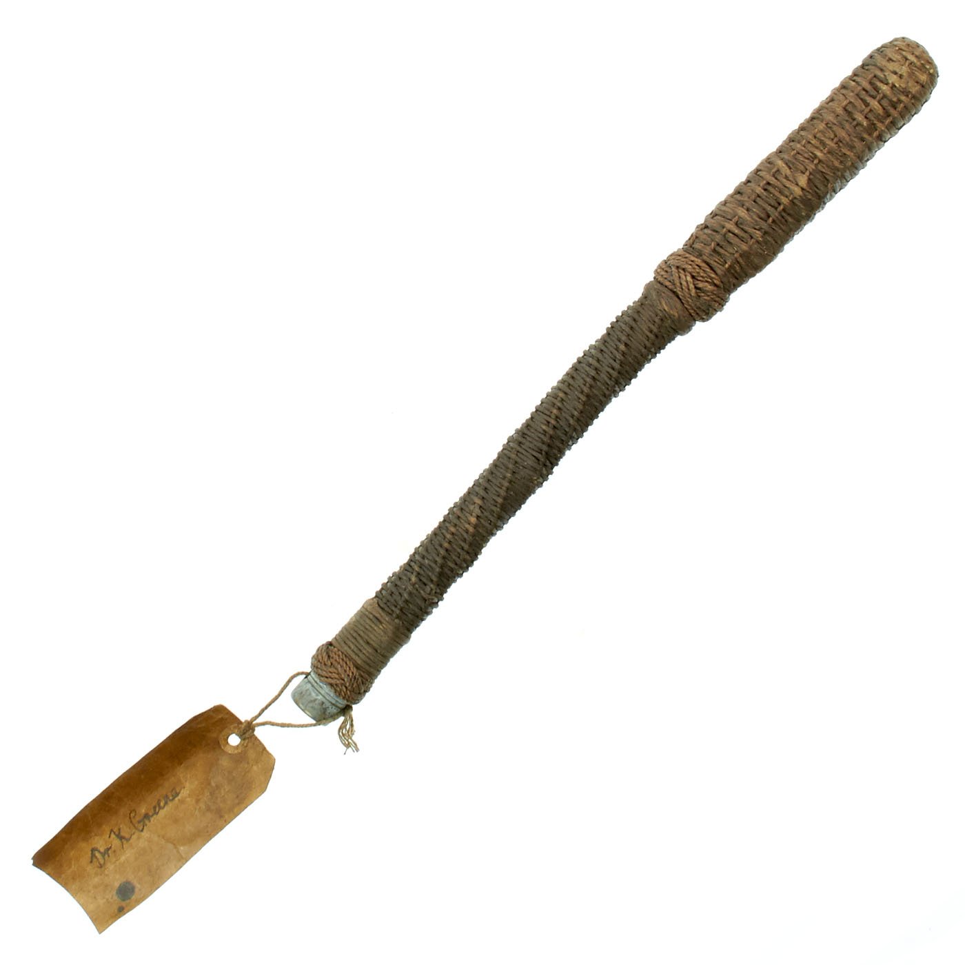 This impressive rope and twine bound cosh measures almost 17" in overall length, and looks every bit of its probable 225 years of age. In fact there is an old tag tied to it on which is written:-