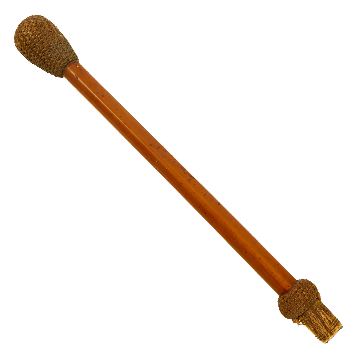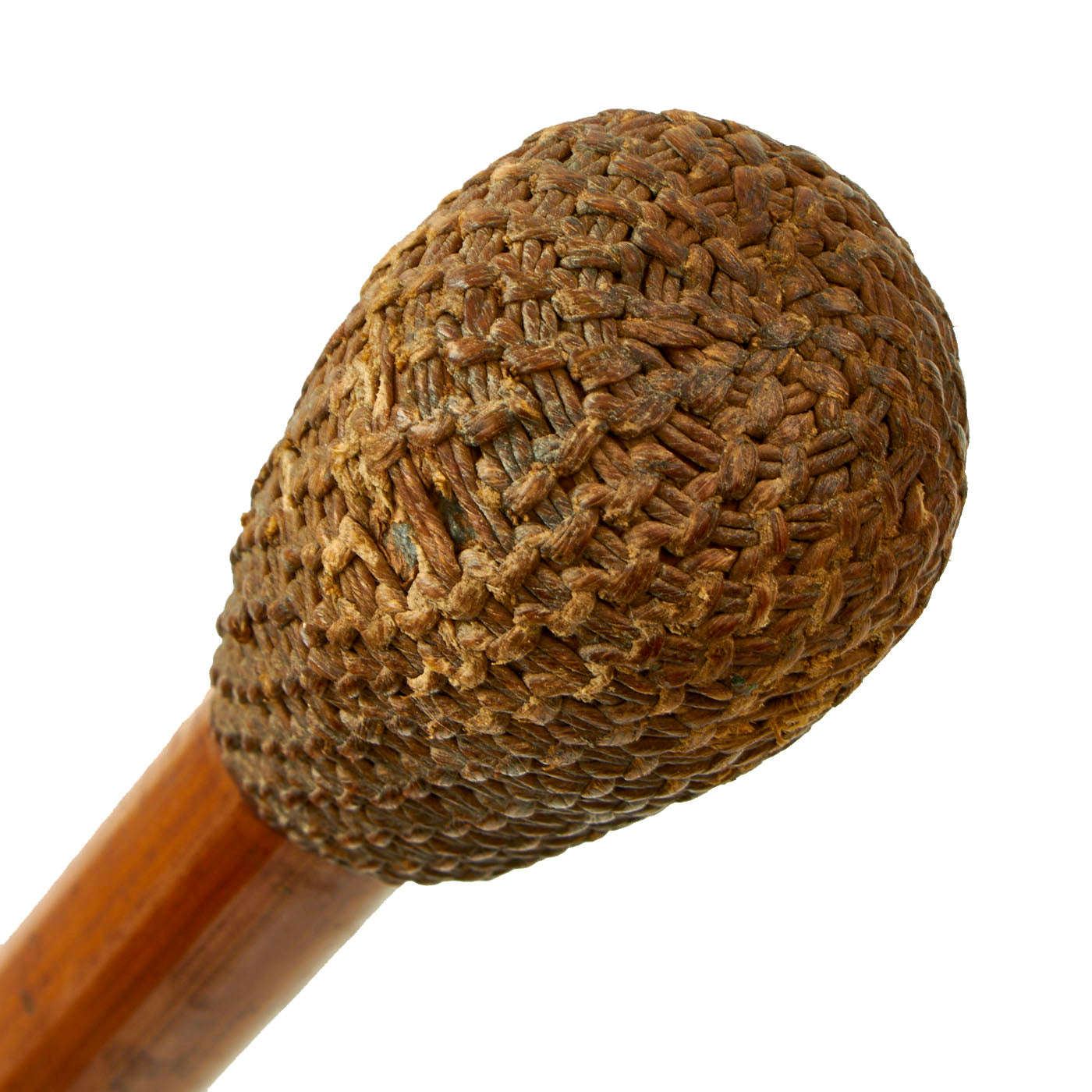 This impressive example measures only 13 3/4" but when you feel it in your hand it can certainly be seen to be "A Persuader". It is made from a length of Malacca Cane with, with a heavy lead weight on the "business end", which has been wrapped with woven cat gut to secure it, and make it slightly less likely to break bones.