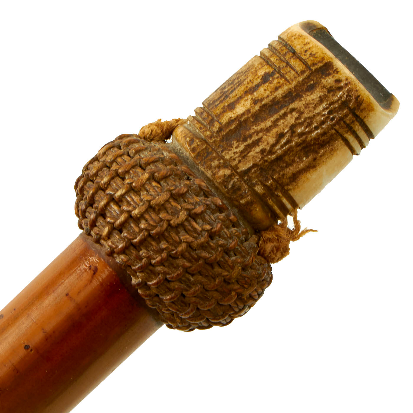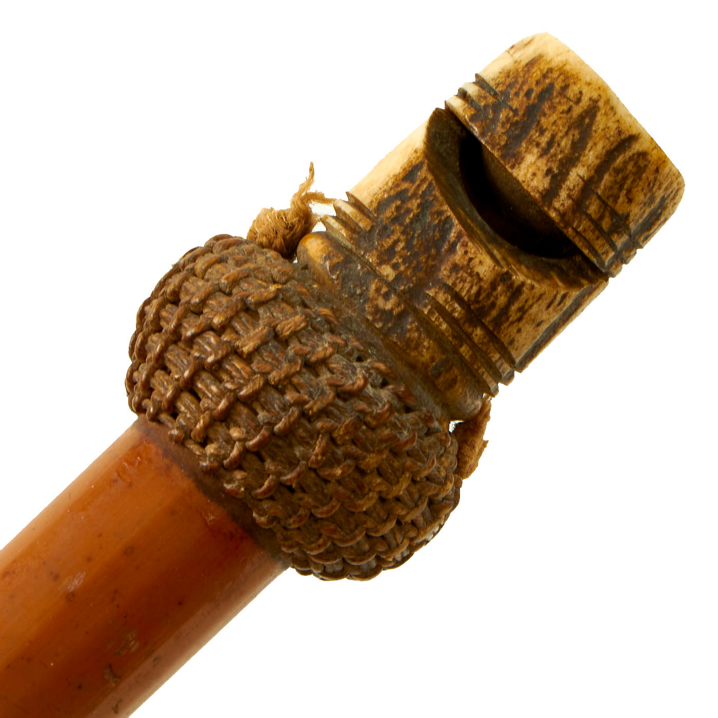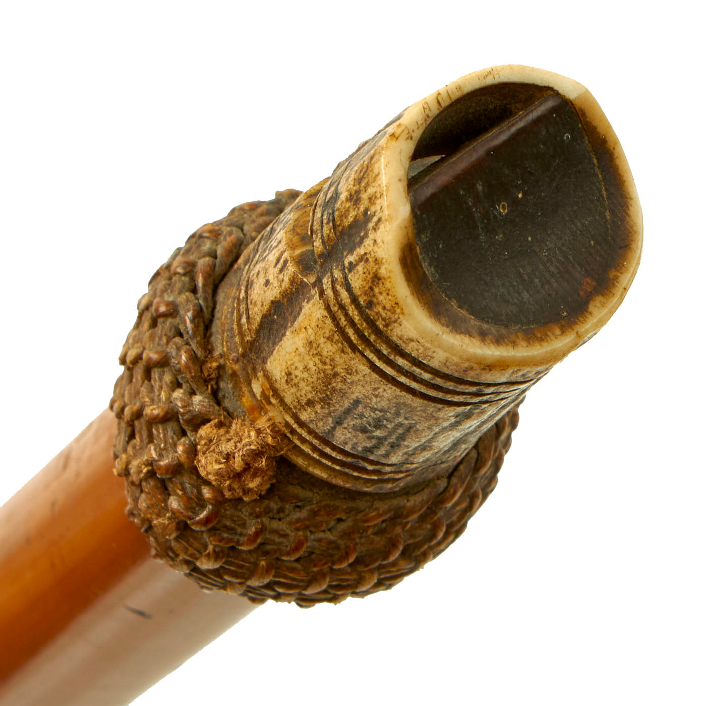 The other end however does not have any bludgeon attached, and instead has a cat cut wrapped pommel with a stag horn whistle on the very end. This was surely to call reinforcements should the impressment not go well.