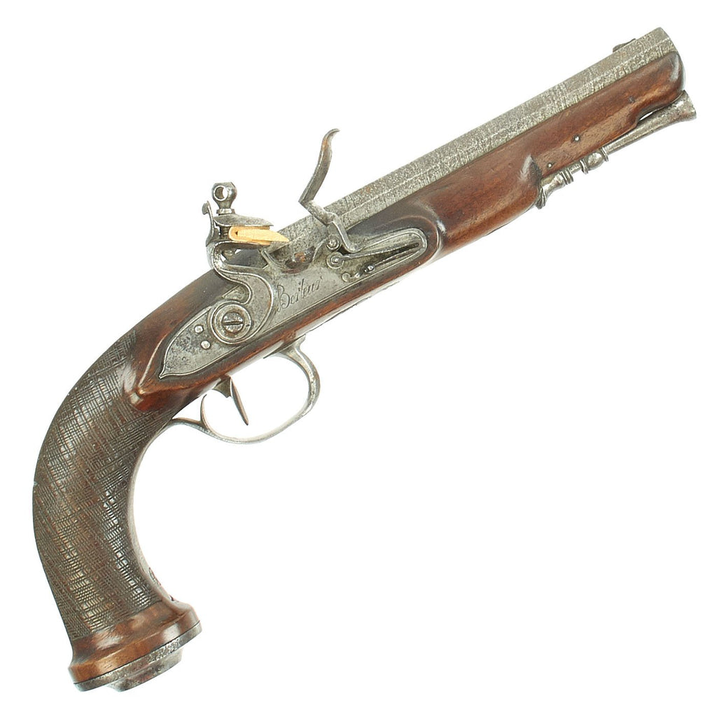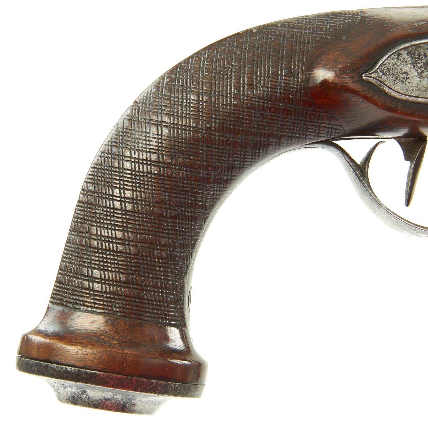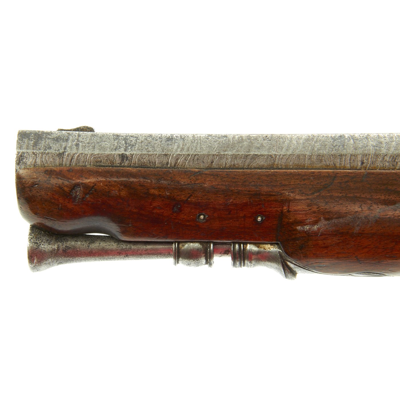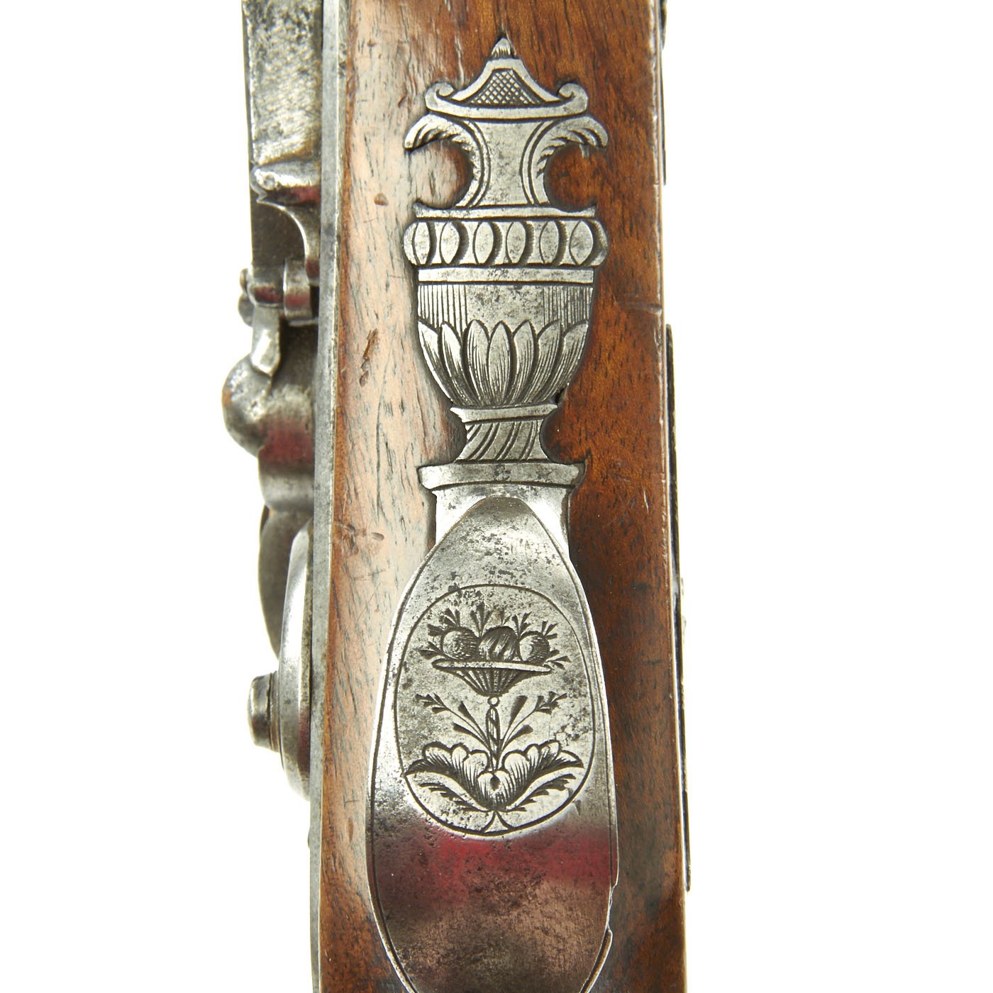 Original Item. Only One Available. In the style of the day designed by famed gunsmith Nicolas-Noël Boutet, these pistols were very popular and extensively made for French Officers. This example has an octagonal 6 3/4 inch Damascus barrel, which has numerous rifling grooves. The left side of the barrel bears the E / L G / * in an oval proofmark of Liège, Belgium, a gunmaking center even today, which at the time was controlled by France.